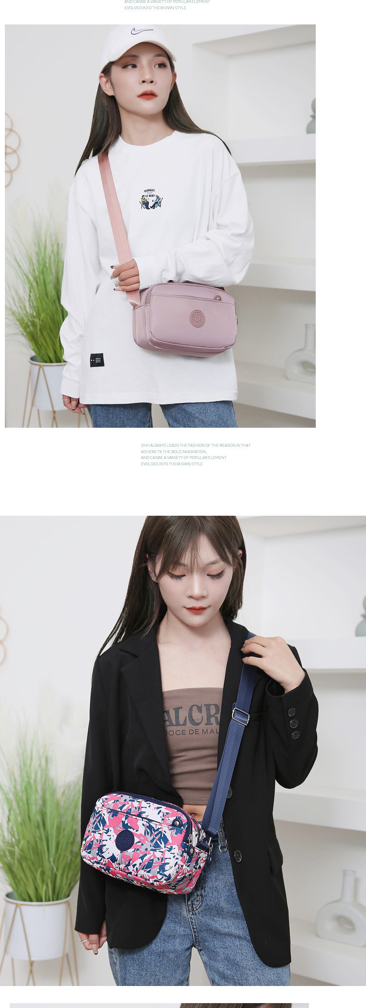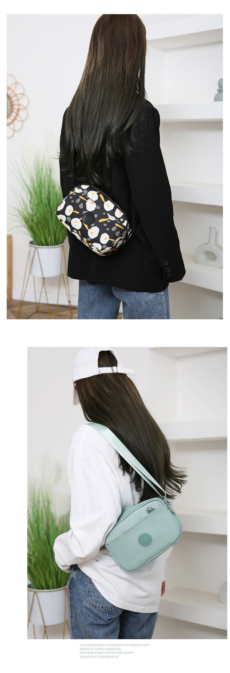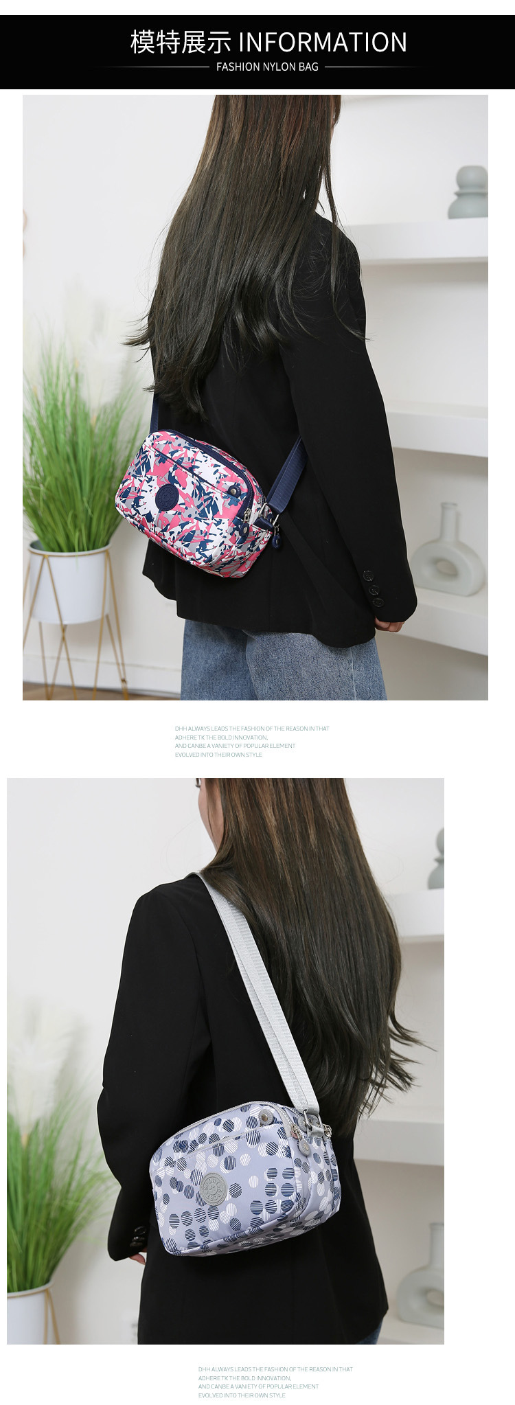 새로운 여성 캐주얼 메신저 가방 방수 내마모성 패턴 단색 나일론 천 어깨 가방 시어머니 가방 도매 국경스토어 가기