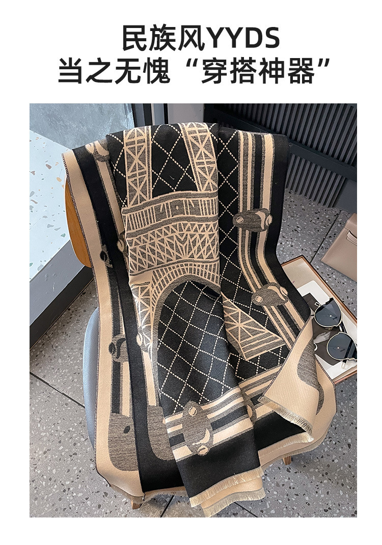 가을과 겨울 새로운 파리 타워 향기로운 스타일 양면 스카프 여성 모방 캐시미어 따뜻한 스카프 서양 스타일 올 매치 선물 제공