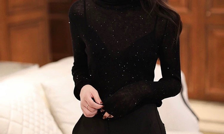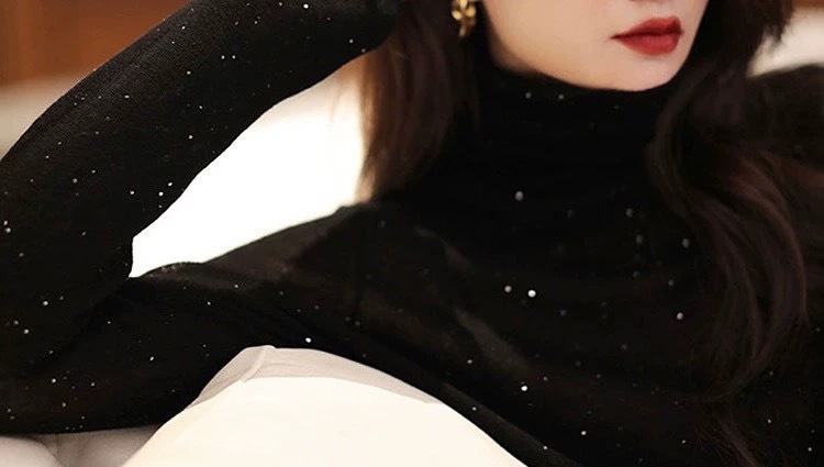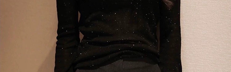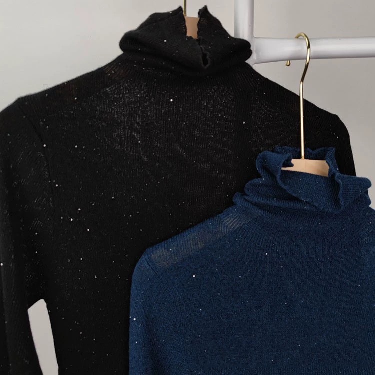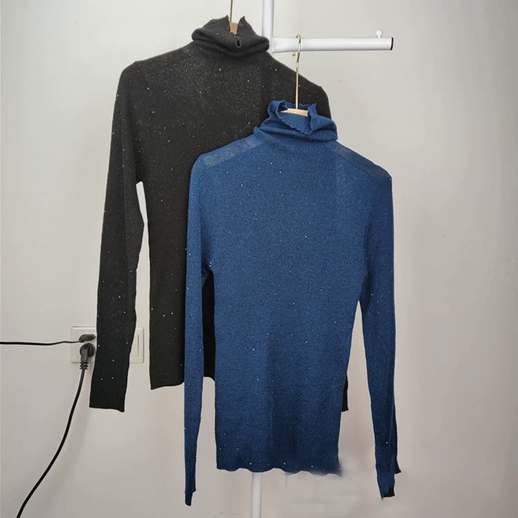 초미세 수용성 얇은 양 양모베이스 셔츠 빛나는 다이아몬드 니트 여성용 더미 칼라 빛나는 모래 조각 터틀넥 스웨터
