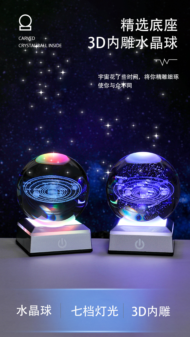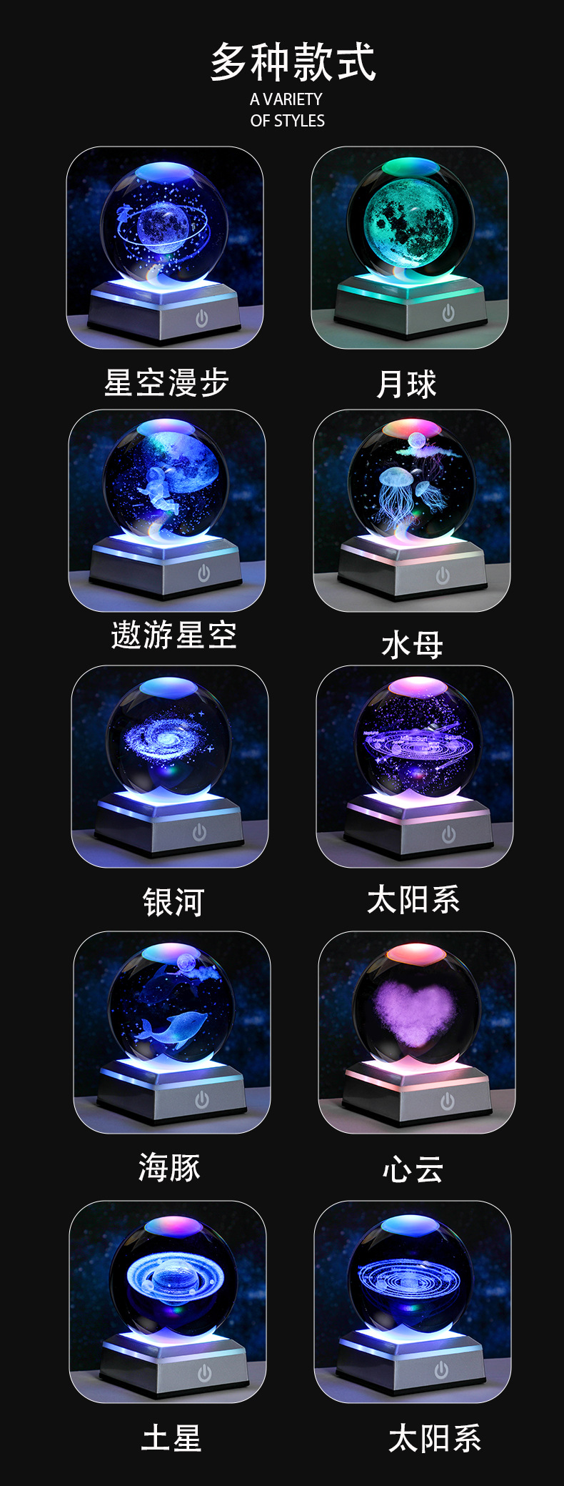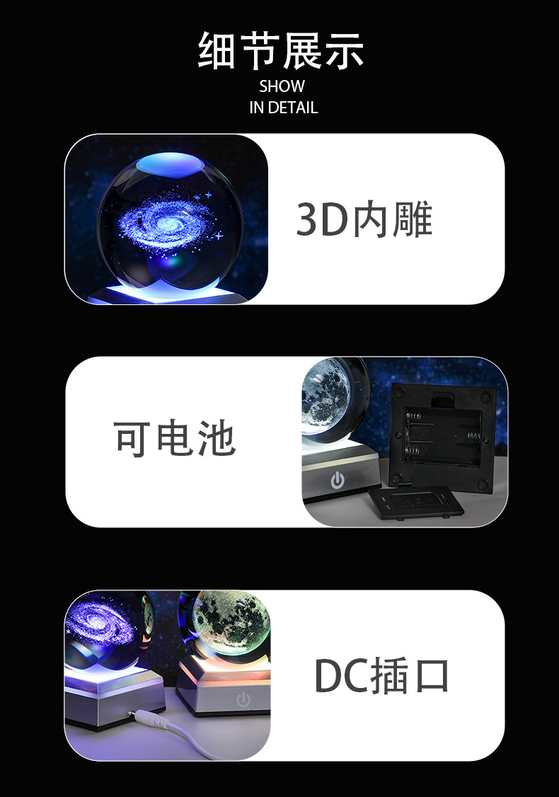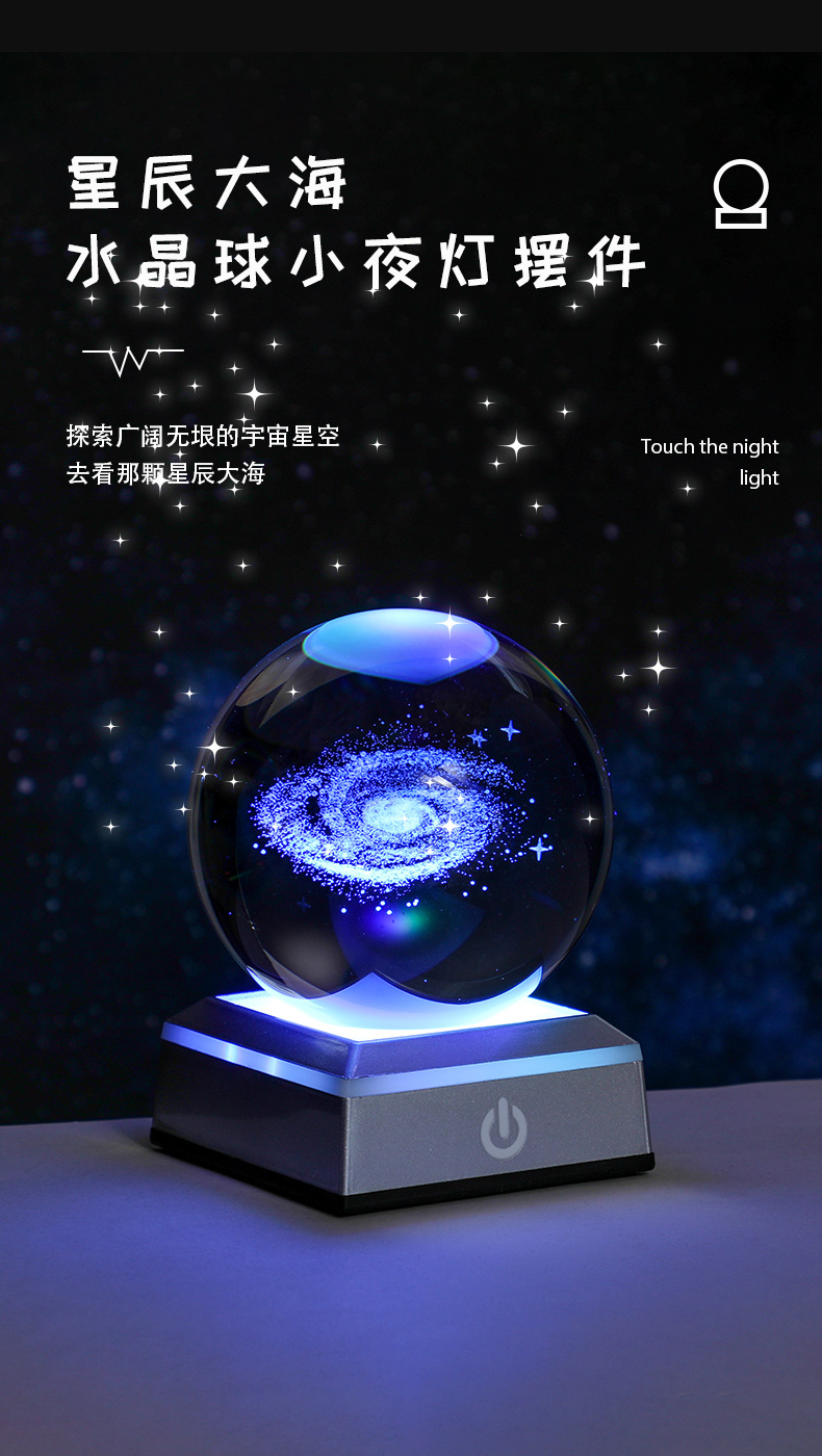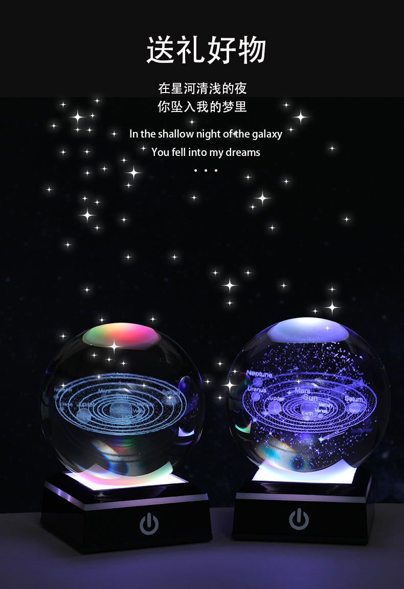 국경 3D 내부 조각 갤럭시 솔라 시스템 크리스탈 볼 크리에이티브 스퀘어 터치 센서 기본 나이트 라이트 데스크탑 장식품스토어 가기
