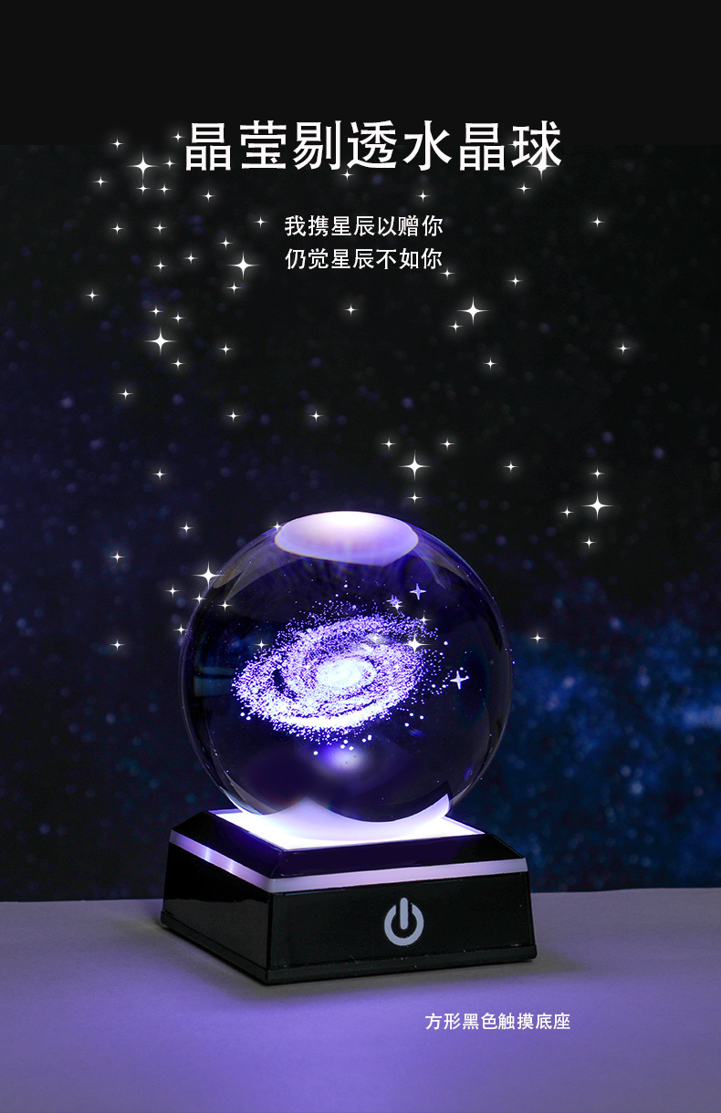국경 3D 내부 조각 갤럭시 솔라 시스템 크리스탈 볼 크리에이티브 스퀘어 터치 센서 기본 나이트 라이트 데스크탑 장식품