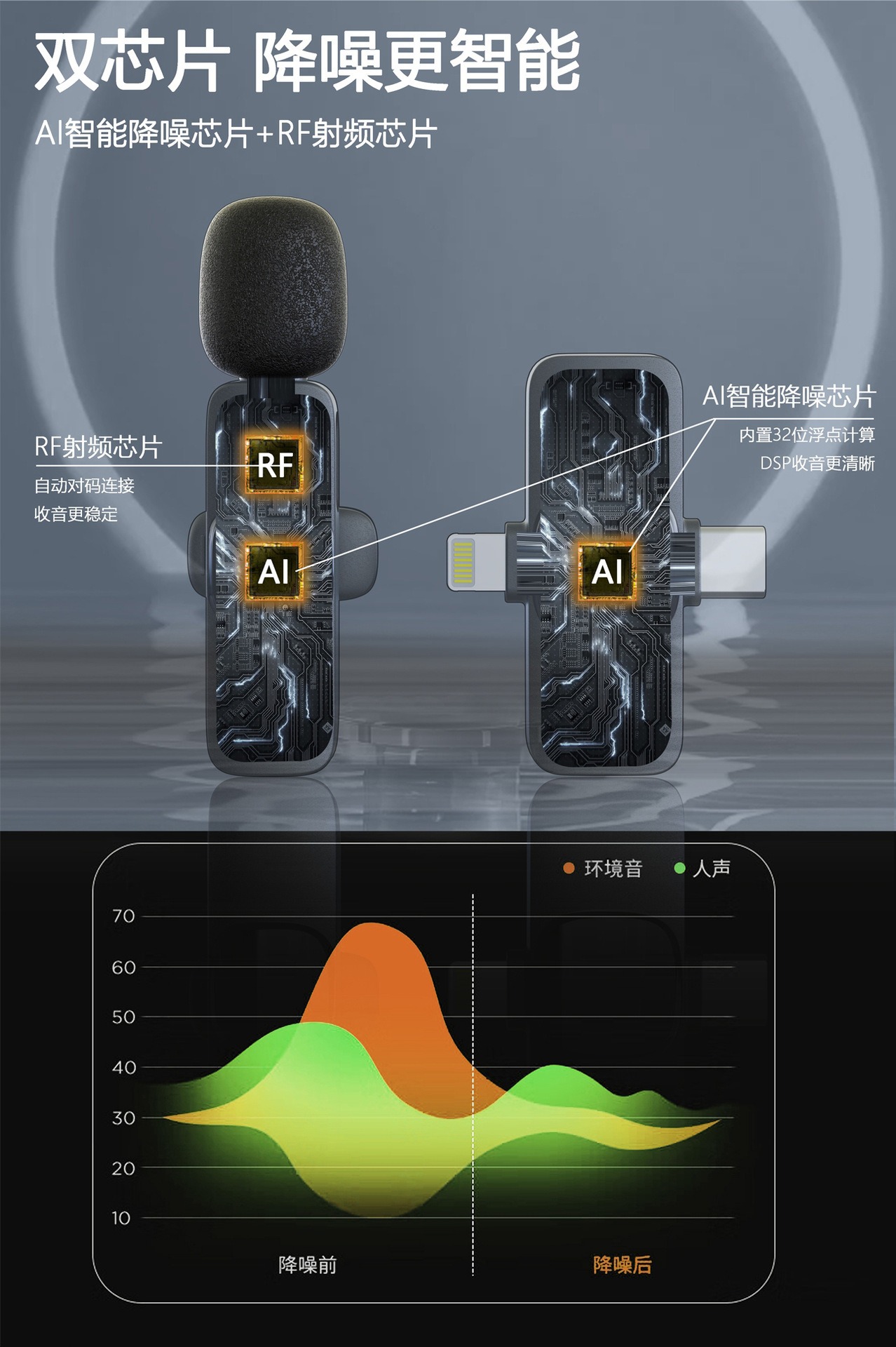 국경 간 K9 무선 칼라 클립 마이크 휴대 전화 라이브 미니 마이크 한 드래그 두 녹음 라디오 소음 감소 마이크 클립