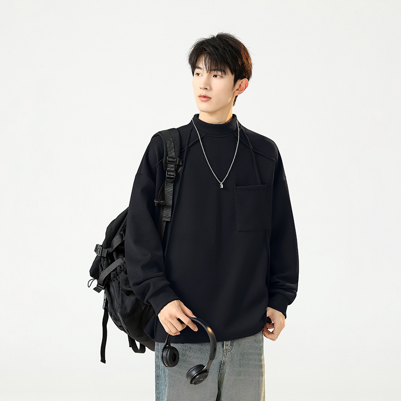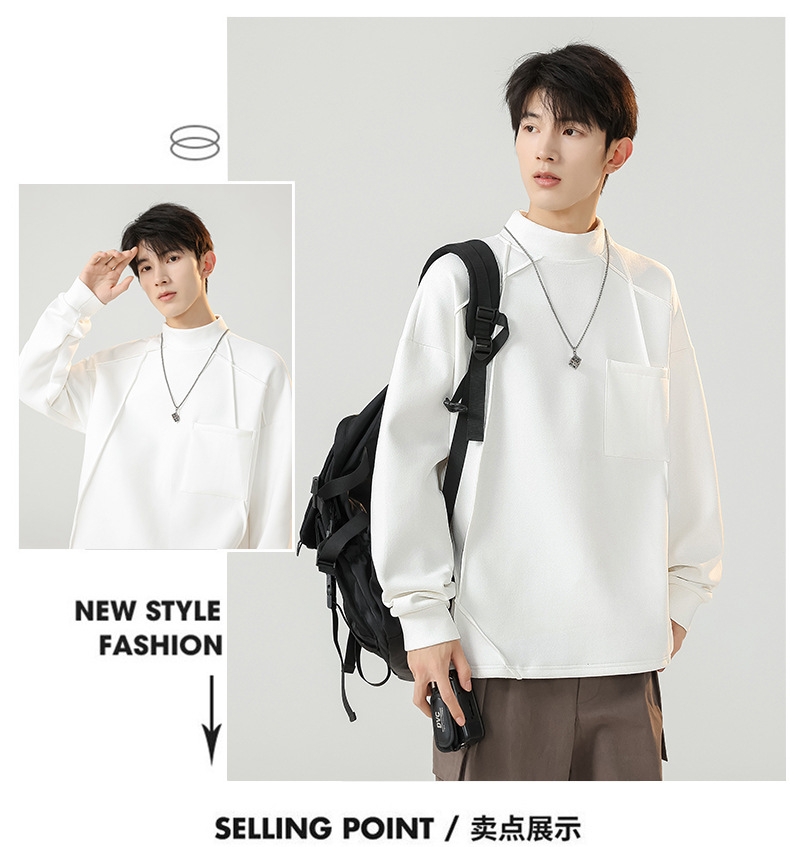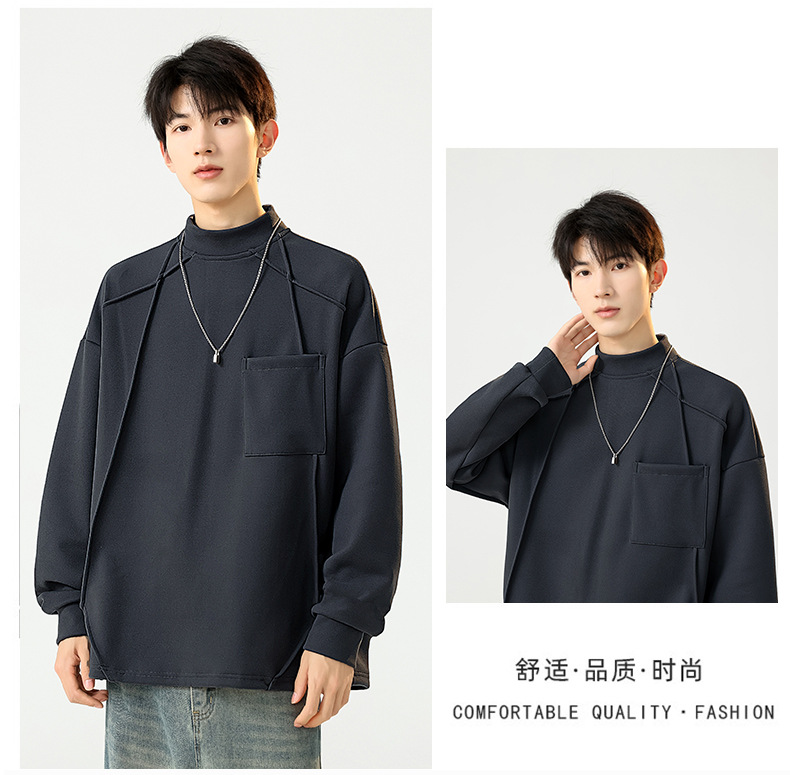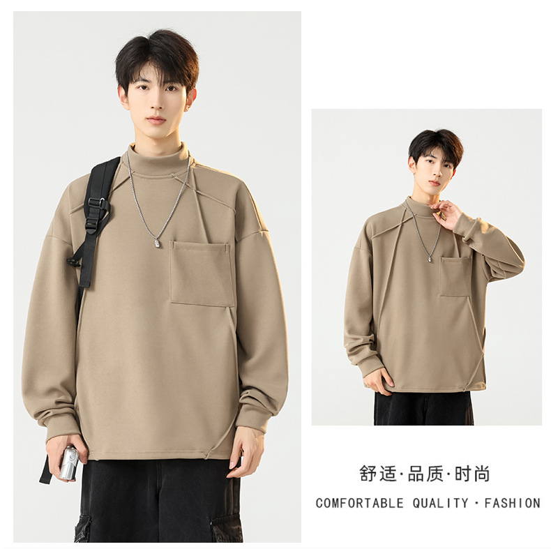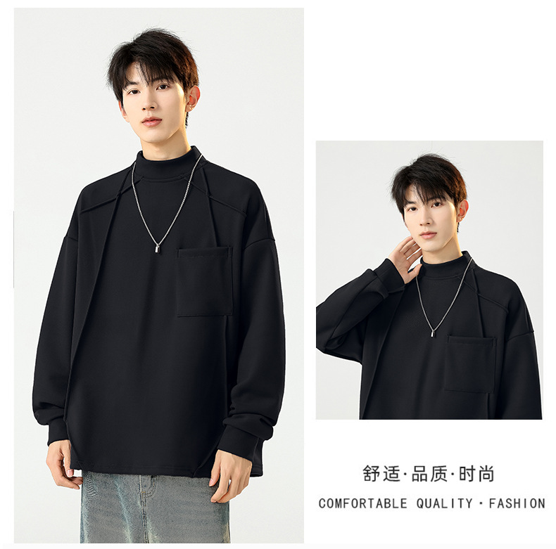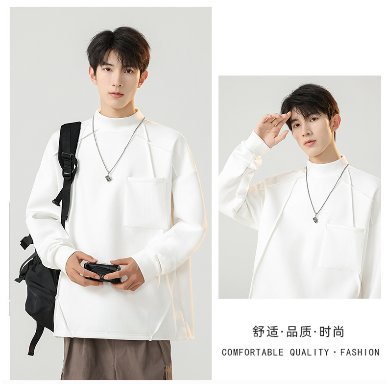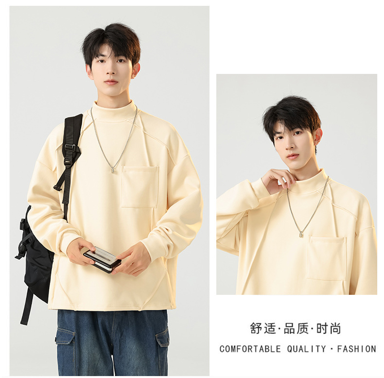 봄 가을과 겨울 새로운 반 높이 칼라 스웨트 셔츠 남성 긴팔 티셔츠 남성 인스 타 그램 인기 브랜드 루즈 올 매치 캐주얼 남성 솔리드 컬러스토어 가기