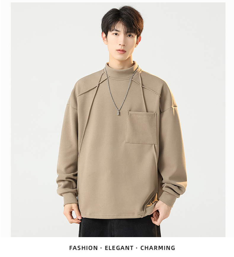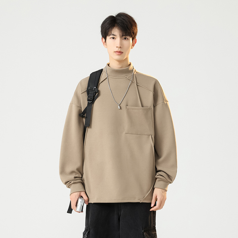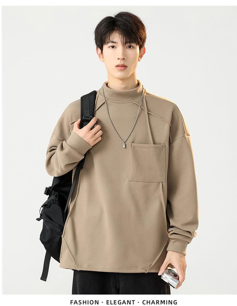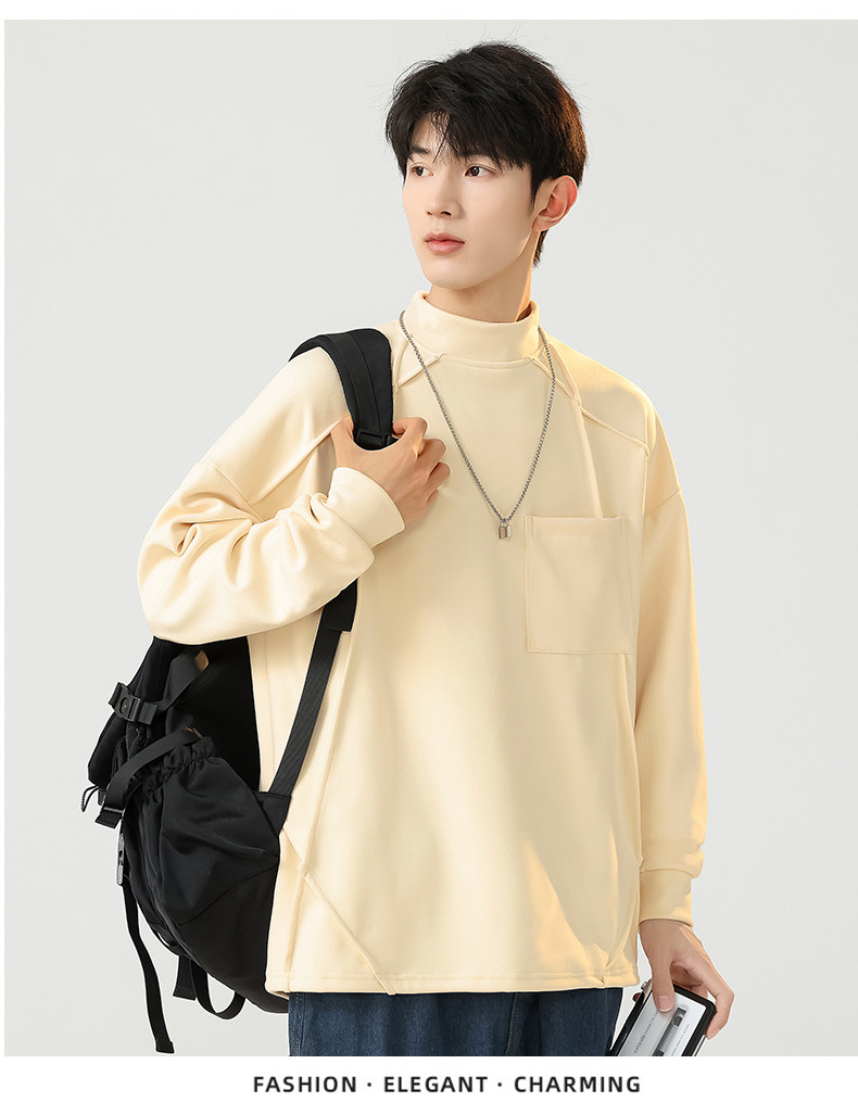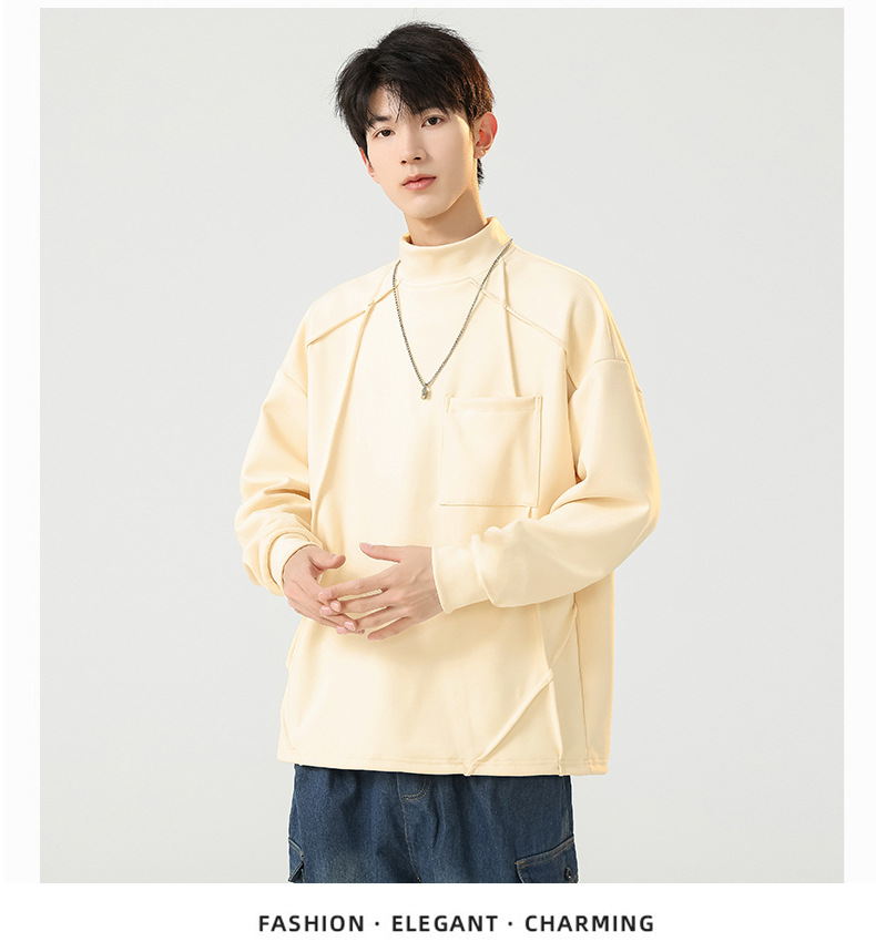 봄 가을과 겨울 새로운 반 높이 칼라 스웨트 셔츠 남성 긴팔 티셔츠 남성 인스 타 그램 인기 브랜드 루즈 올 매치 캐주얼 남성 솔리드 컬러스토어 가기
