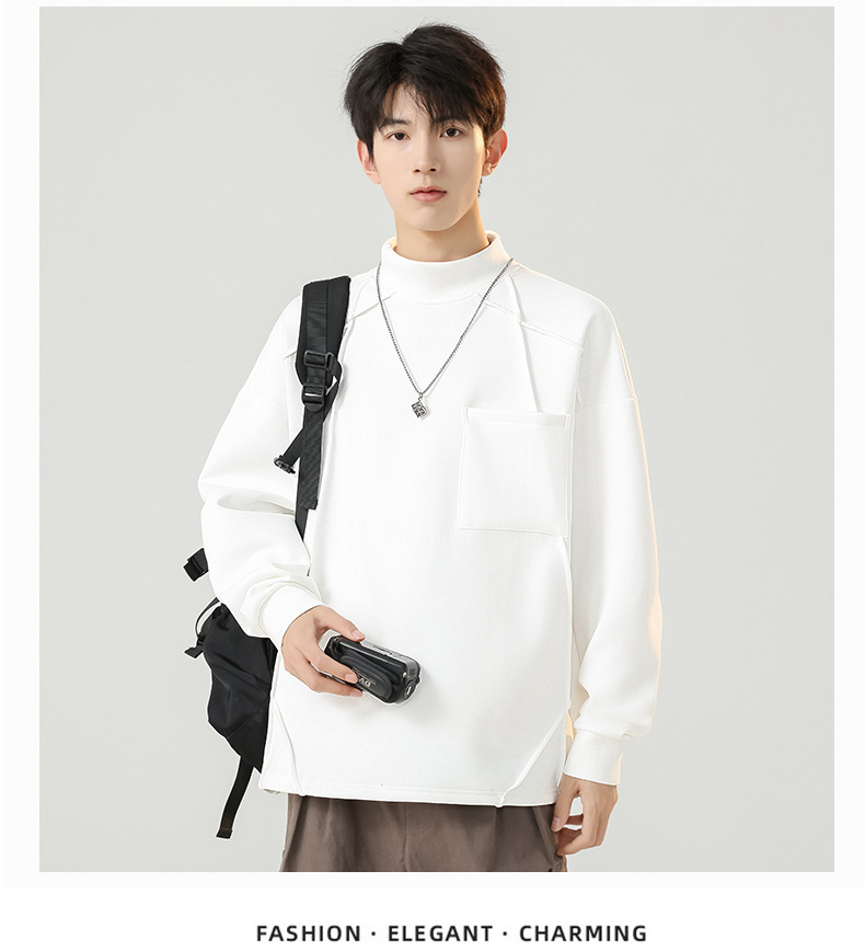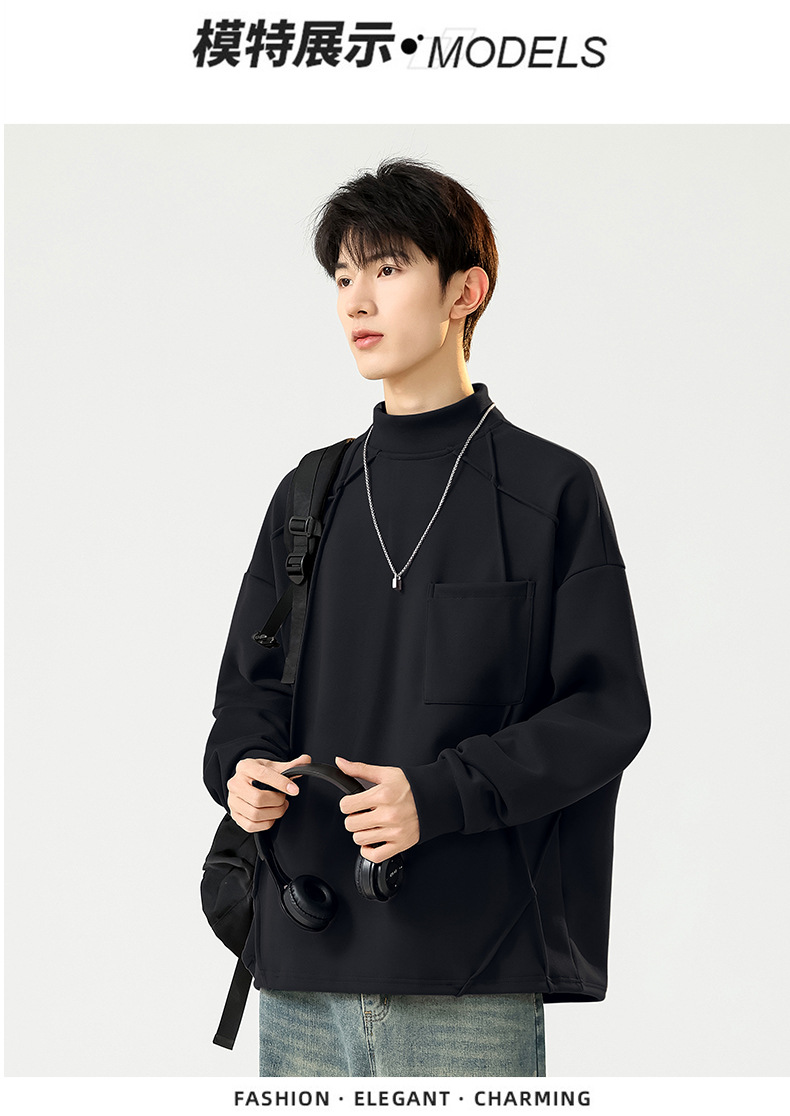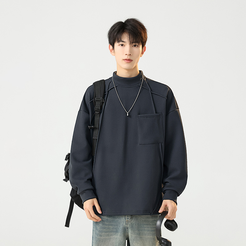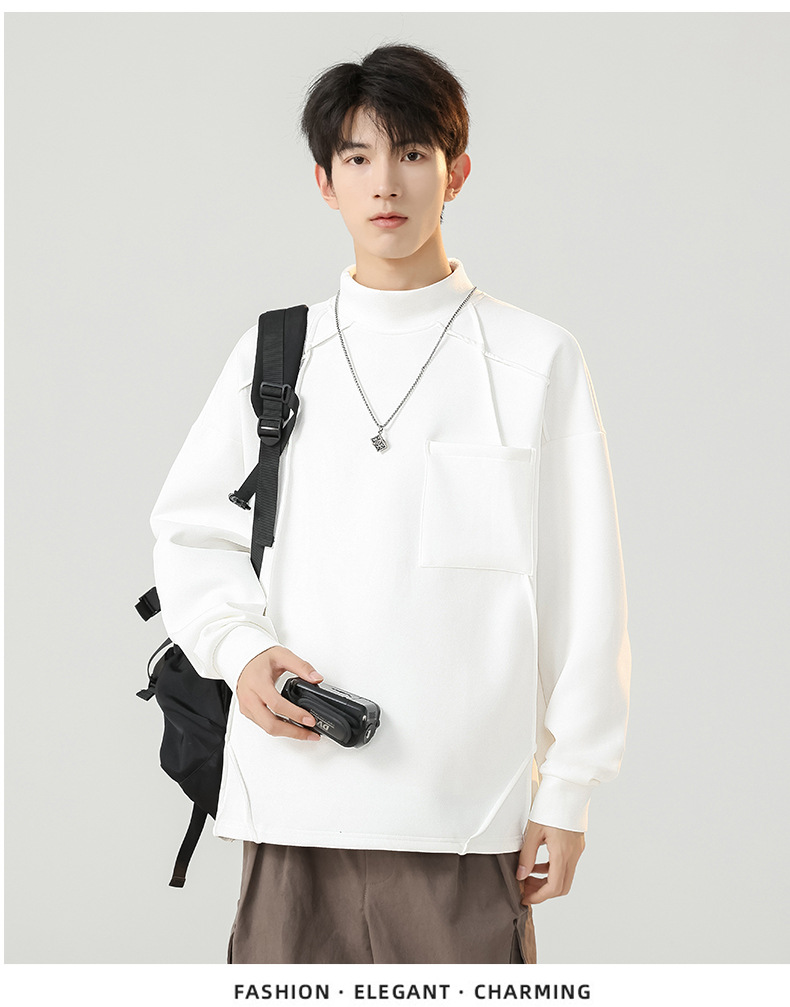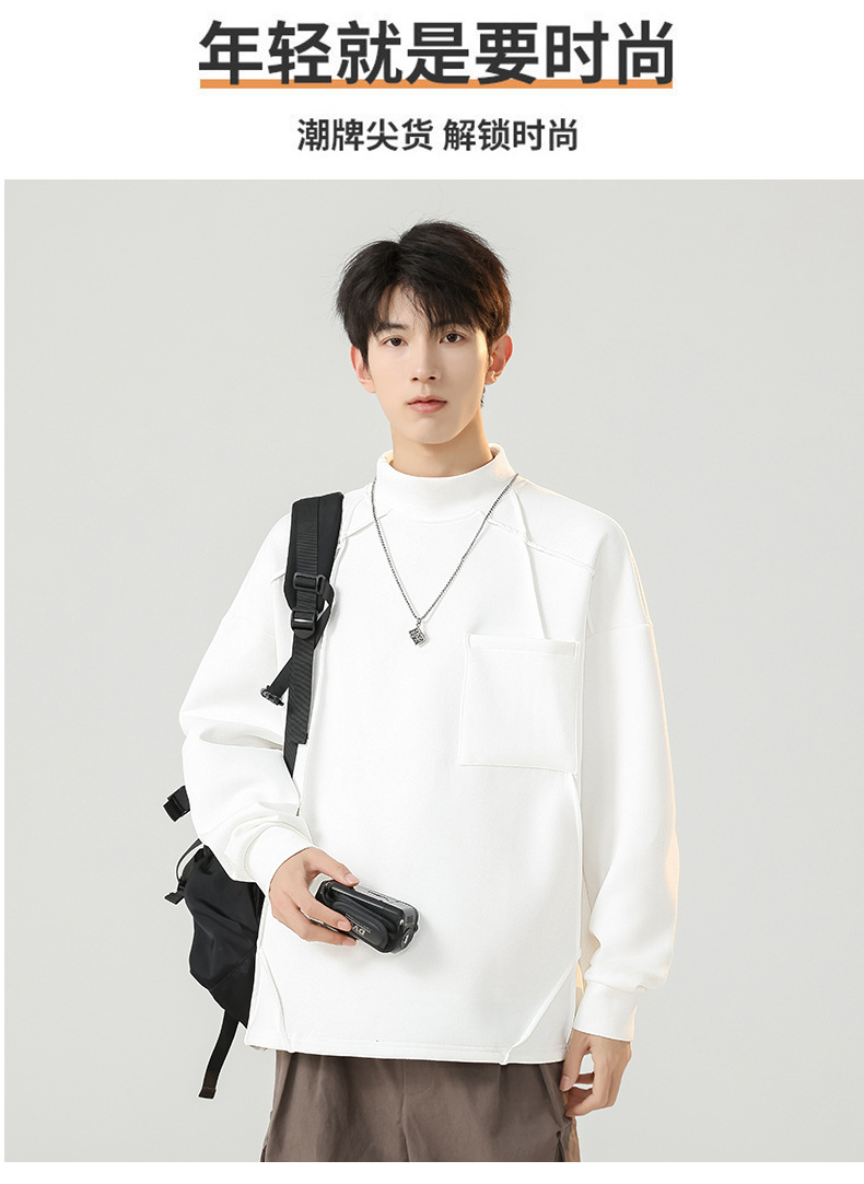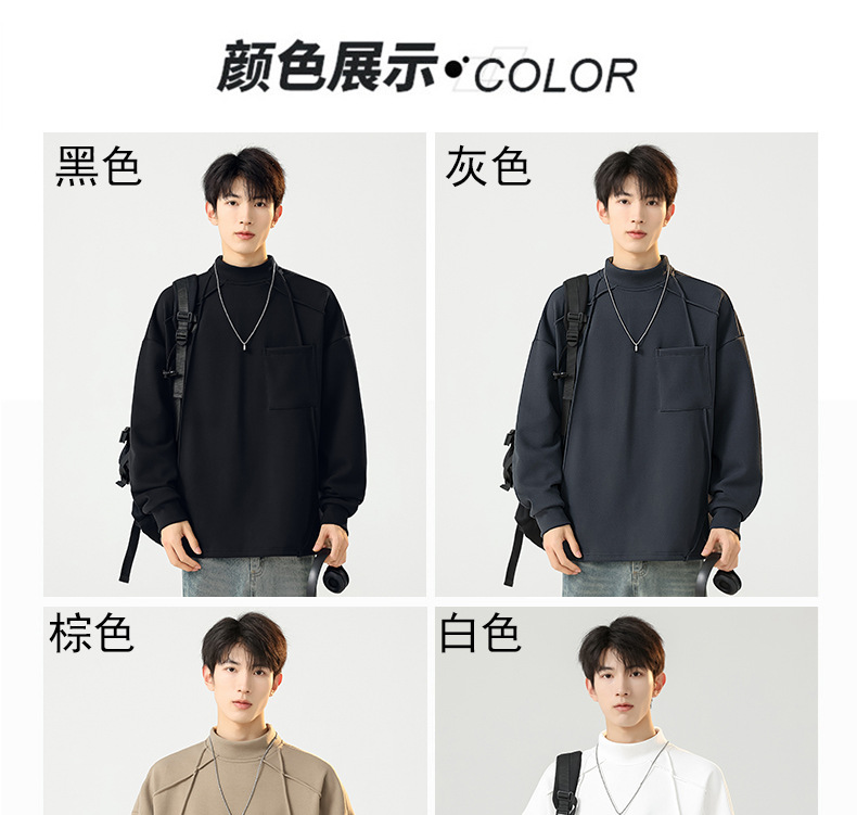 봄 가을과 겨울 새로운 반 높이 칼라 스웨트 셔츠 남성 긴팔 티셔츠 남성 인스 타 그램 인기 브랜드 루즈 올 매치 캐주얼 남성 솔리드 컬러스토어 가기
