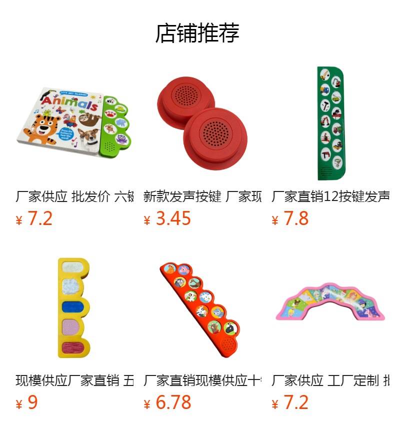 深圳市腾鑫发科技有限公司主要经营早教书发声器、玩具等产品专业生产加工的公司,拥有完整、科学的质量管理体系。深圳市腾鑫发科技有限公司的诚信、实力和产品质量获得业界的认可。欢迎各界朋友莅临参观指导和业务洽谈。