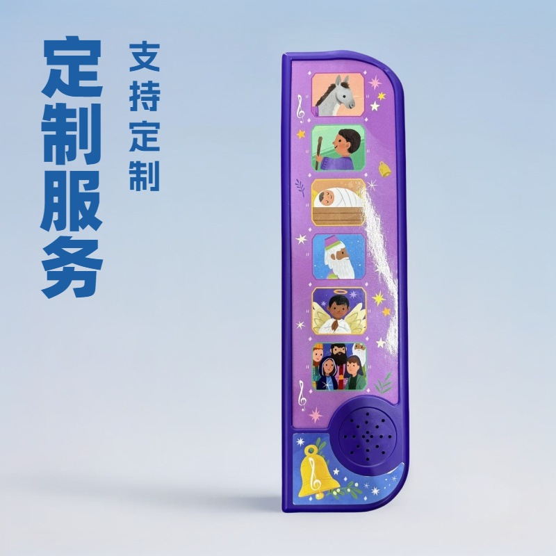 发声书是基于电子芯片之上的一种新型电子图书读物,由扬声器和图书配套组成,克服儿童不会认字、用手指点击书籍上的图片或特定位置就可以发出之相对应的发音、句子、诗歌或故事。具有点读、同步翻译、朗诵复读等功能。