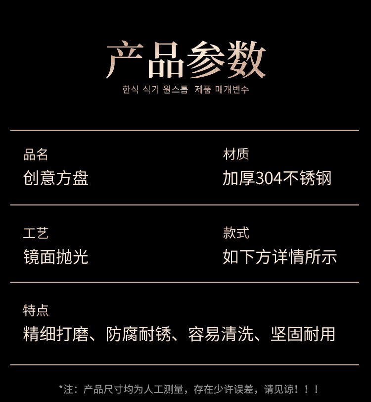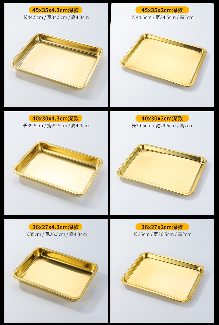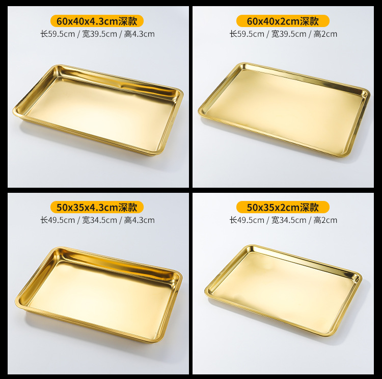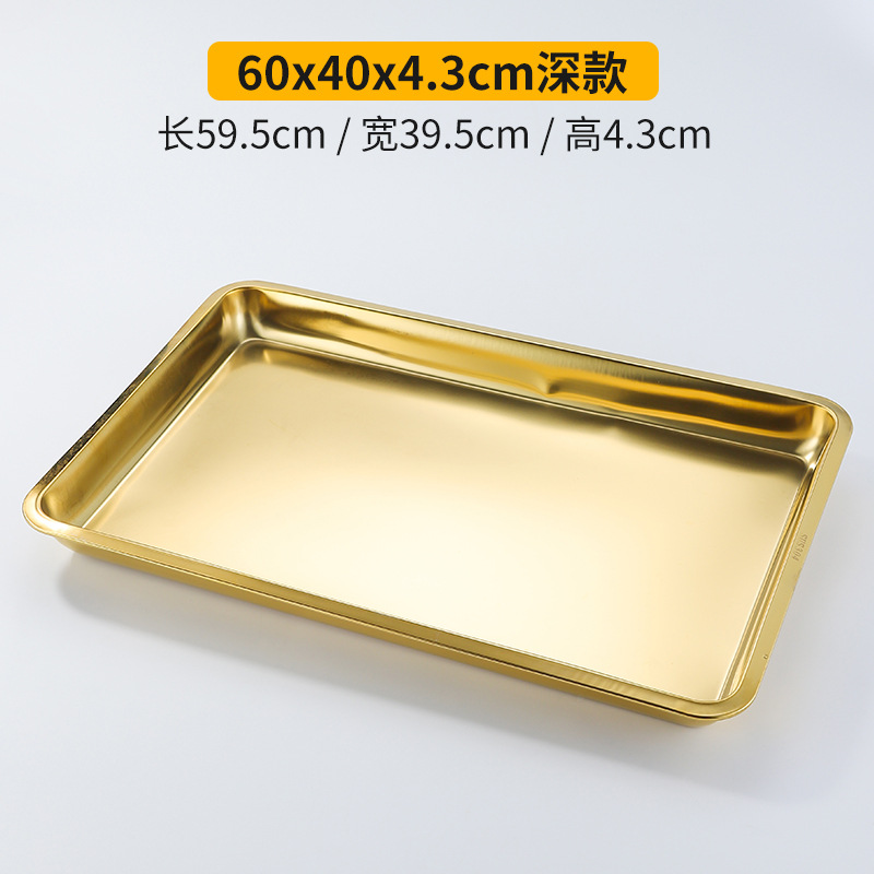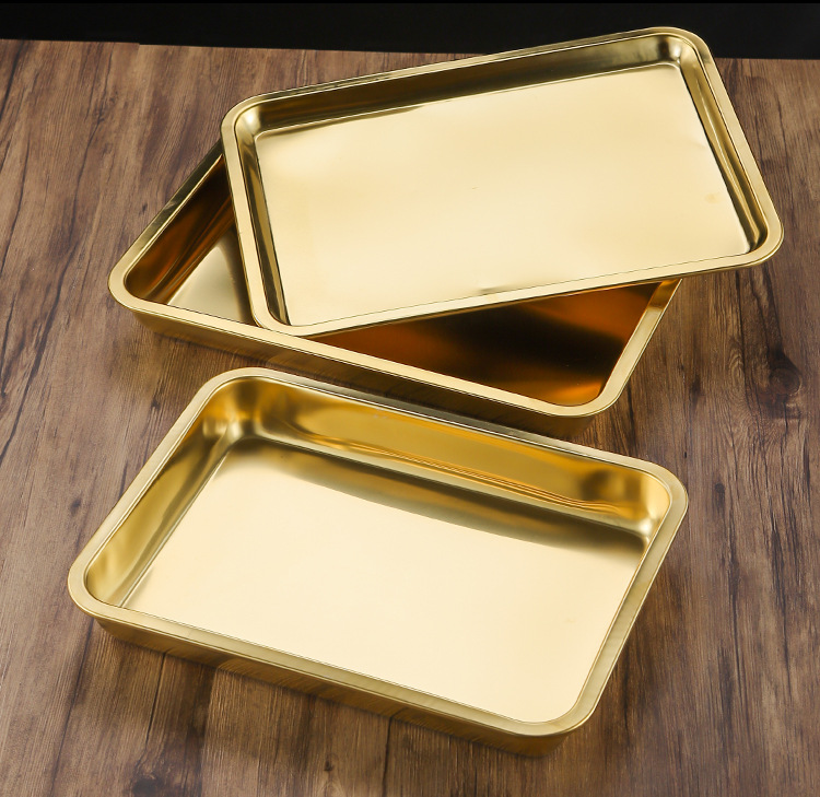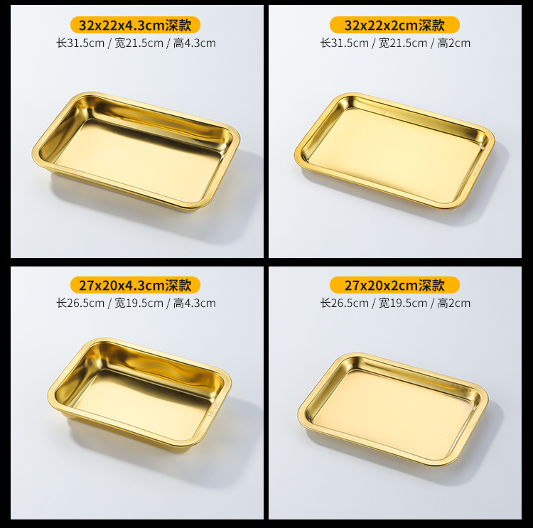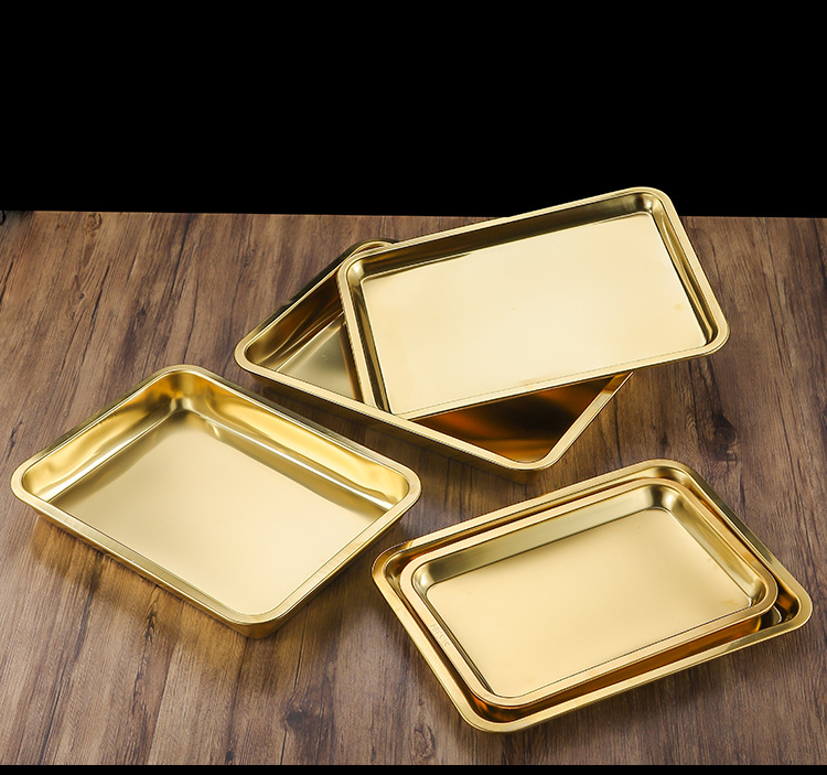 두꺼운 스테인레스 스틸 평평한 바닥 쟁반 쌀 그릇 만두 스퀘어 플레이트 직사각형 황금 한국 스타일 바베큐 플레이트 차가운 피부 김이 판스토어 가기