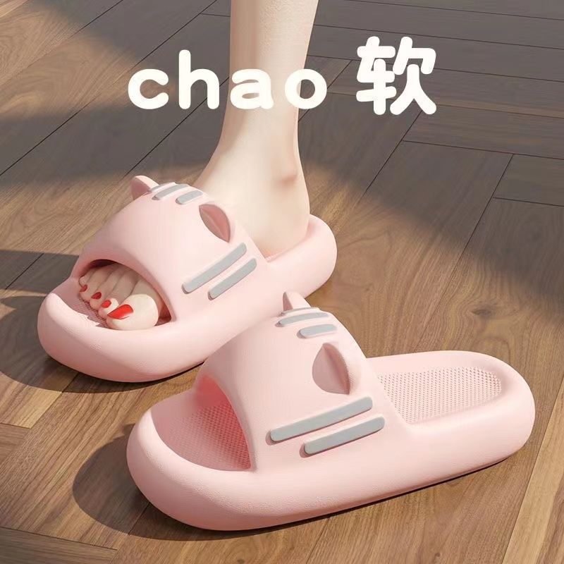 재고 빠른 헤어 홈 똥 슬리퍼 여성용 여름 실내 및 실외 착용 미끄럼 방지 두꺼운 바닥 내마모성 고양이 귀 귀여운스토어 가기