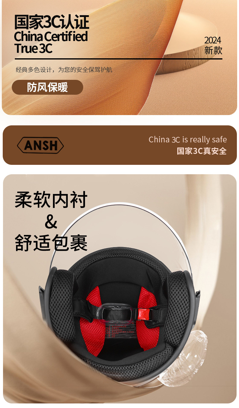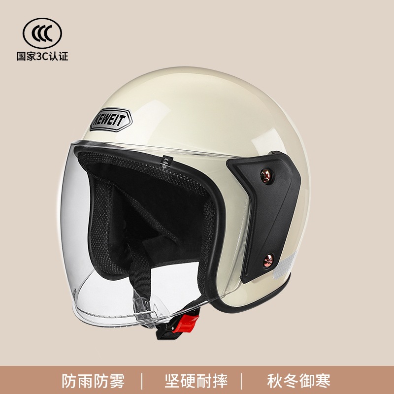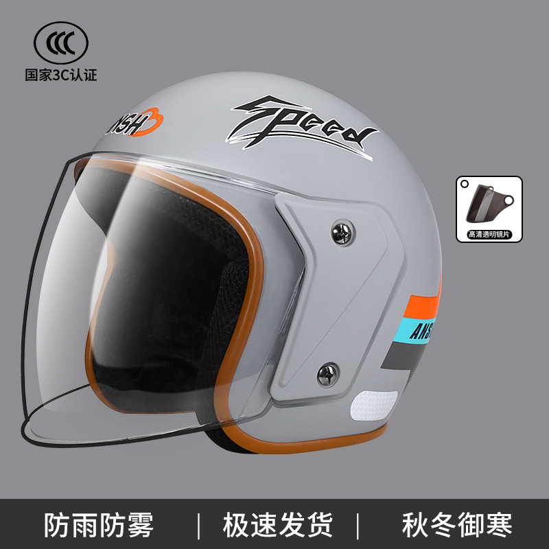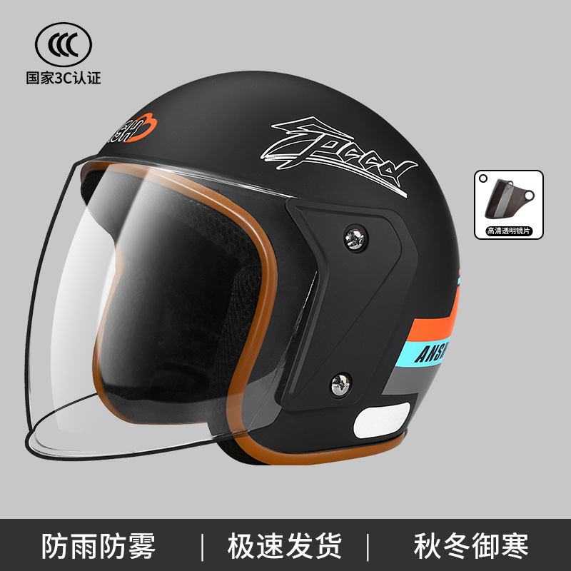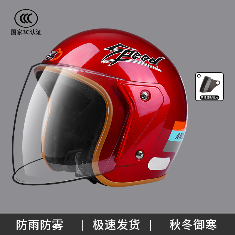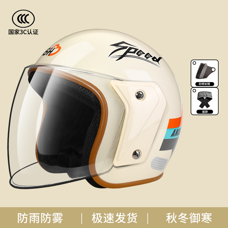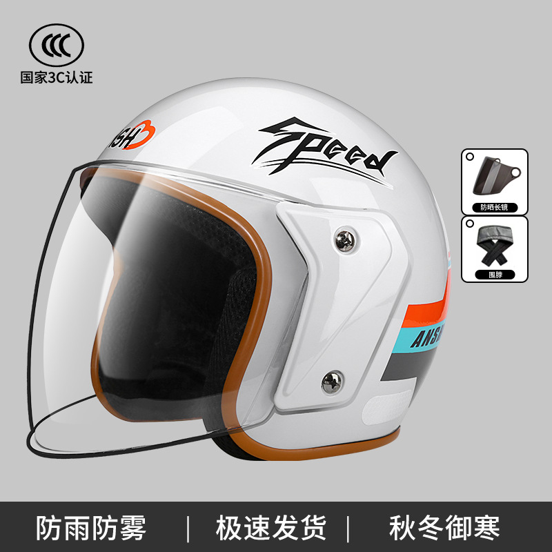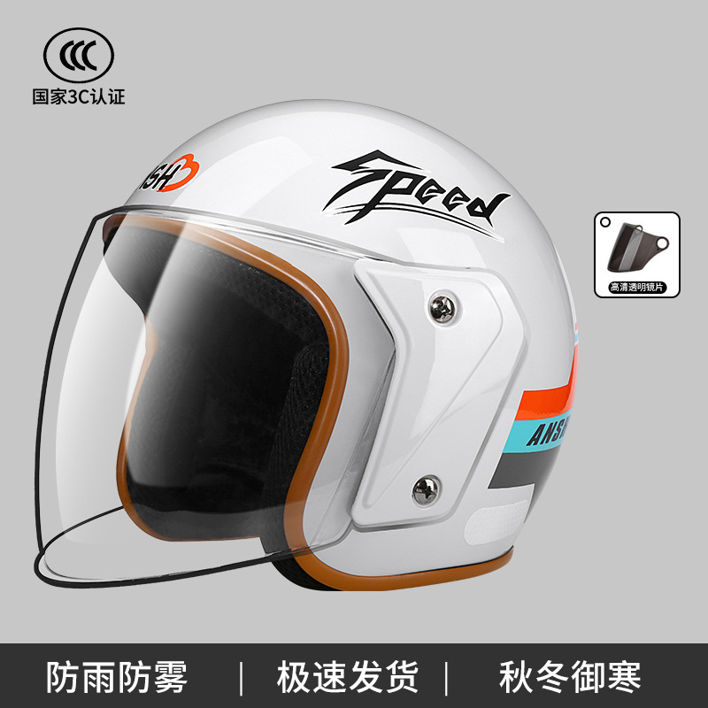 ANSH 오토바이 하프 헬멧 A2 사계절 헬멧 전기 자동차 가을과 겨울 따뜻한 헬멧 소년 소녀 일반 3C 인증