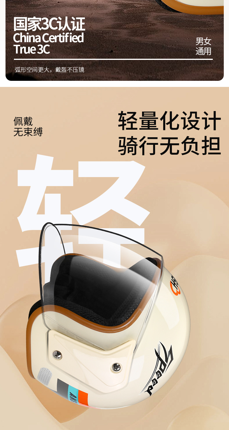 • 3C 국가표준(밝은 빨간색) + 스카프 + 자외선 차단 렌즈