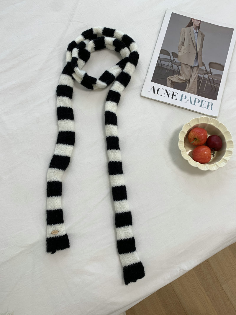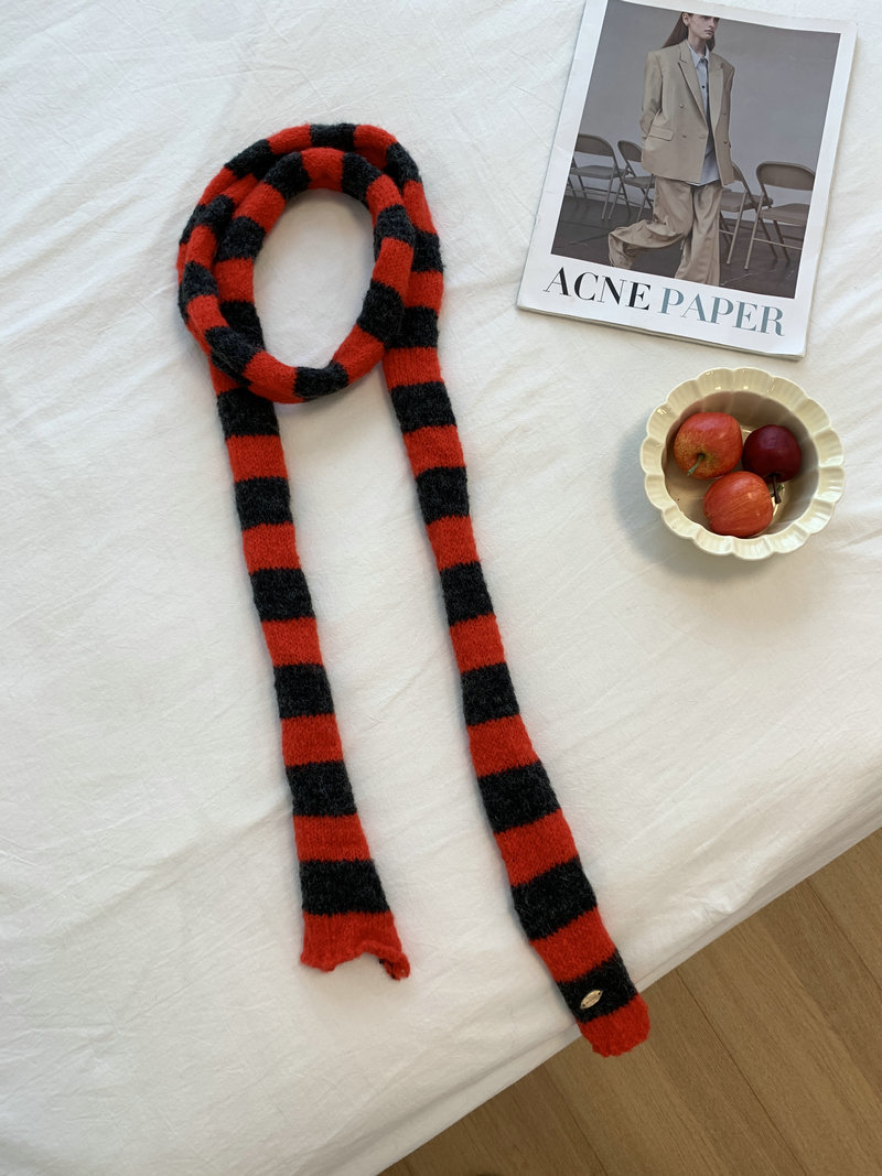 일본 하라주쿠 좁은 줄무늬 소시지 니트 스카프 여성 가을 및 겨울 학생의 정복 모양 장식 밀레니엄 스파이스 스카프스토어 가기