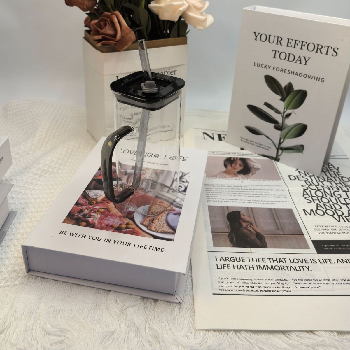 • 사각컵+분말손잡이 빨대(분말뚜껑) 380ml