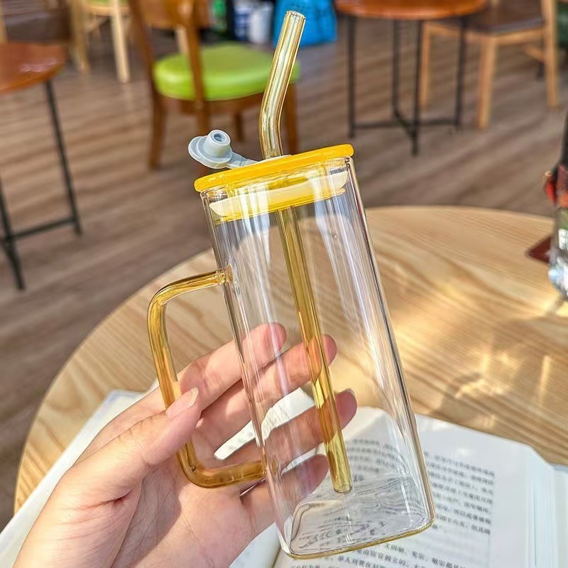 • 빨대와 노란색 손잡이가 달린 사각컵(노란색 뚜껑) 380ml
