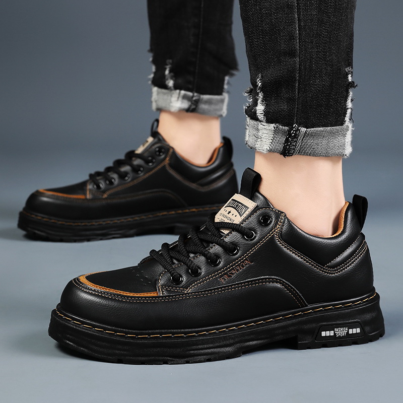 플러스 사이즈 대외 무역 2024 새로운 로우 탑 마틴 부츠 남성용 캐주얼 레트로 툴링 가죽 신발 마틴 신발 남성 두꺼운 단독