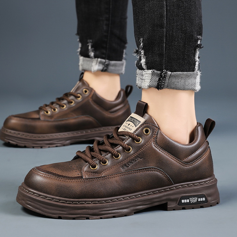 플러스 사이즈 대외 무역 2024 새로운 로우 탑 마틴 부츠 남성용 캐주얼 레트로 툴링 가죽 신발 마틴 신발 남성 두꺼운 단독스토어 가기