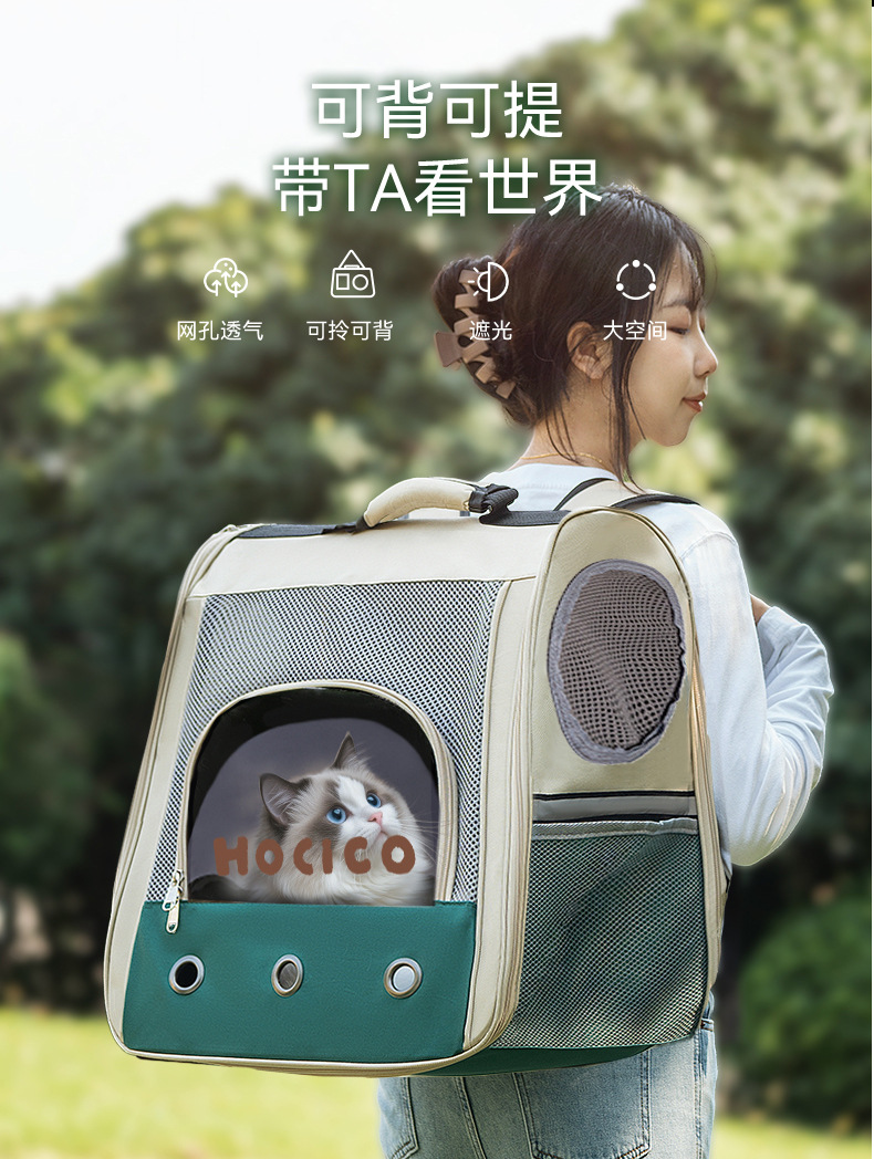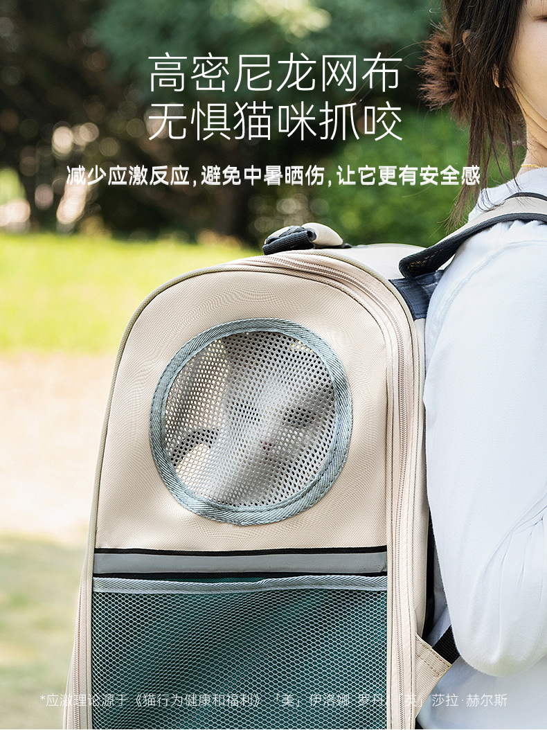 跨境撞色拼接简约休闲透气双肩包大空间猫包户外出行宠物猫包用品