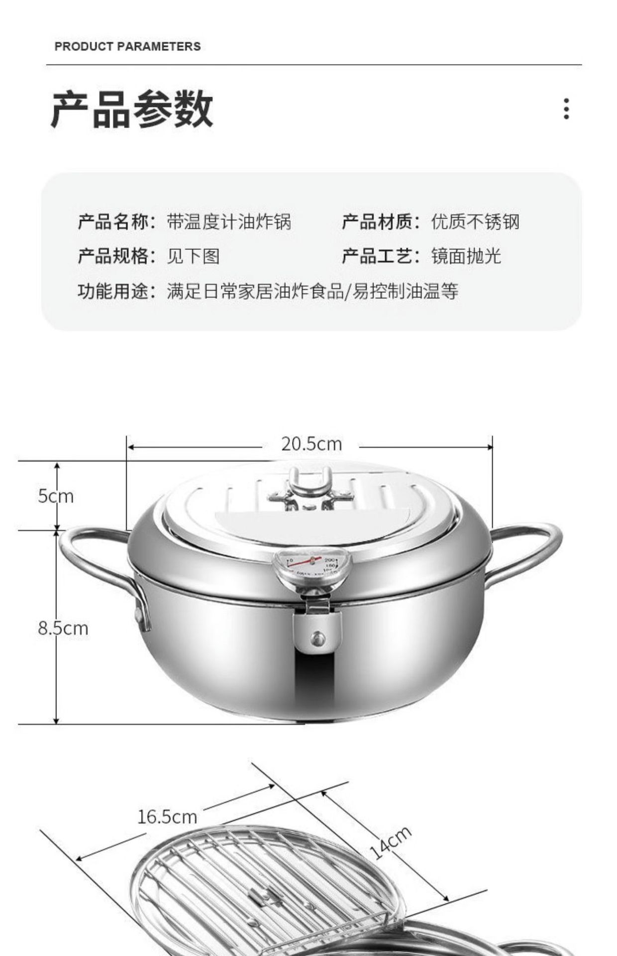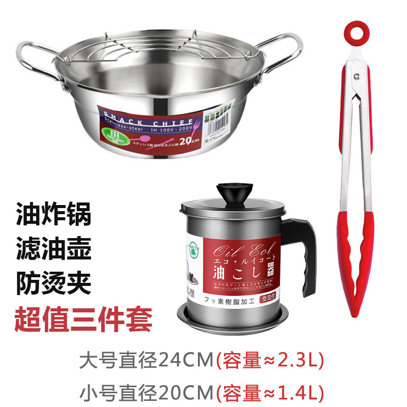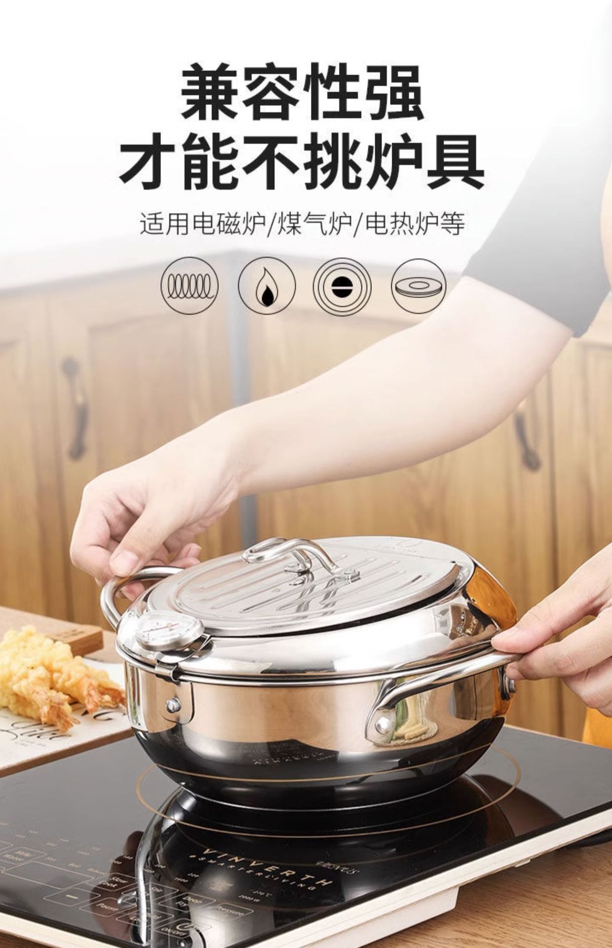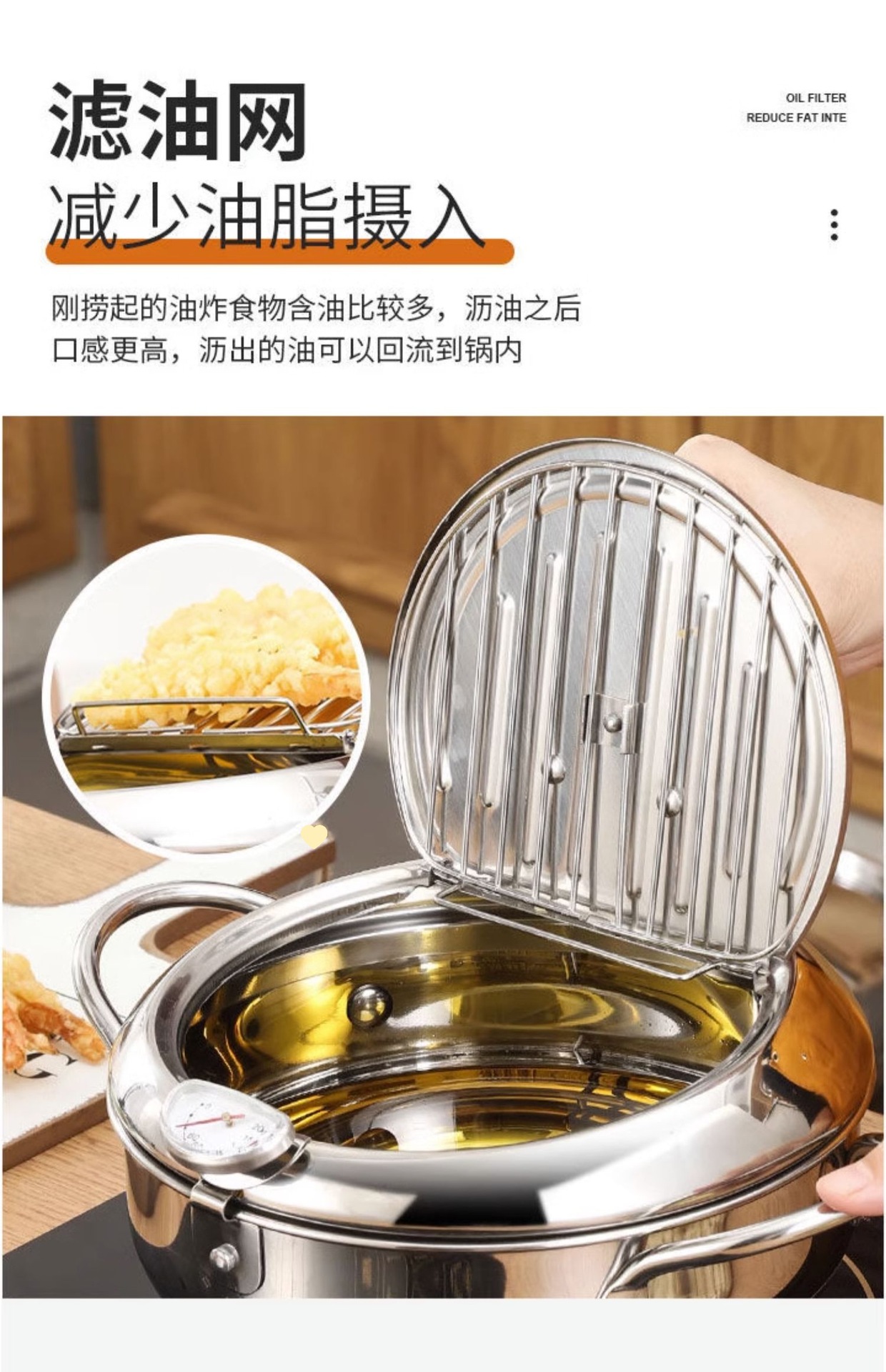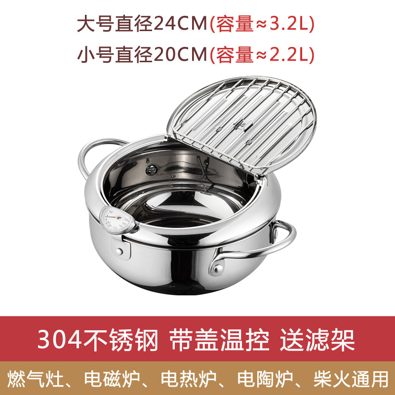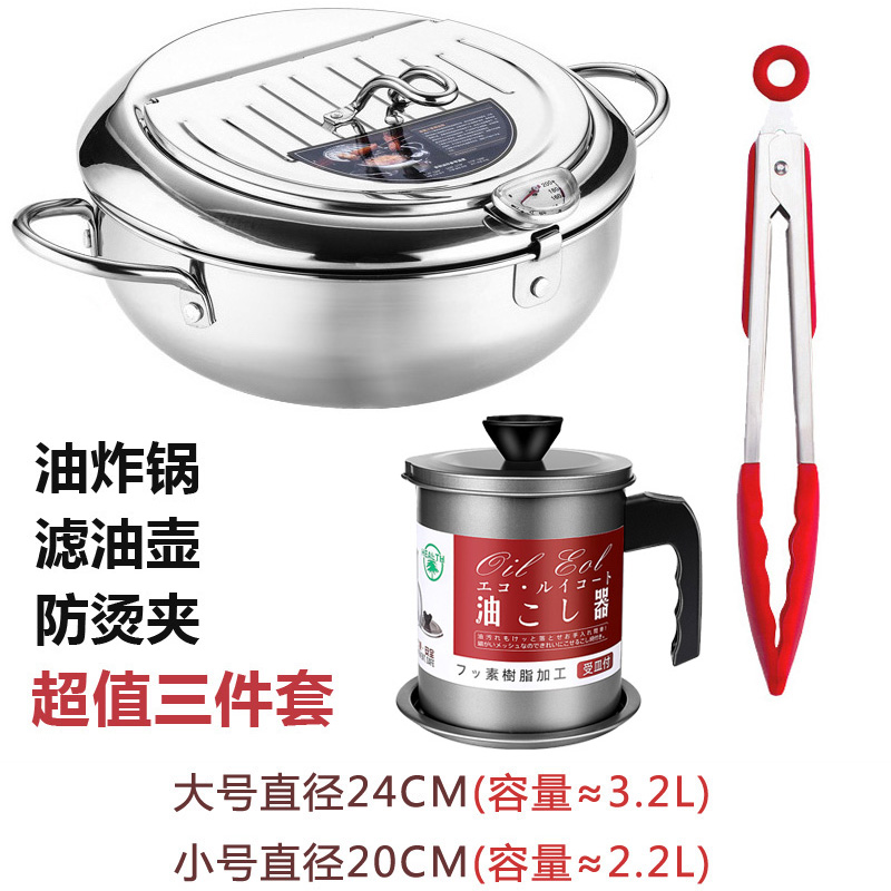 • 뚜껑 있음/304 스테인리스 스틸/온도 조절 버전/3종 세트[냄비+기름 배수 랙+화상 방지 클립]