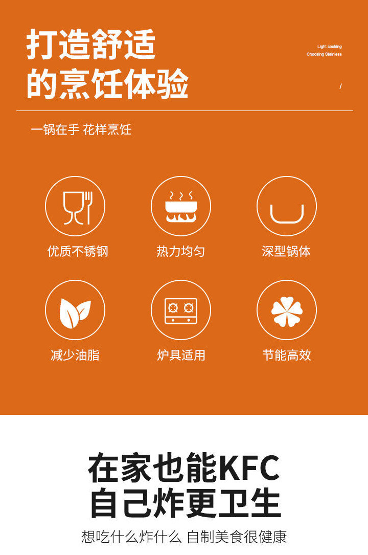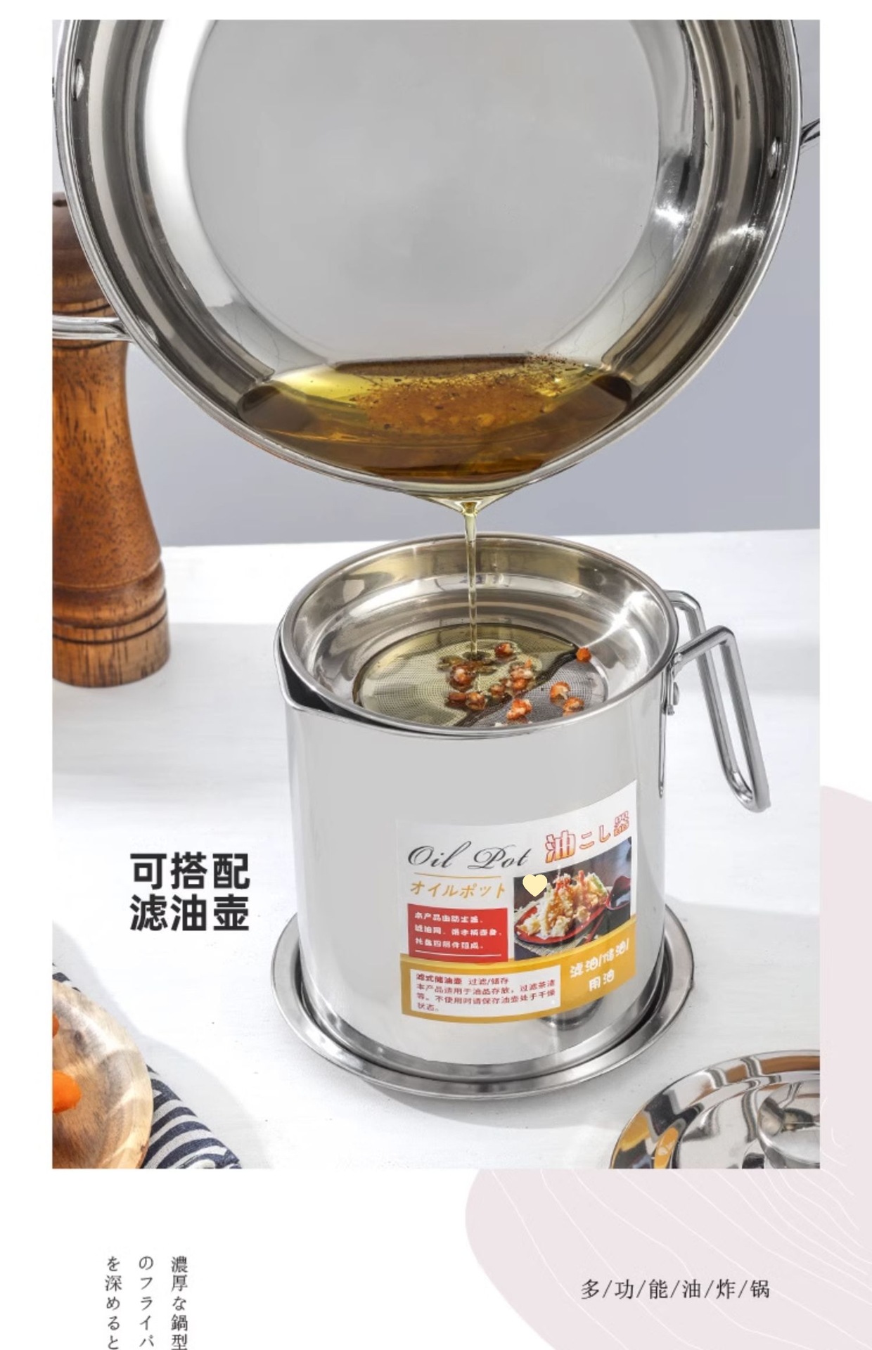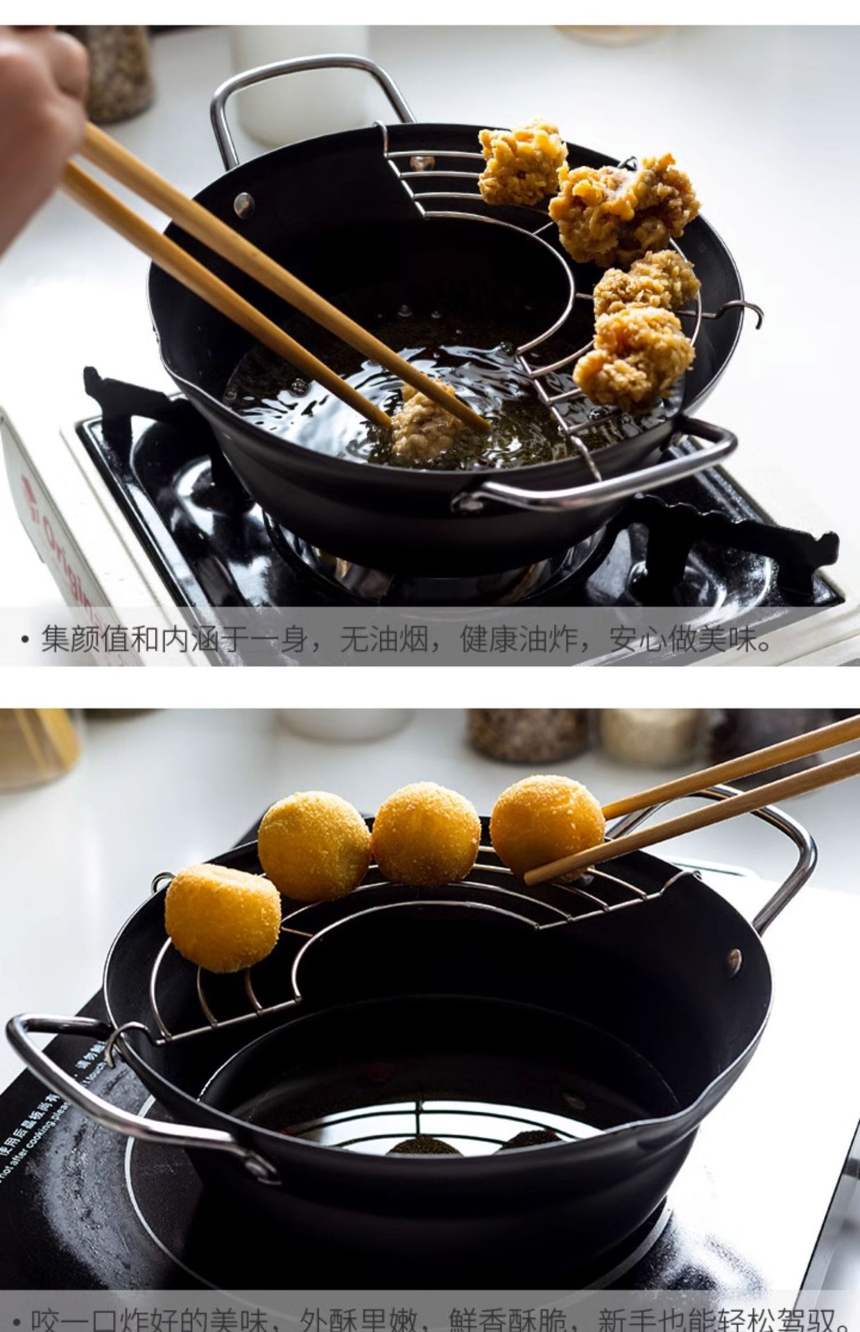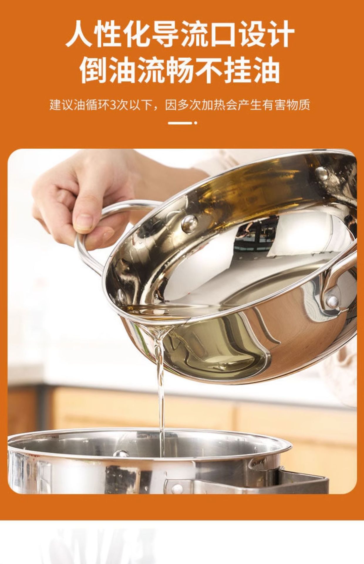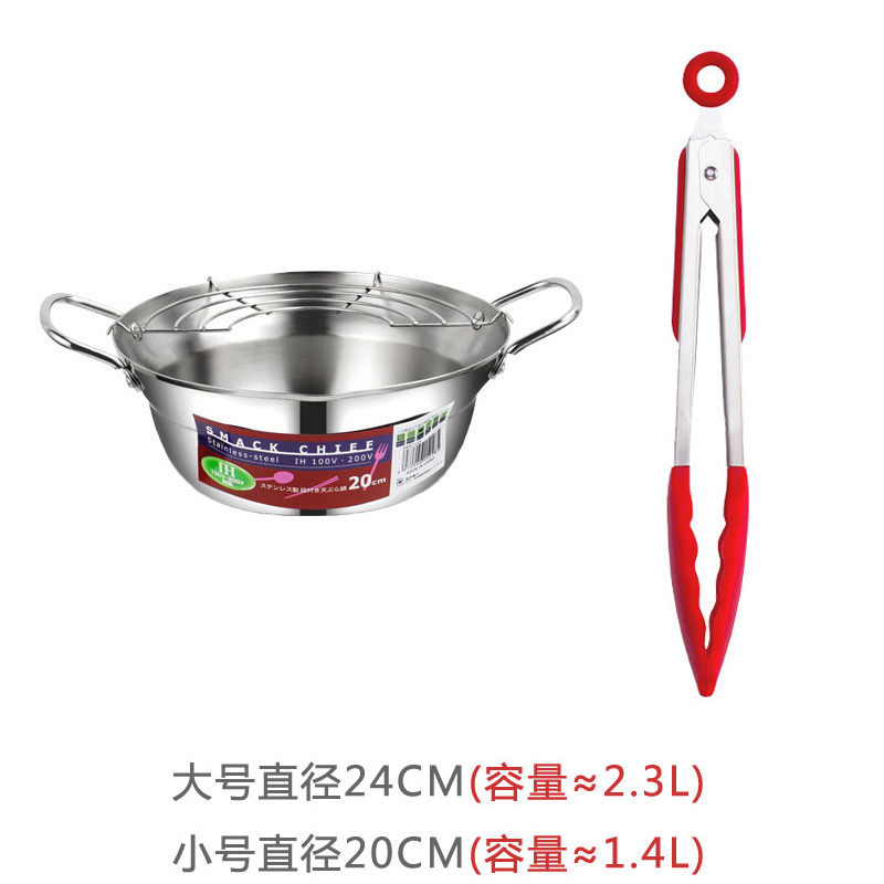 • 뚜껑 있음/304 스테인리스 스틸/온도 조절 버전/3종 세트[냄비+기름 배수 랙+화상 방지 클립]