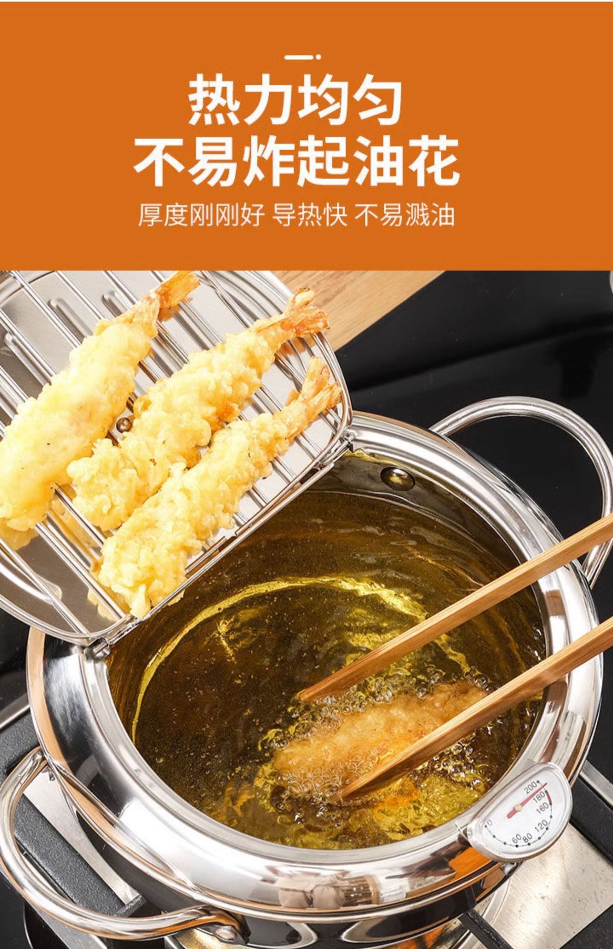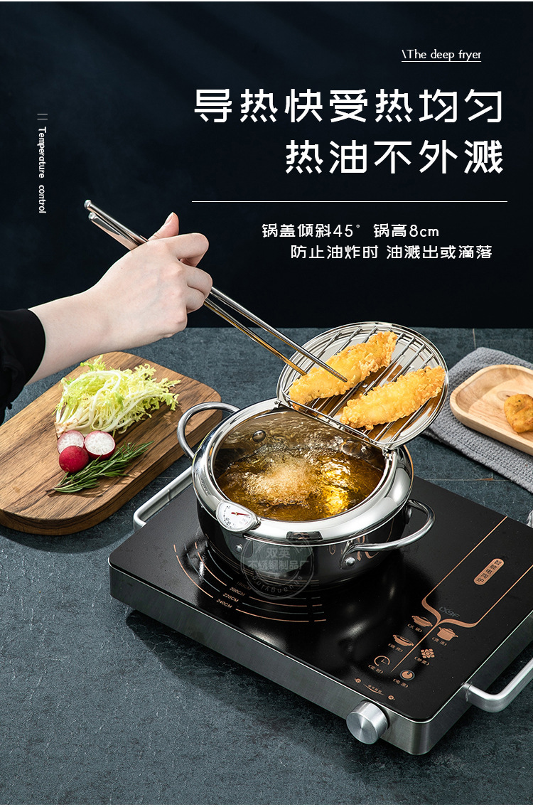 온도계 304 스테인레스 스틸 가스 스토브 유도 쿠커를 가진 일본 튀김 프라이어 가정용 소형 프라이어스토어 가기