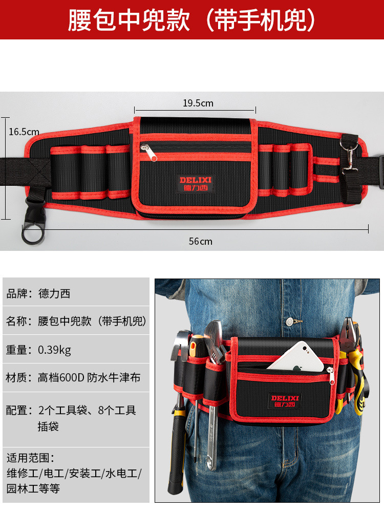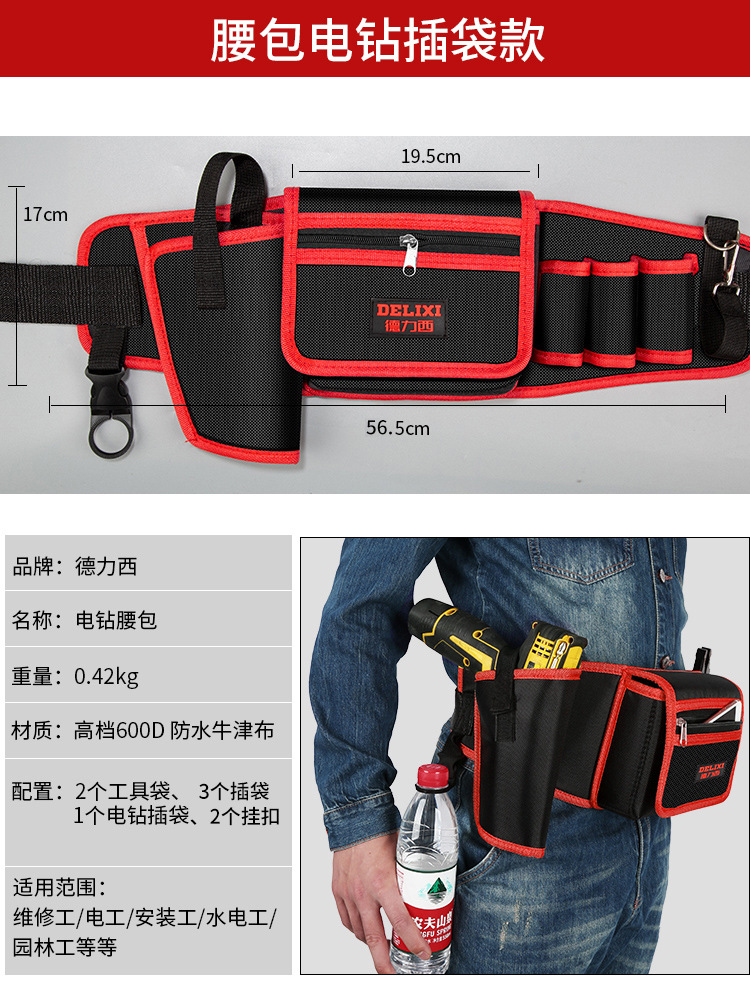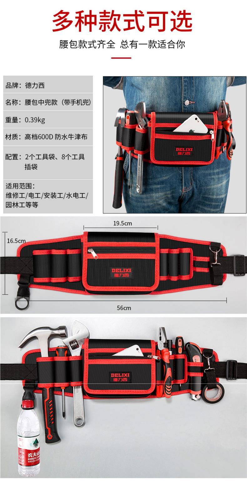 Delixi 전기 도구 허리 가방 남자의 견고하고 내구성 유지 보수 휴대용 다기능 하드웨어 저장 가방 툴킷