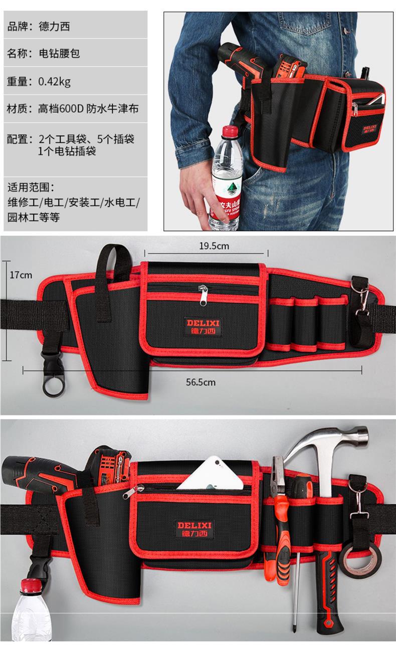Delixi 전기 도구 허리 가방 남자의 견고하고 내구성 유지 보수 휴대용 다기능 하드웨어 저장 가방 툴킷스토어 가기