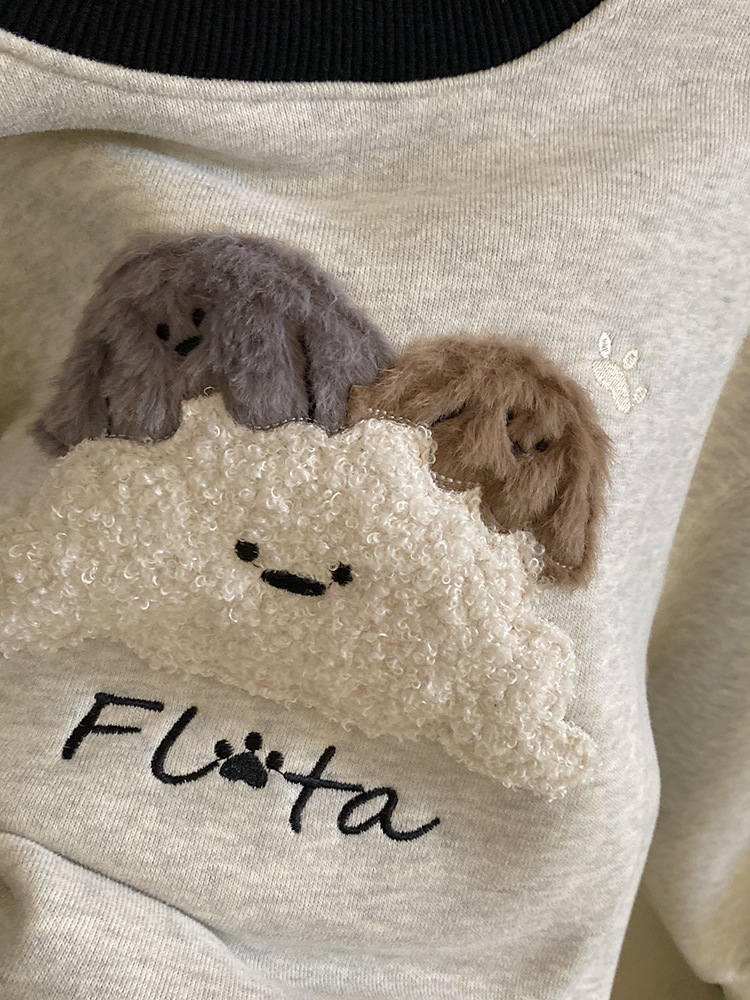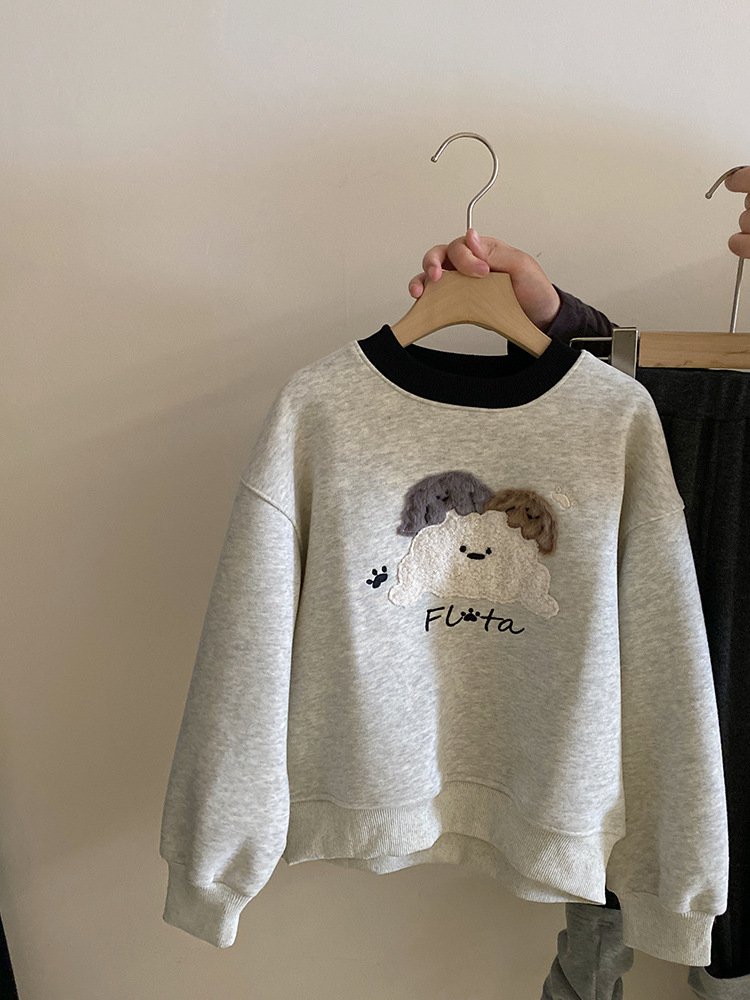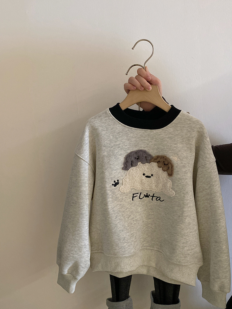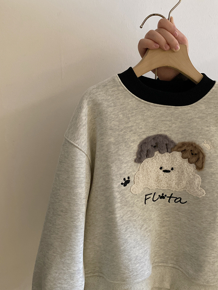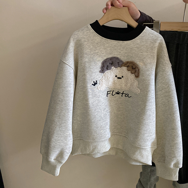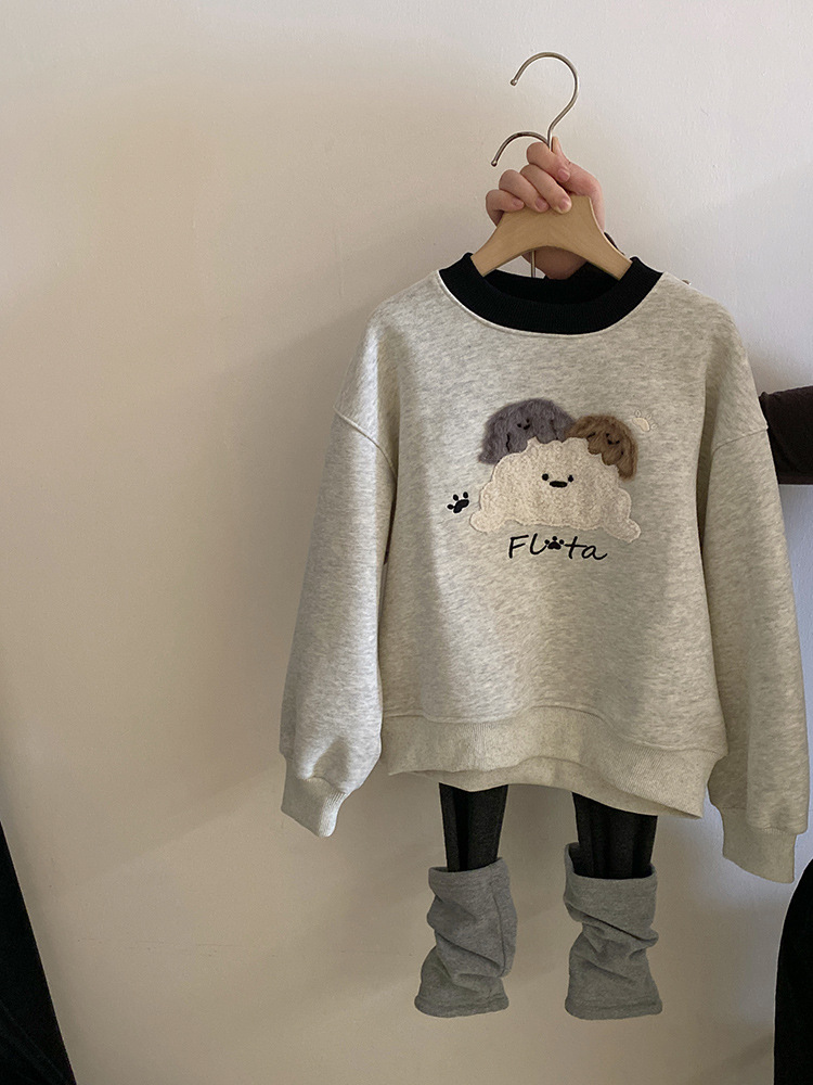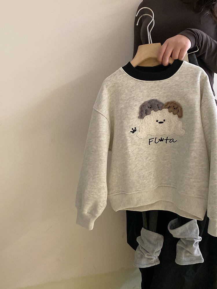 소녀 만화 강아지 자수 편지 기모 조끼 2024 가을과 겨울 새로운 바느질 레깅스 서양식 세트 조수스토어 가기