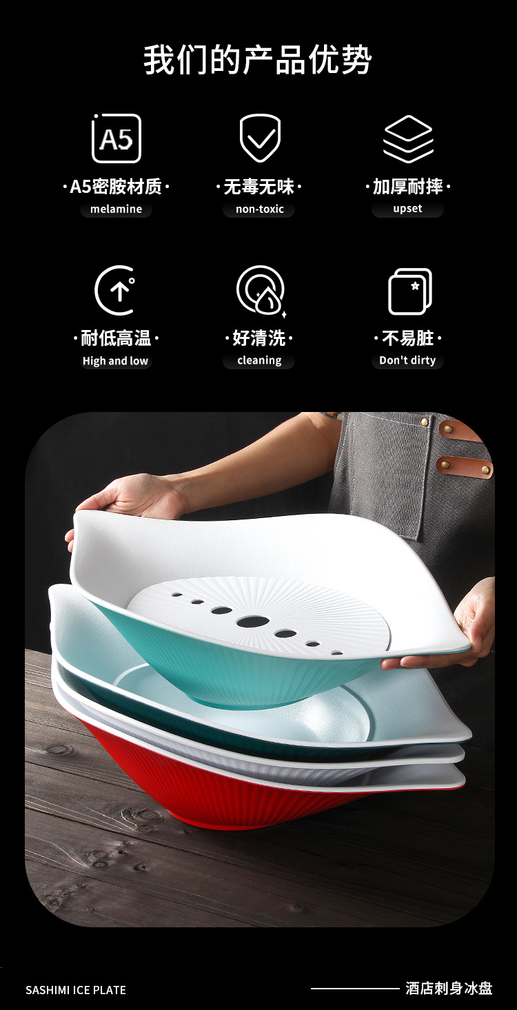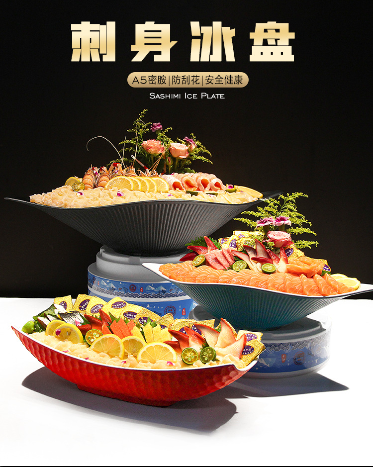 멜라민 생선회 스페셜 플레이트 상업용 자세 플레이트 아이스 플레이트 지방 쇠고기 생선 원판 장식 해산물 연어 큰판