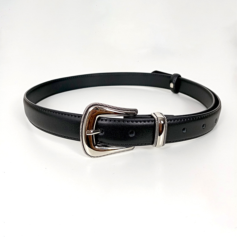 스타 같은 블랙 벨트 여성의 정품 가죽 하이 엔드 실버 버클 카우 히데 벨트 올 매치 가을과 겨울 청바지 벨트