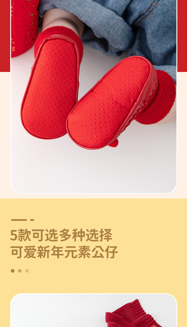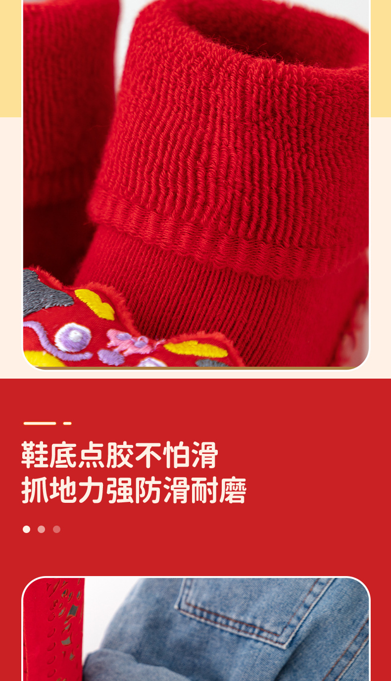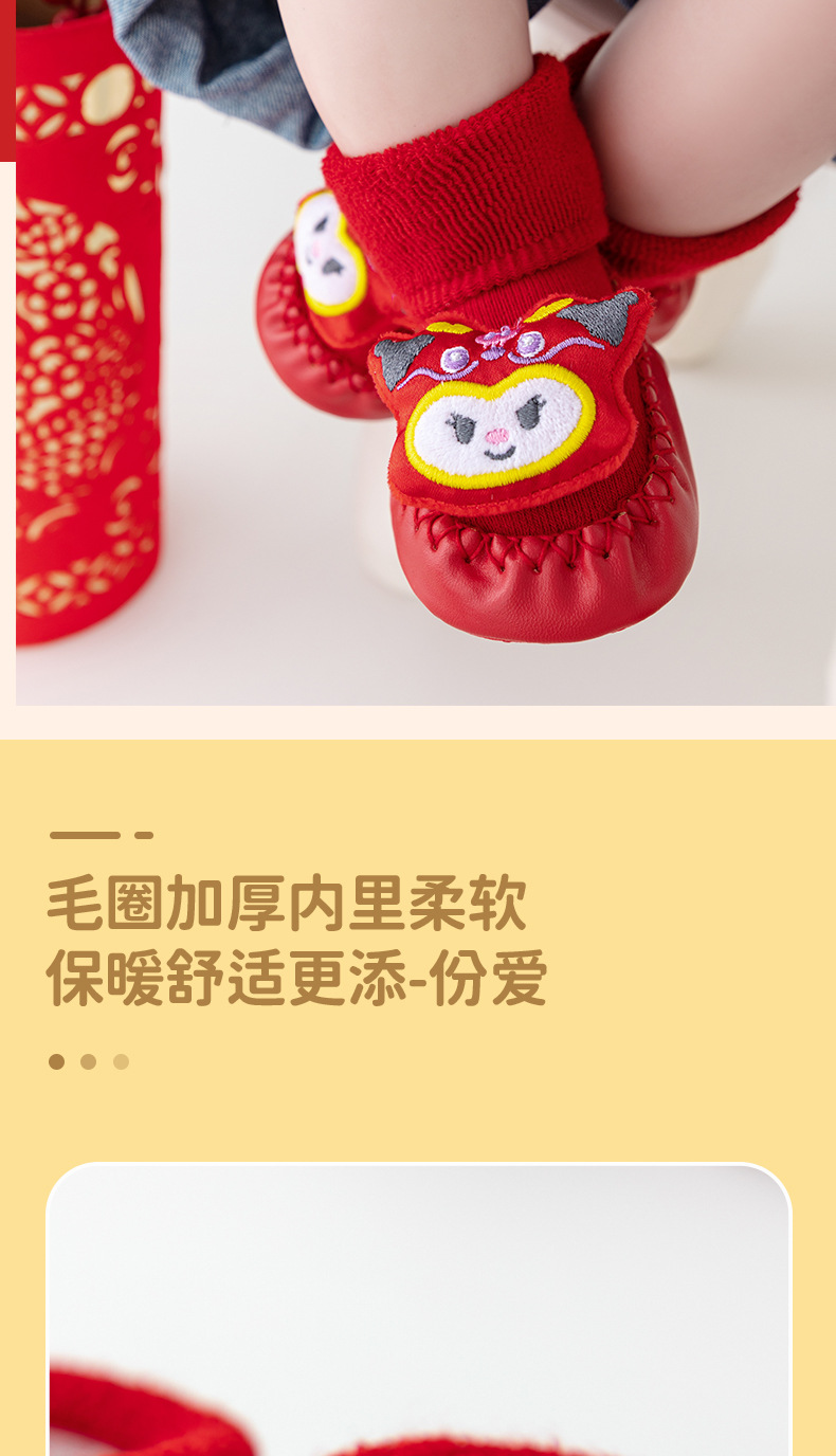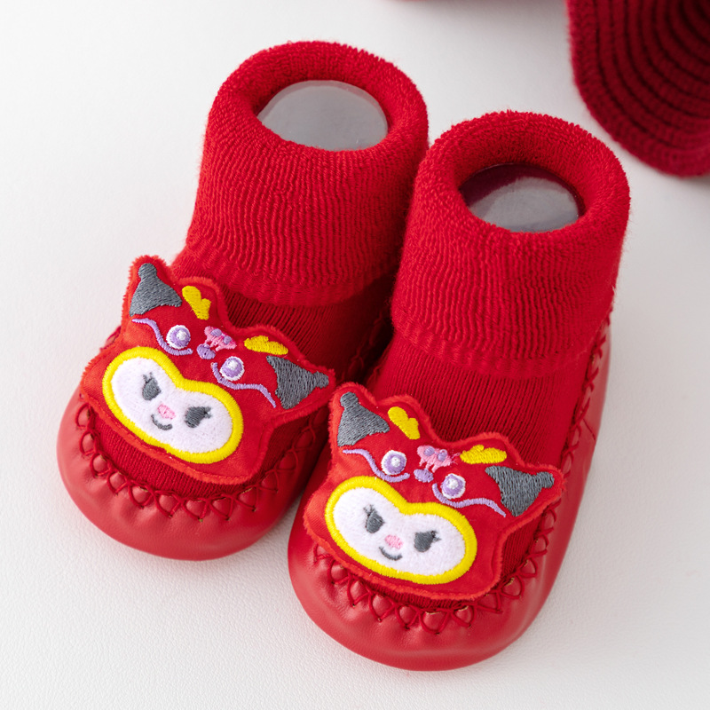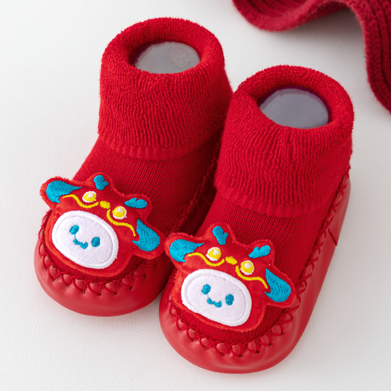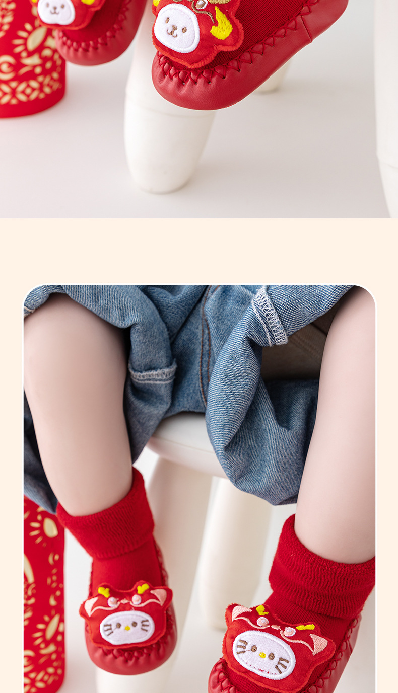 새해 아기 바닥 양말 큰 붉은 축제 아기 양말 신발 가을과 겨울 미끄럼 방지 어린이 유아 신발 양말