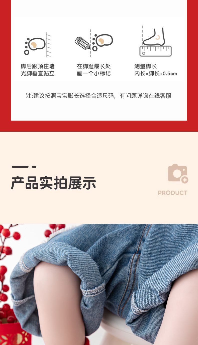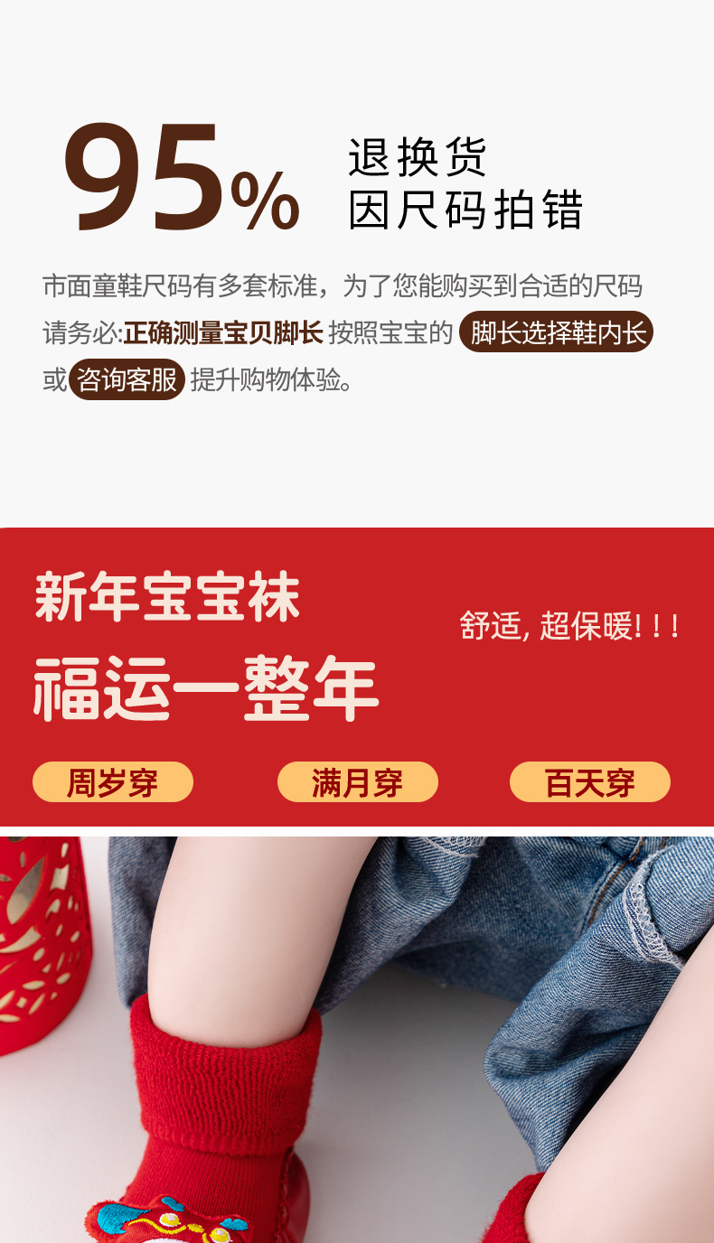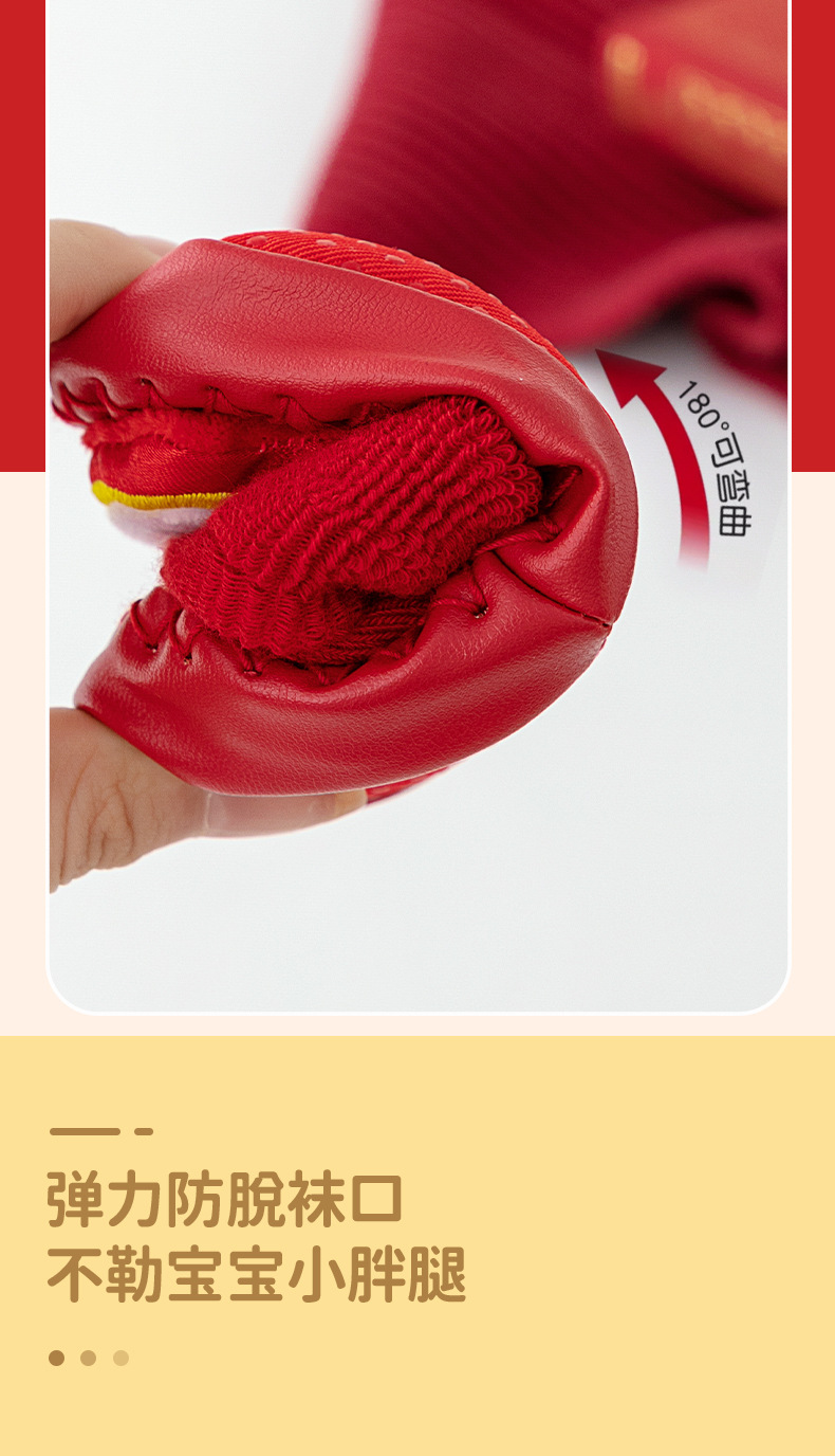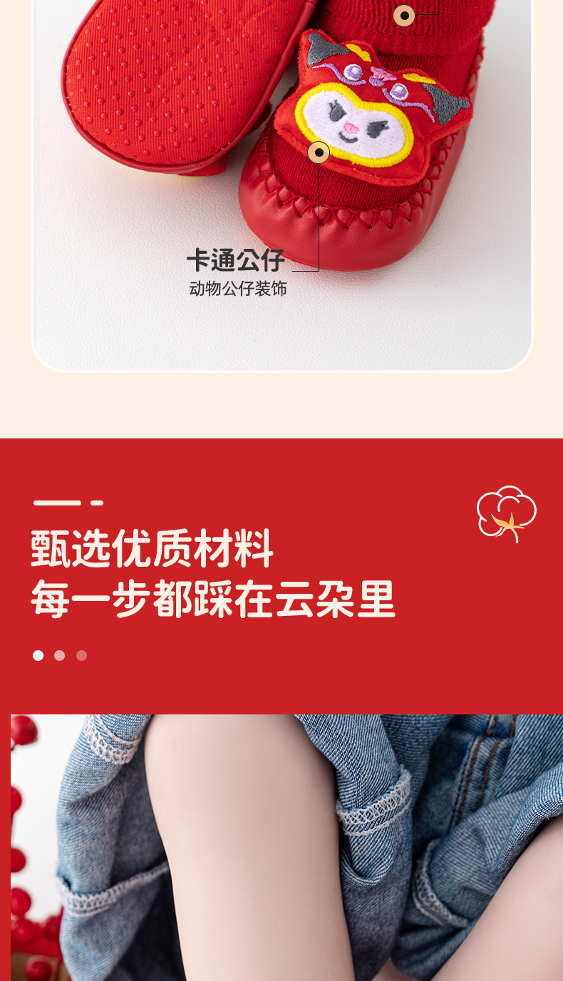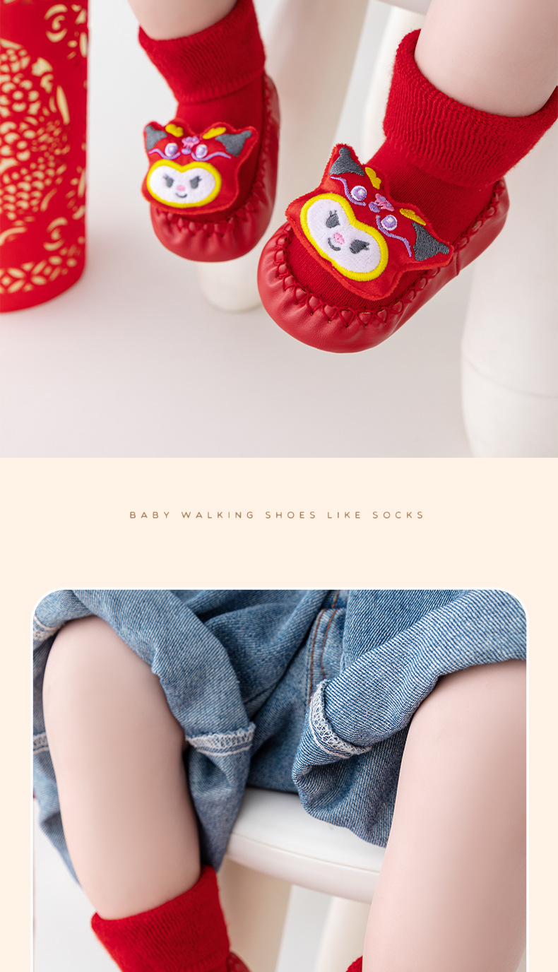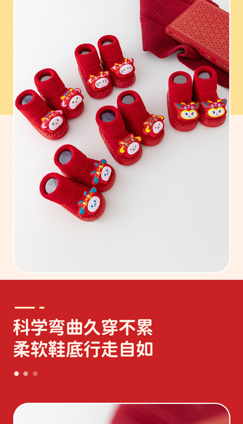 새해 아기 바닥 양말 큰 붉은 축제 아기 양말 신발 가을과 겨울 미끄럼 방지 어린이 유아 신발 양말