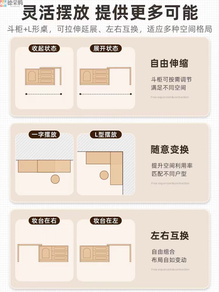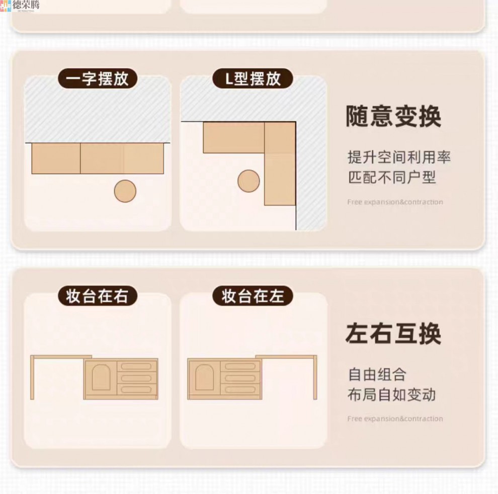 • 서랍 3개 1개, 화장대 120개