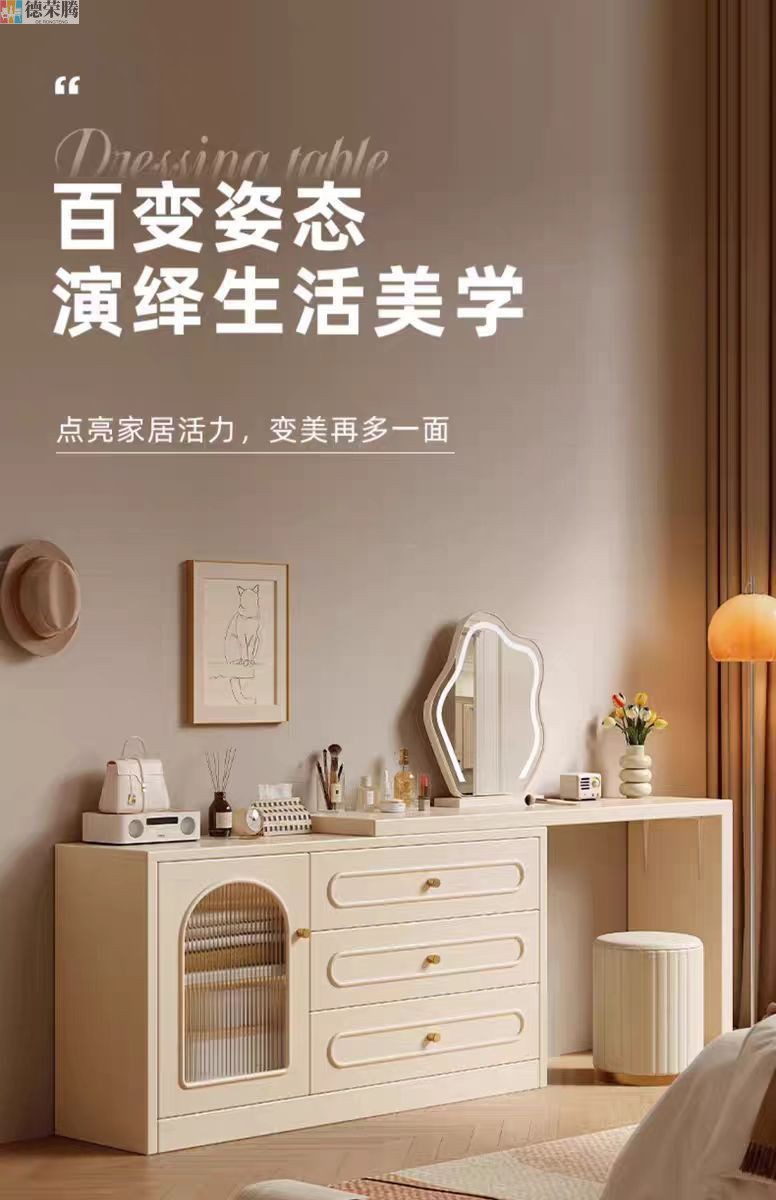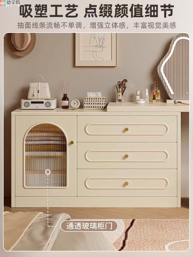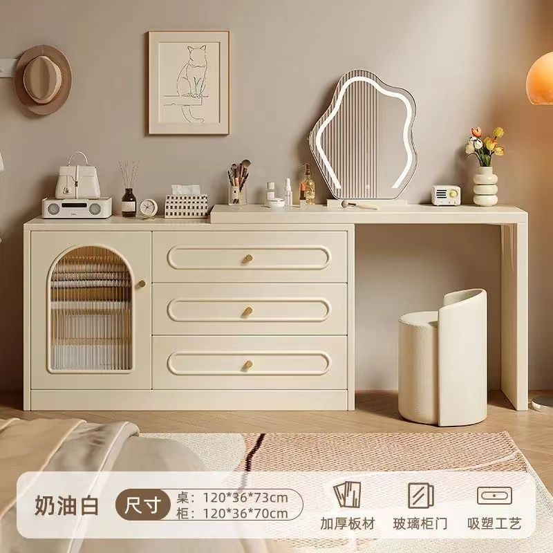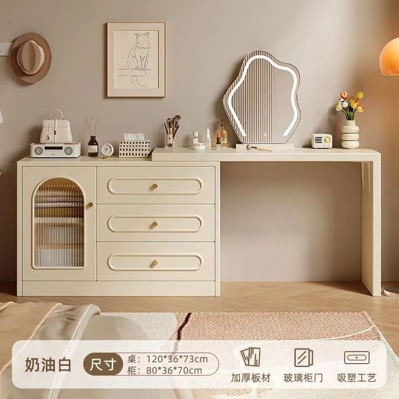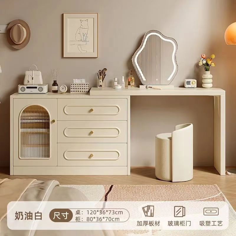 2024 새로운 크림 스타일 메이크업 테이블 침실 간단한 현대 침대 옆 테이블 드레싱 테이블 저장 캐비닛 통합 드레싱 테이블스토어 가기