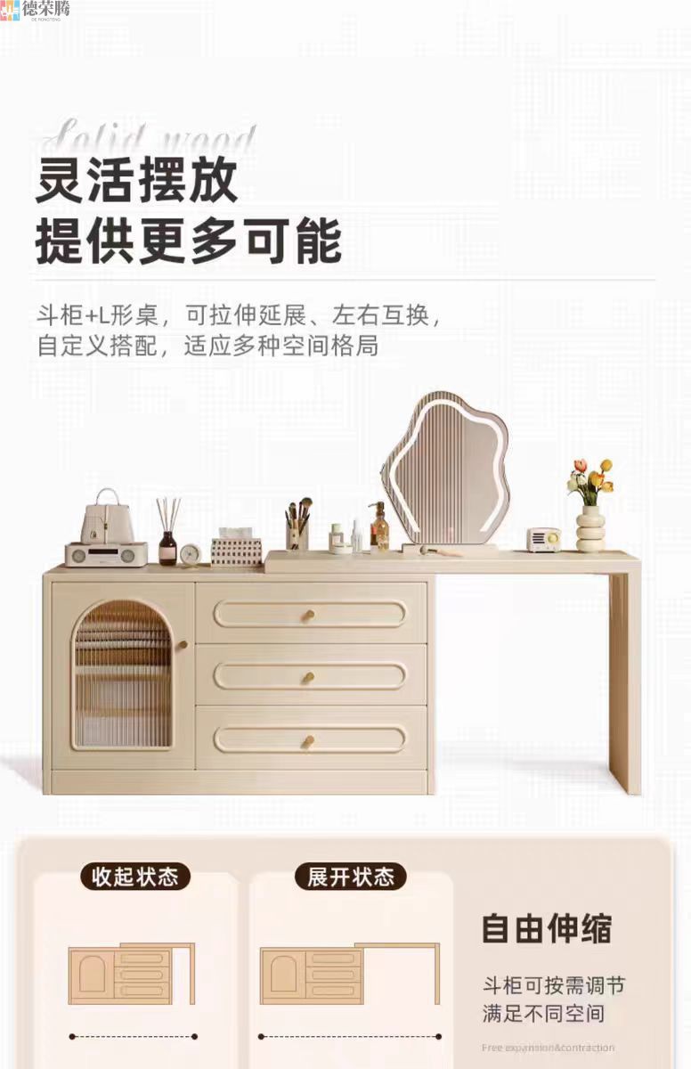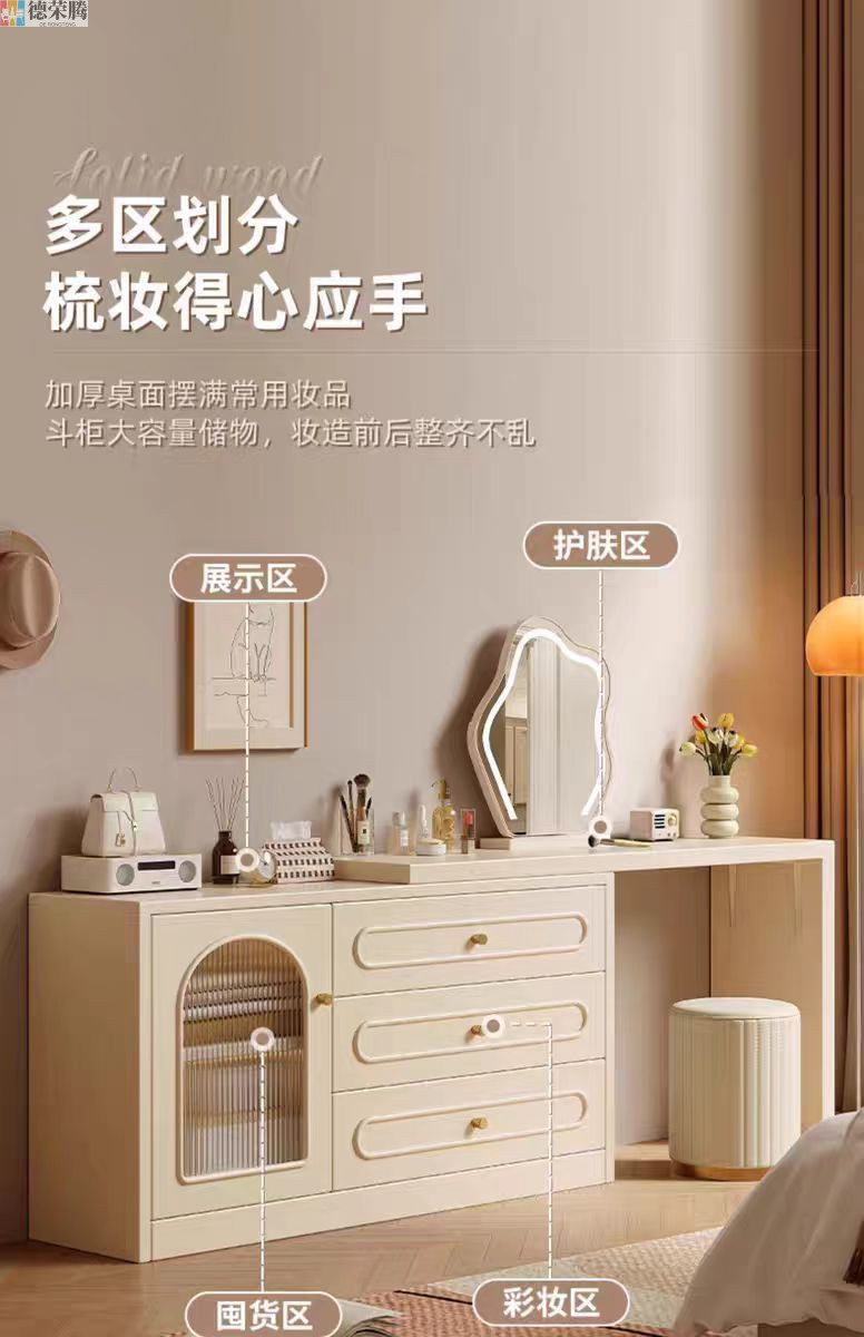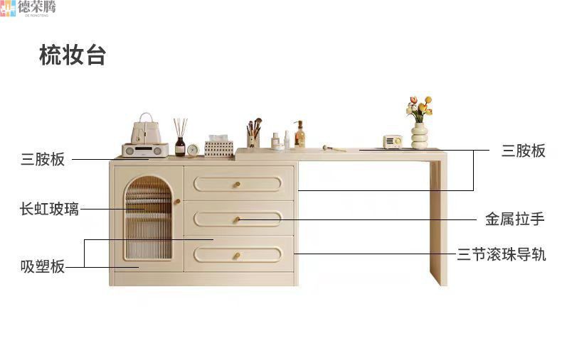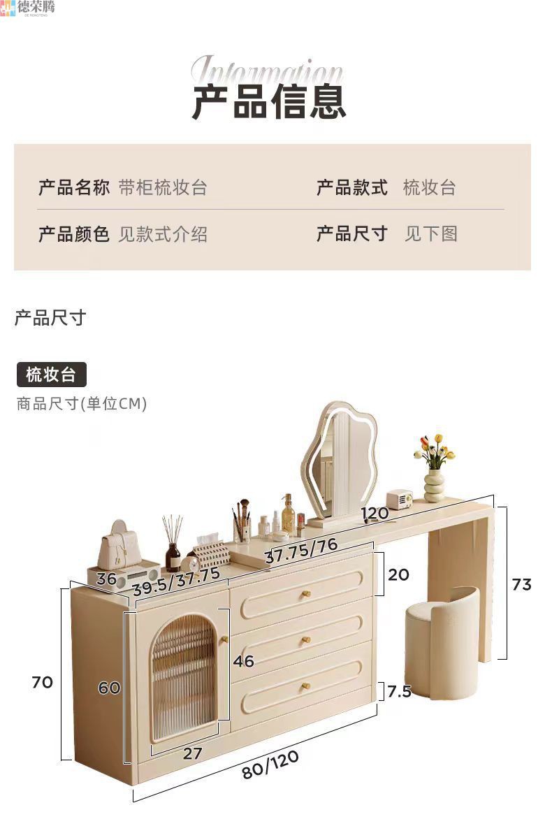 2024 새로운 크림 스타일 메이크업 테이블 침실 간단한 현대 침대 옆 테이블 드레싱 테이블 저장 캐비닛 통합 드레싱 테이블스토어 가기