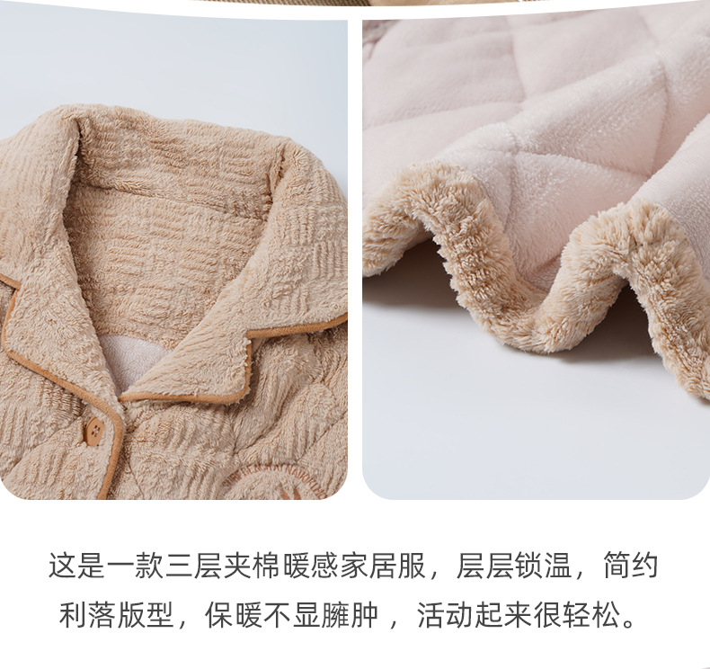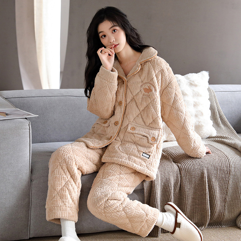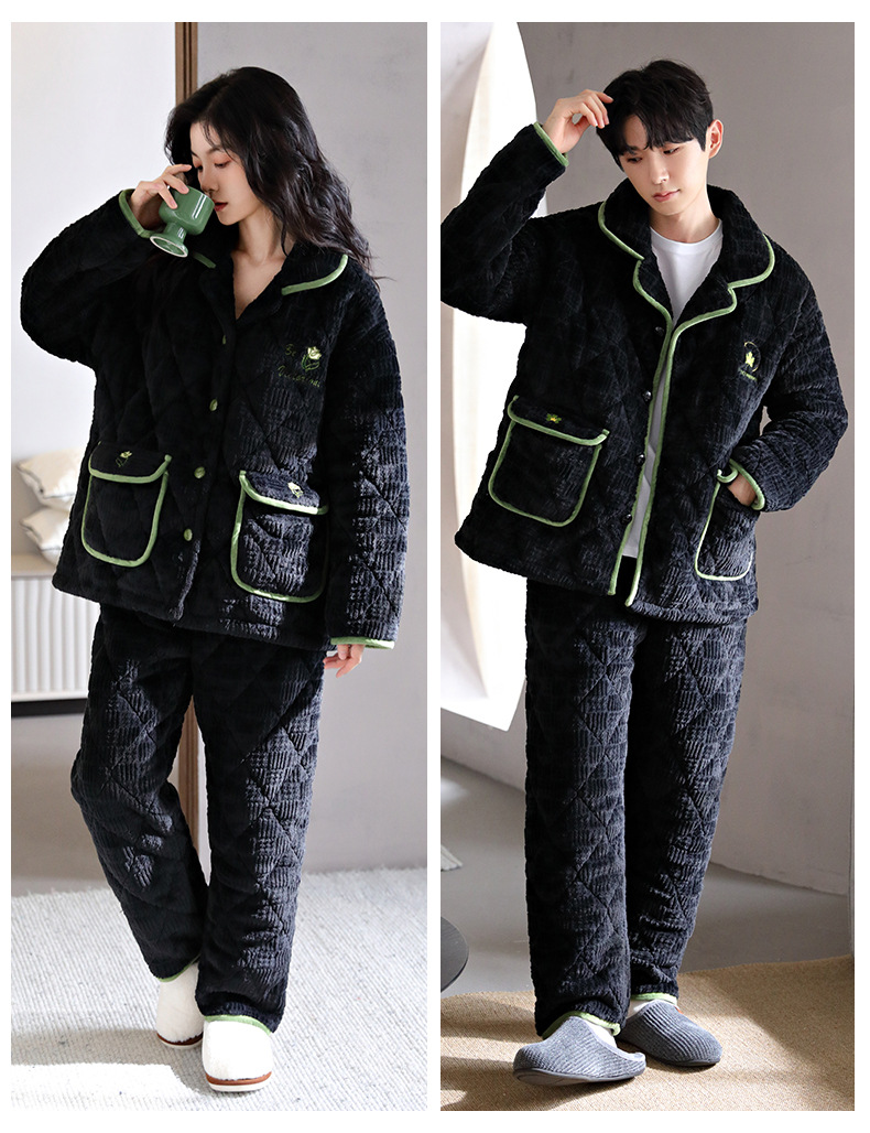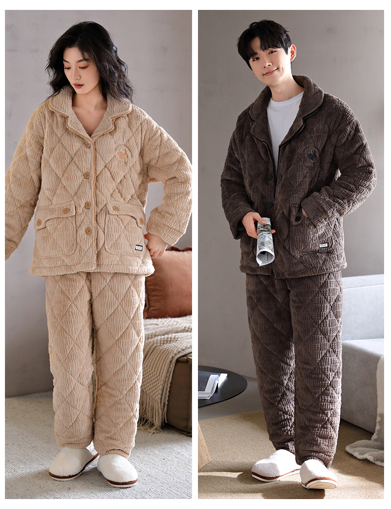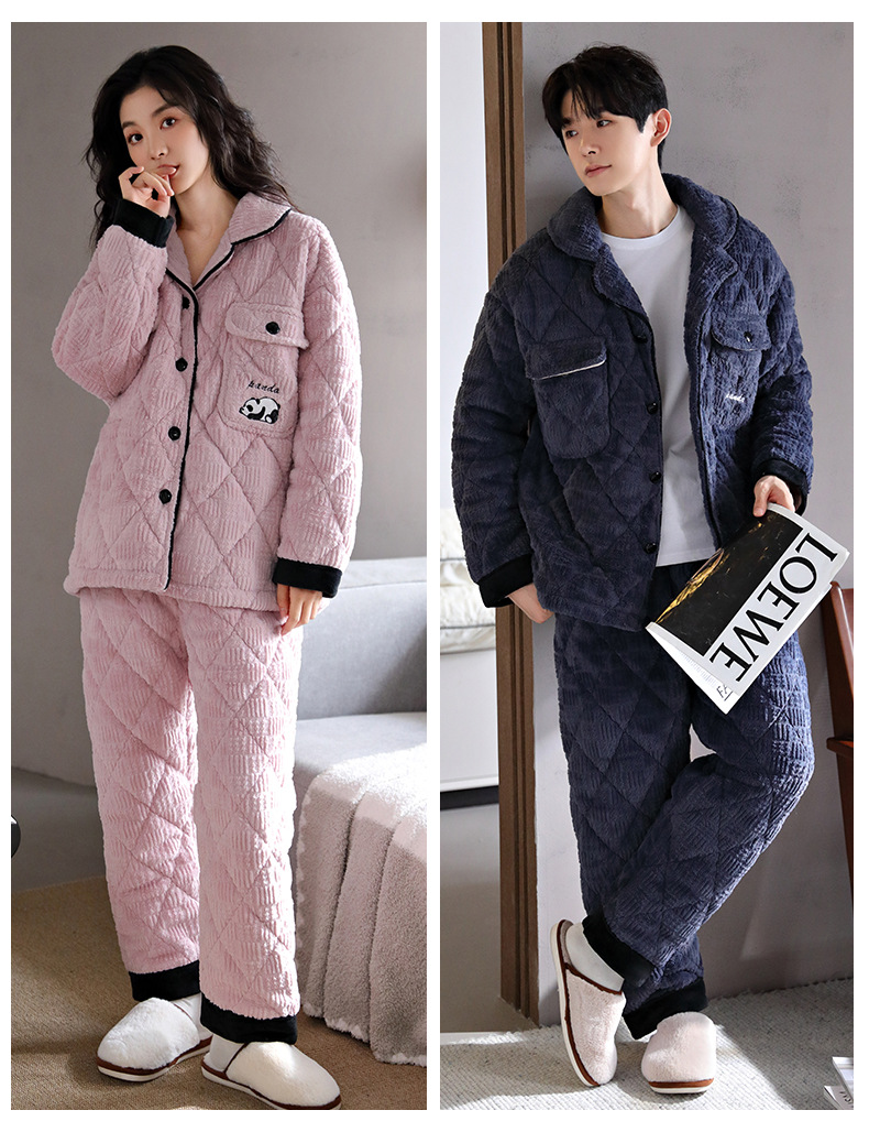 산호 양털 잠옷 여성의 겨울 3 층 퀼트 두꺼운 옷깃 세트 따뜻한 고급 남성 홈 옷스토어 가기