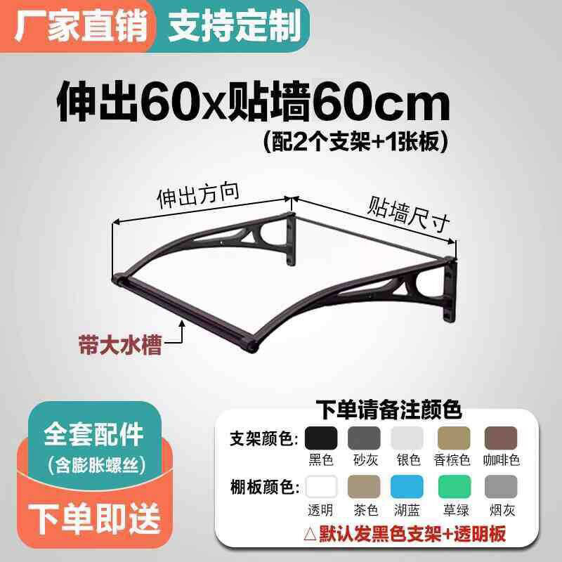 알루미늄 합금 캐노피 브래킷 대형 싱크대 곡선 창 발코니 내구성 보드 투명한 그늘 가정용 캐노피