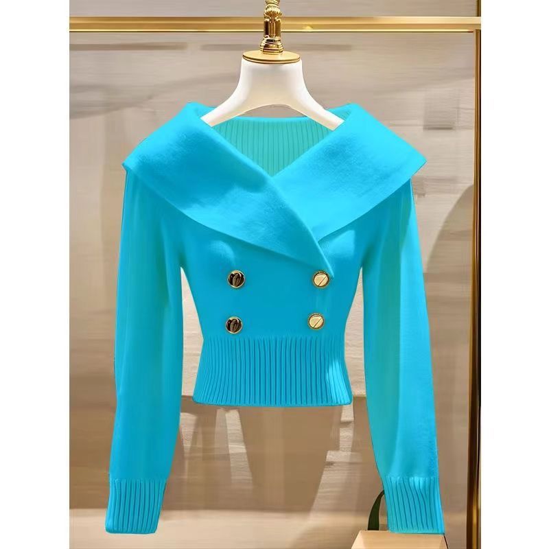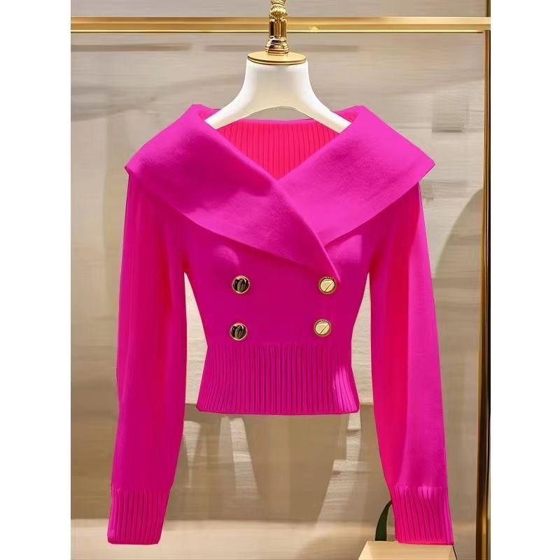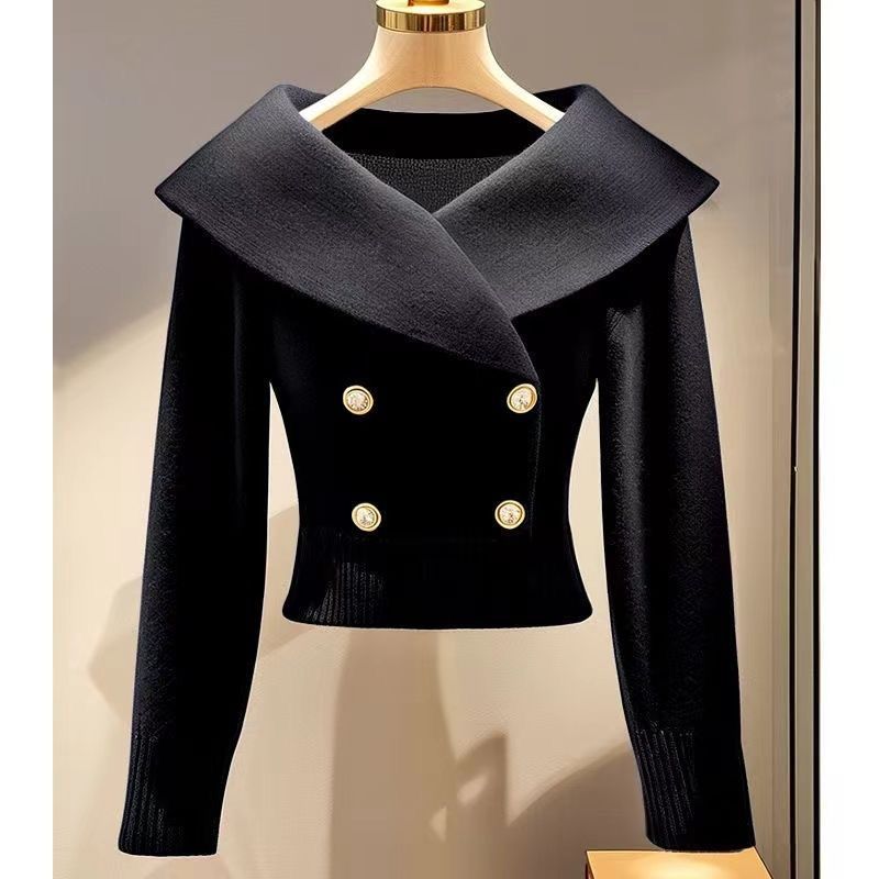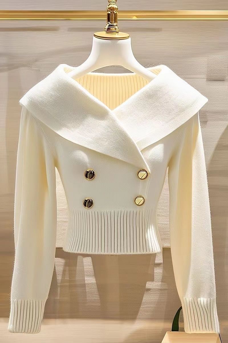 2025 가을 겨울 작은 향기로운 스타일 흰색 대형 옷깃 스웨터 여성 작은 세련된 스타일 허리 슬리밍 스웨터
