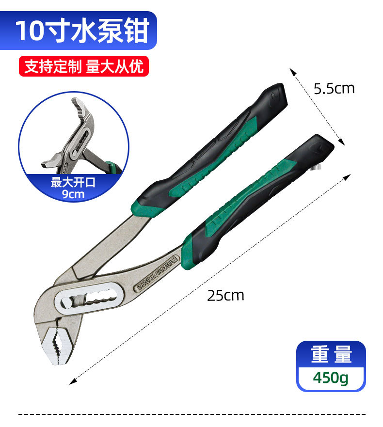 • 360, 10inch 세트 생크 워터 펌프 플라이어(녹색), 0.45kg
