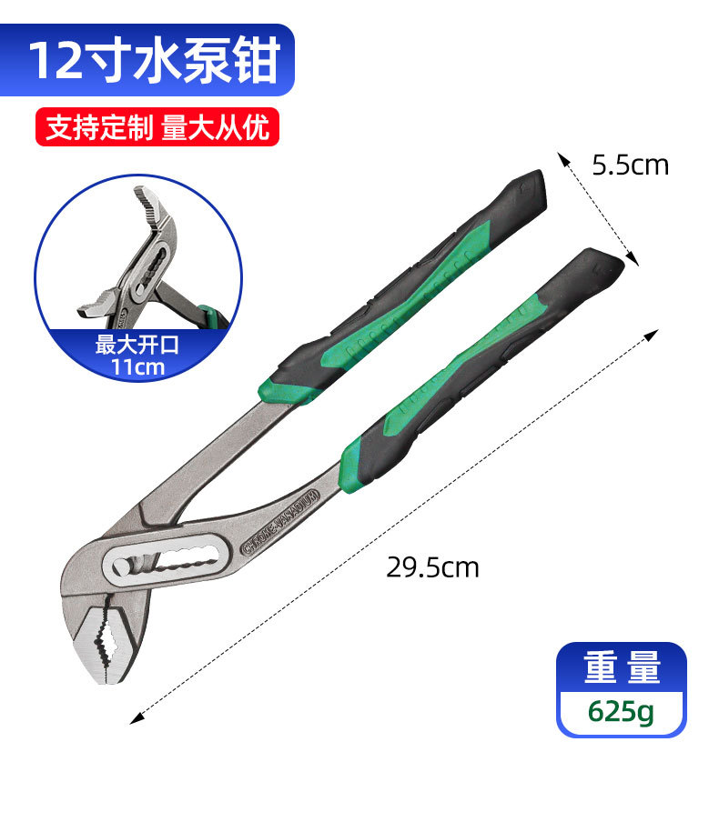 • 361, 12inch 세트 생크 워터 펌프 플라이어(녹색), 0.63kg