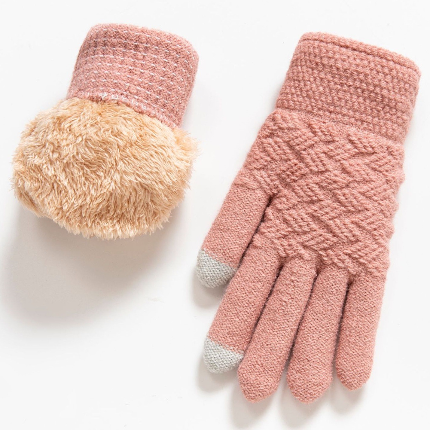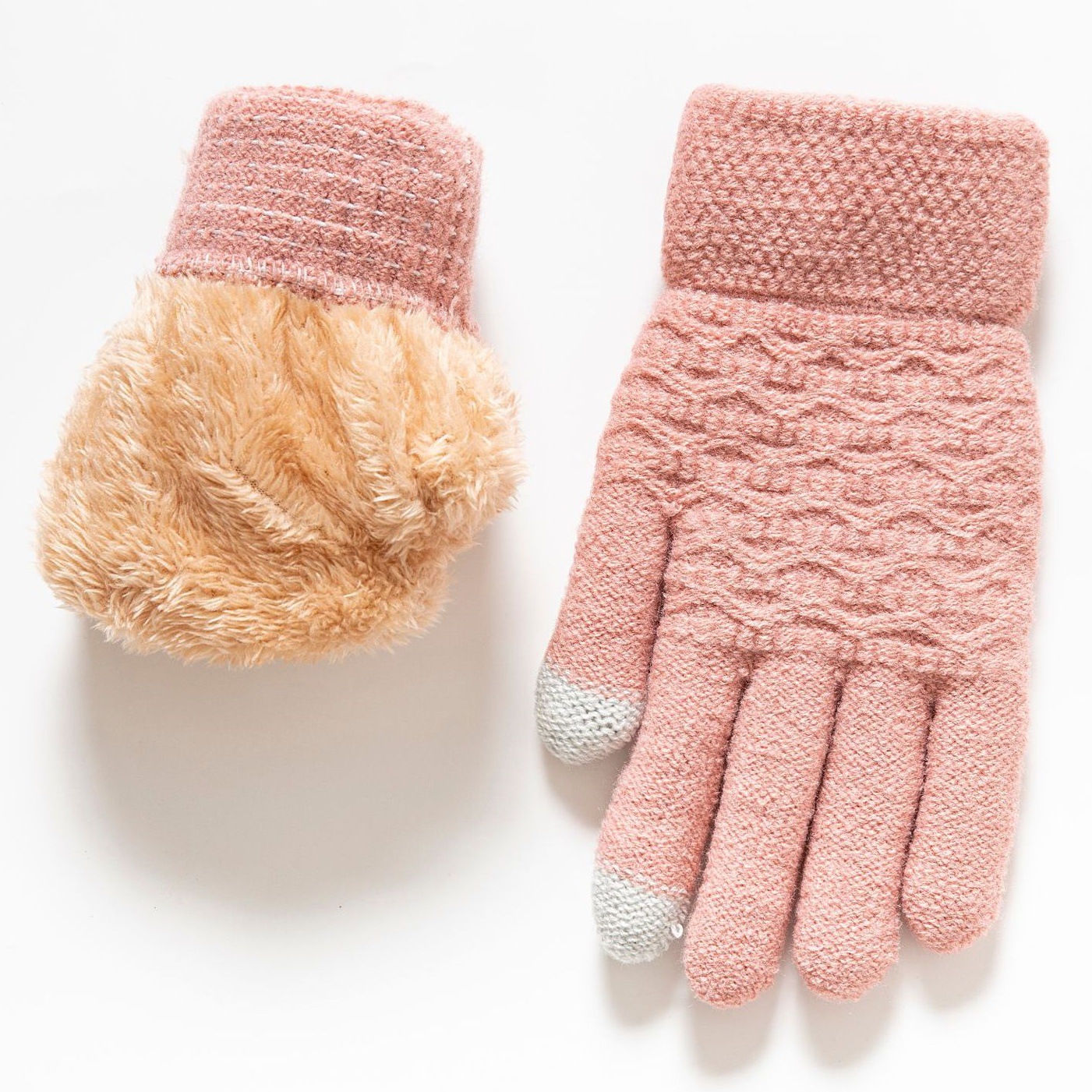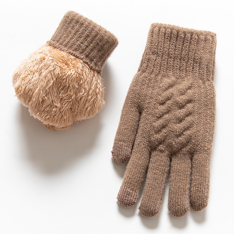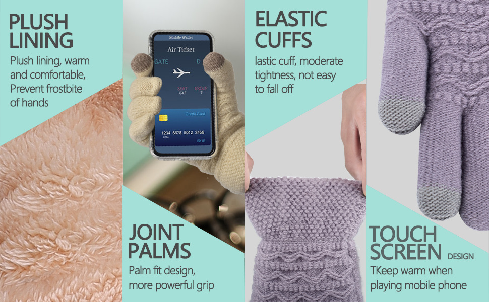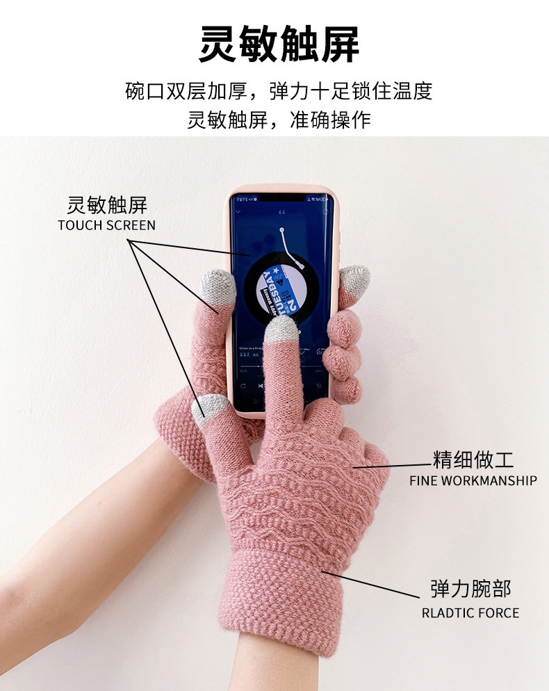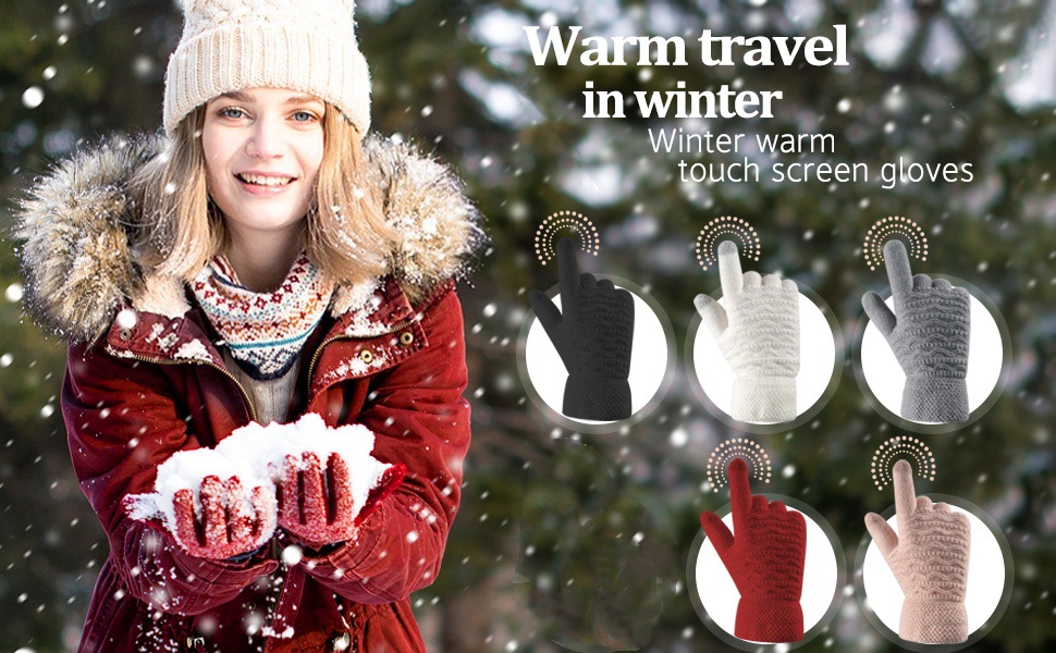 가족과 친구를 위해 걷는 여자 겨울 따뜻한 터치 스크린 장갑 니트 봉제 라이닝 추운 날씨 개스토어 가기