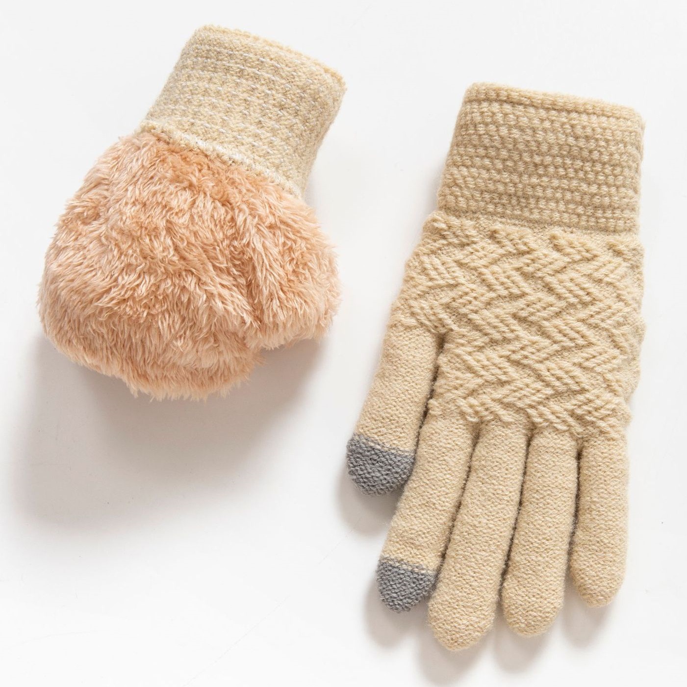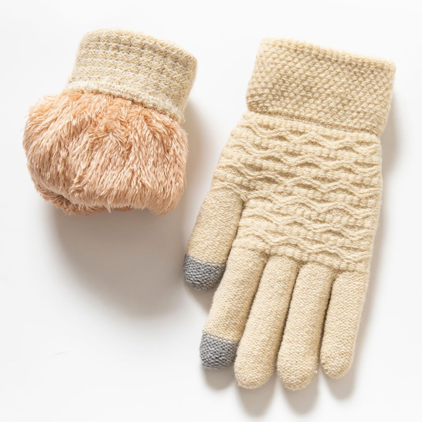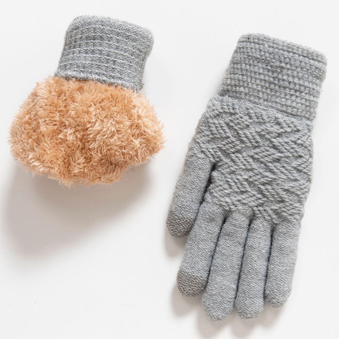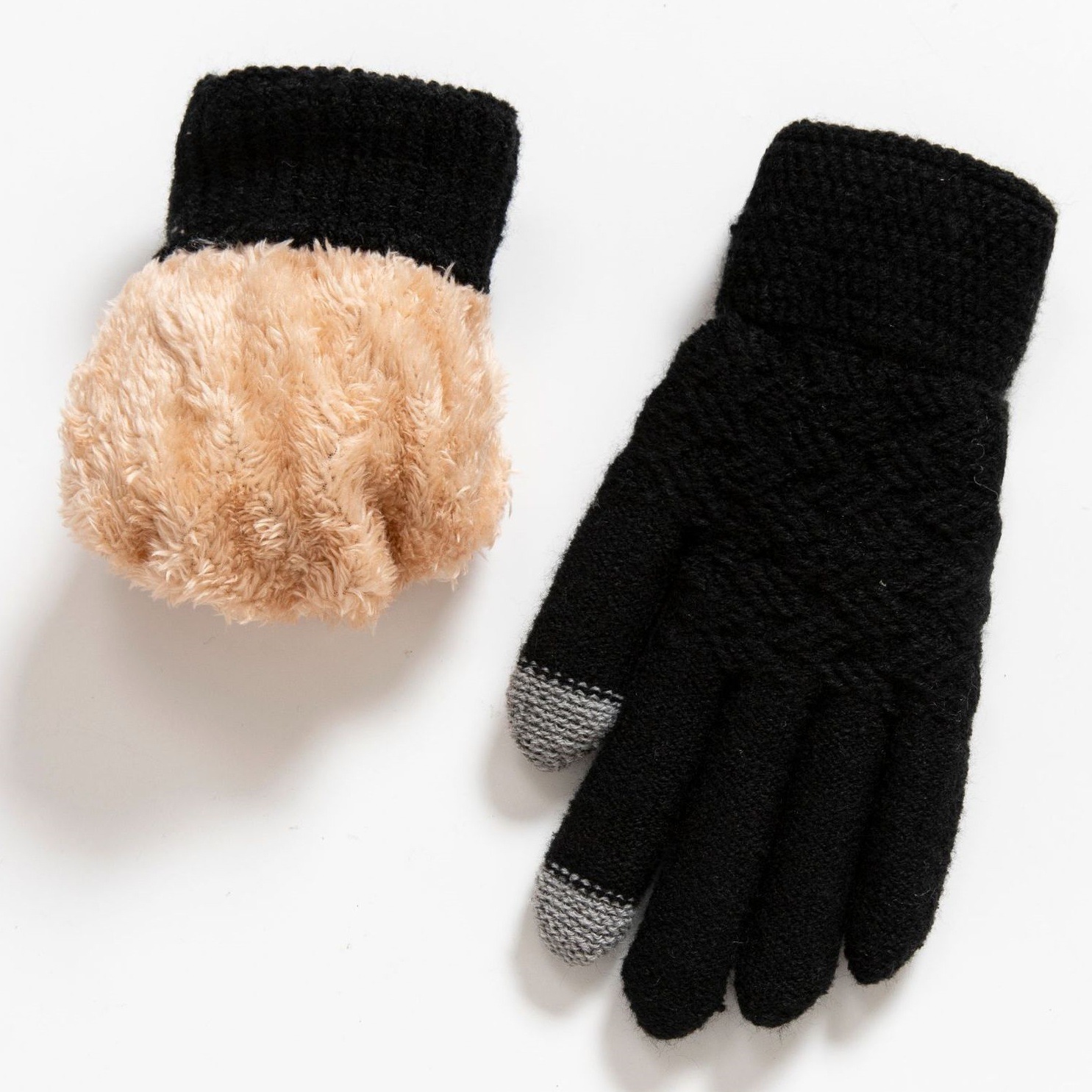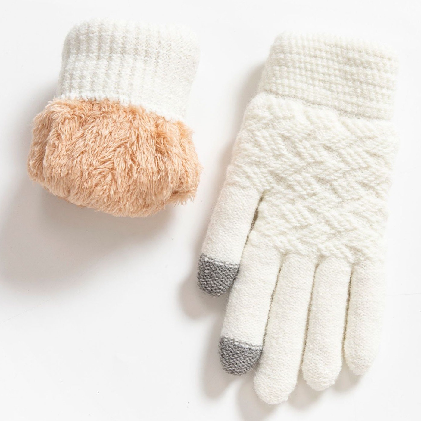 가족과 친구를 위해 걷는 여자 겨울 따뜻한 터치 스크린 장갑 니트 봉제 라이닝 추운 날씨 개스토어 가기