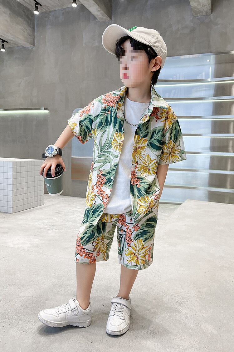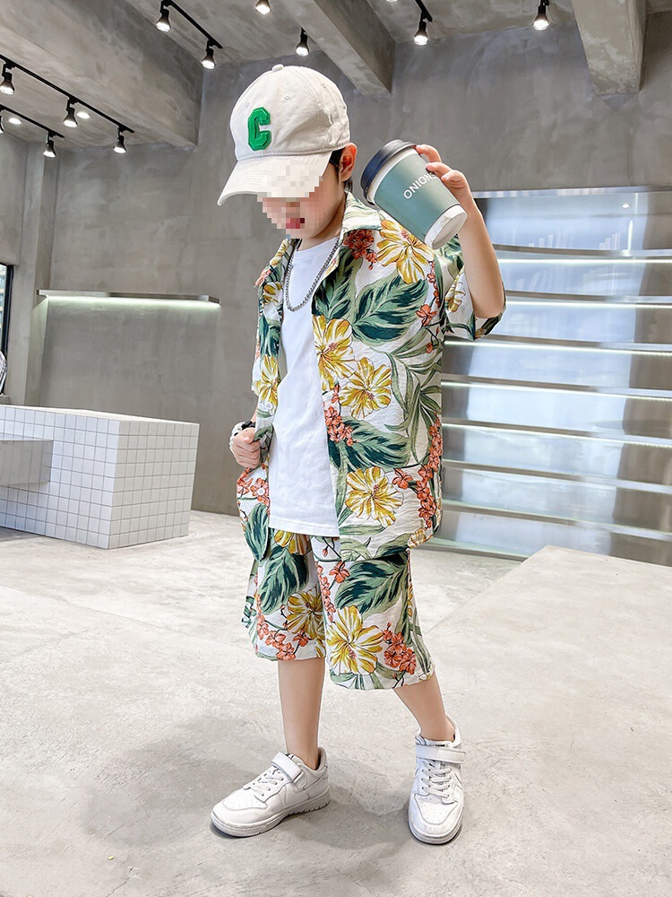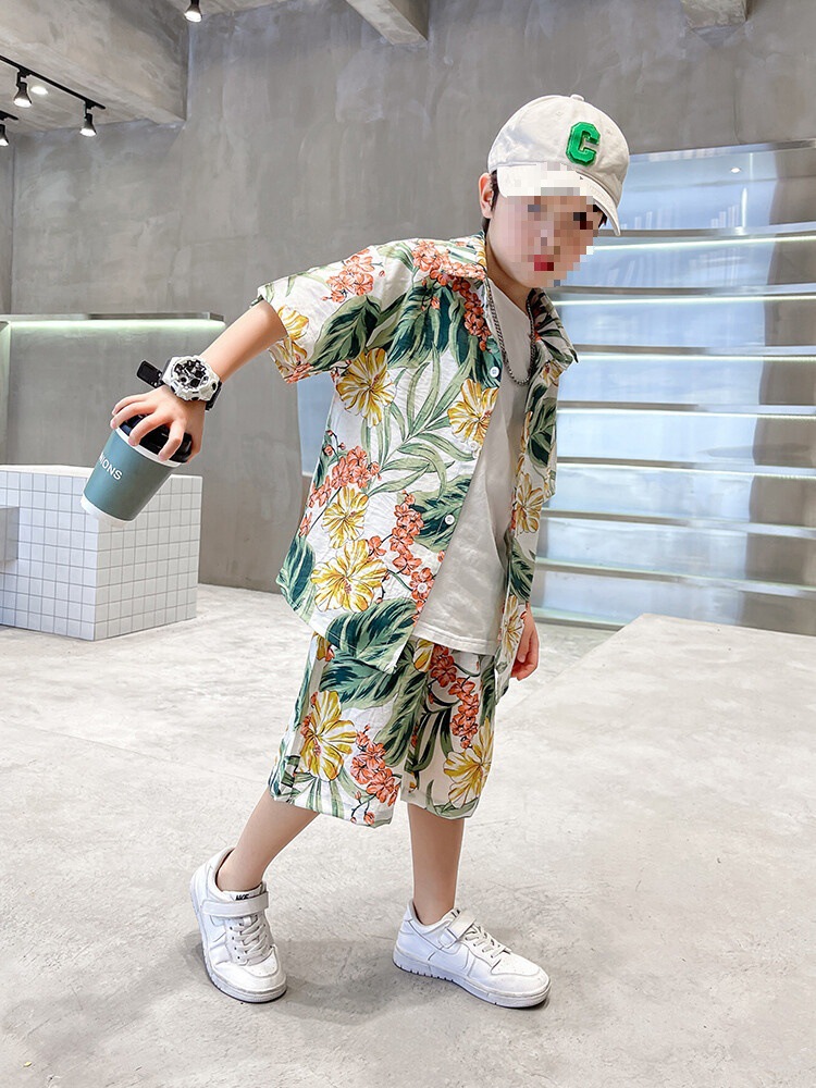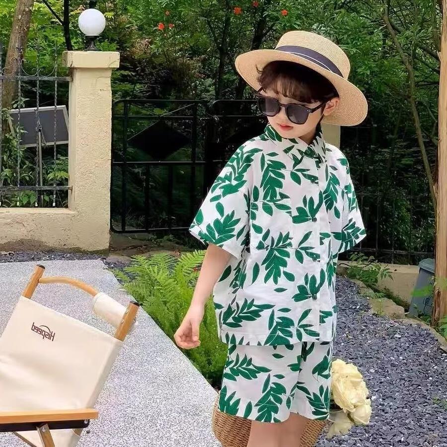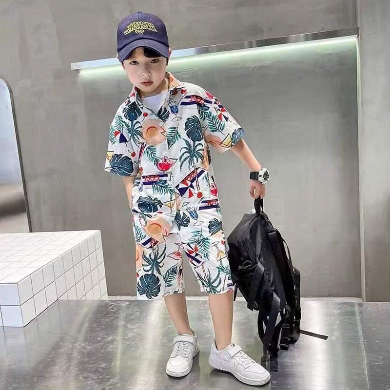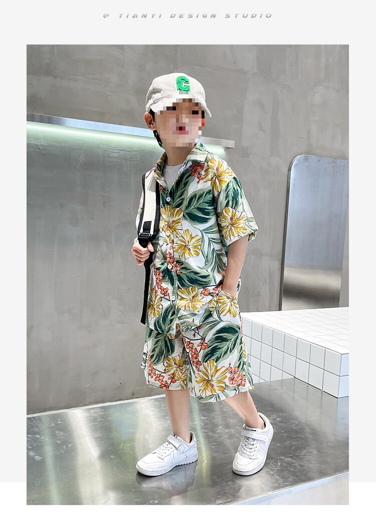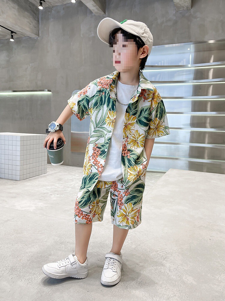 소년 세트 하와이 꽃 셔츠 비치 휴가 외국식 아기 세트 플러튼 잘 생긴 셔츠 어린이 싼야 섬 옷스토어 가기