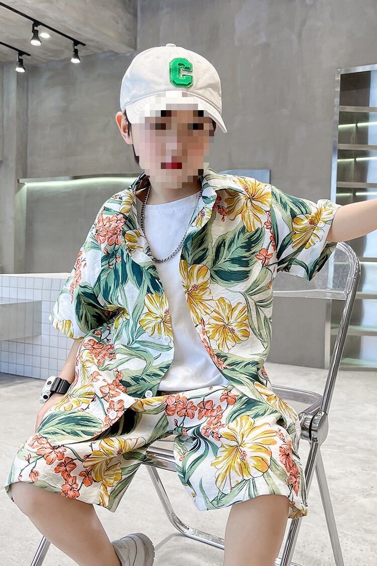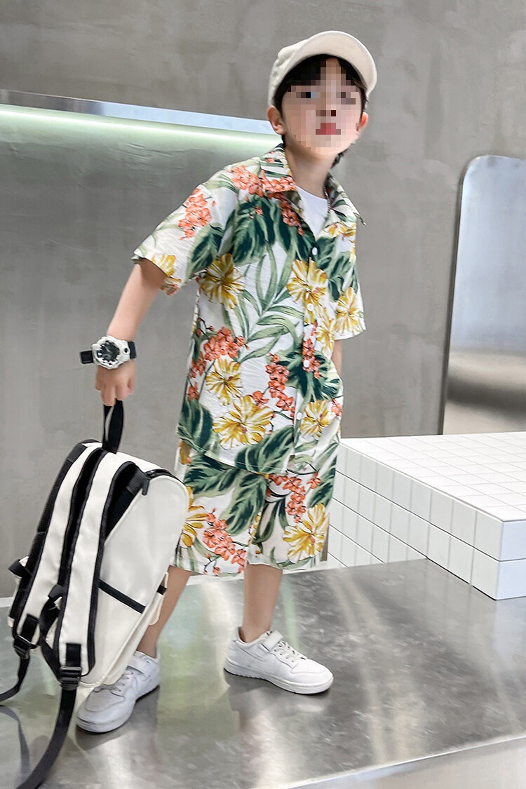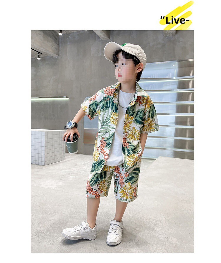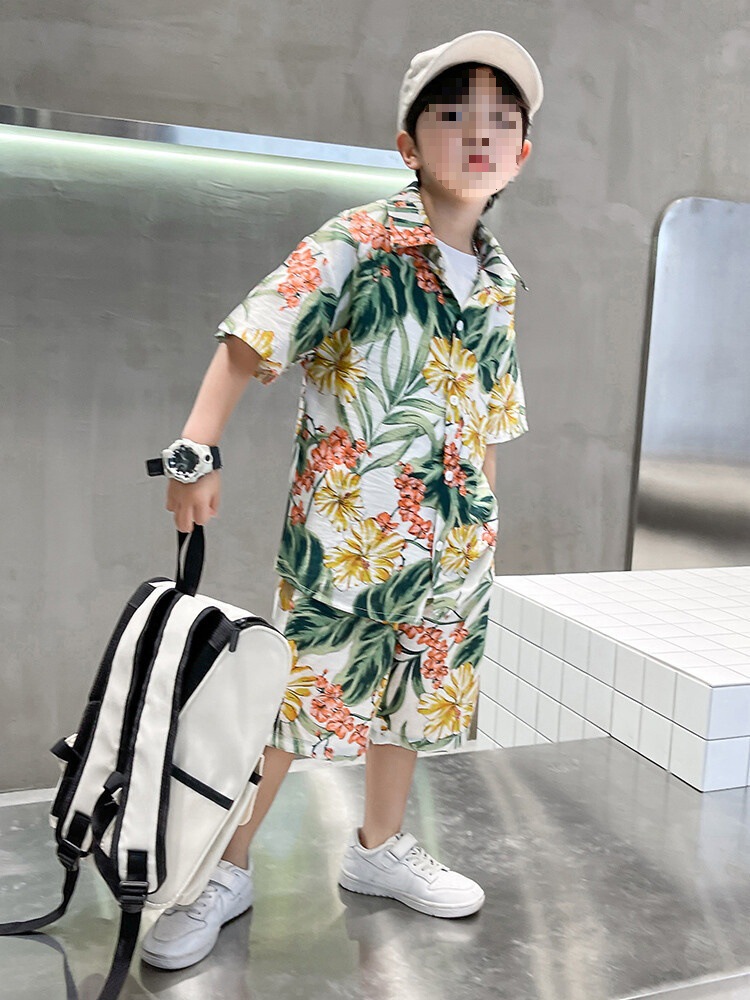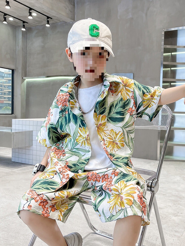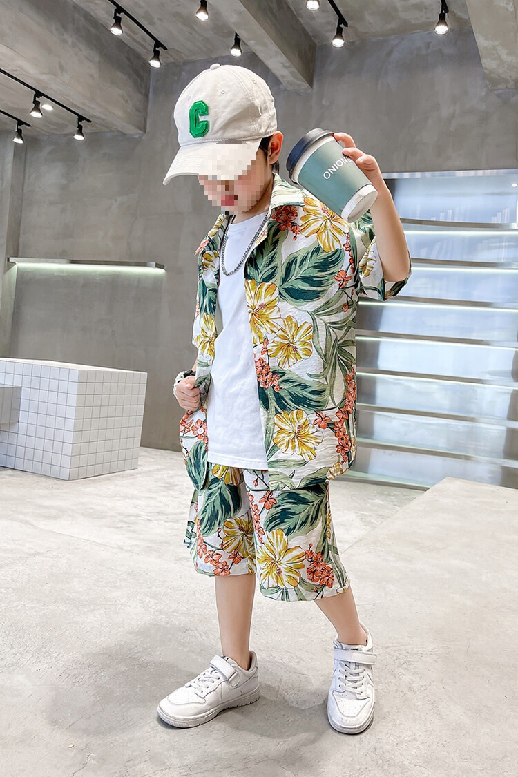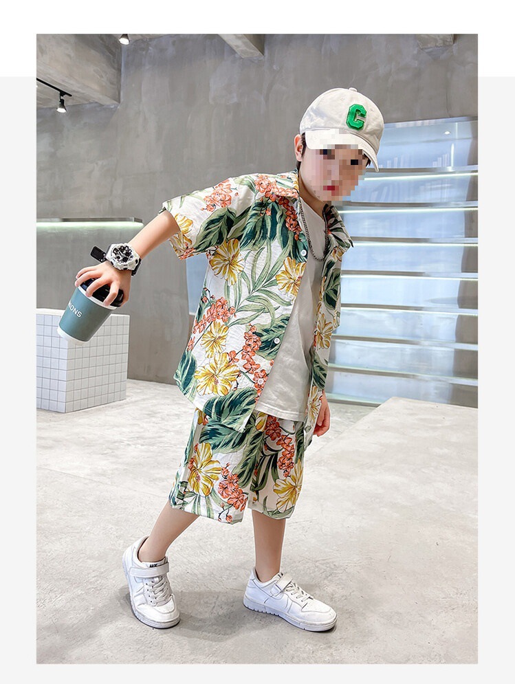 소년 세트 하와이 꽃 셔츠 비치 휴가 외국식 아기 세트 플러튼 잘 생긴 셔츠 어린이 싼야 섬 옷스토어 가기