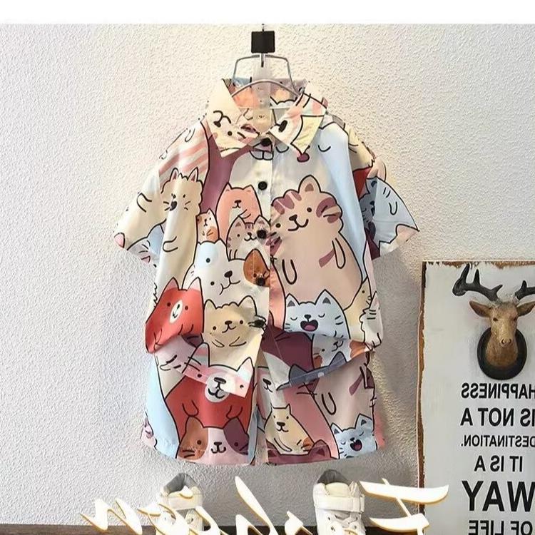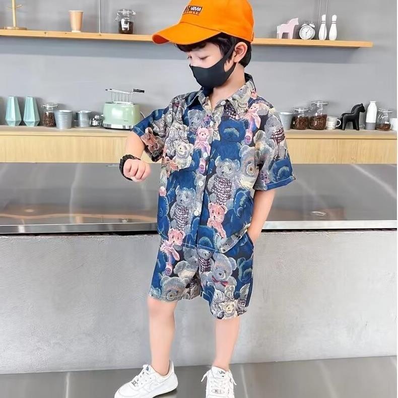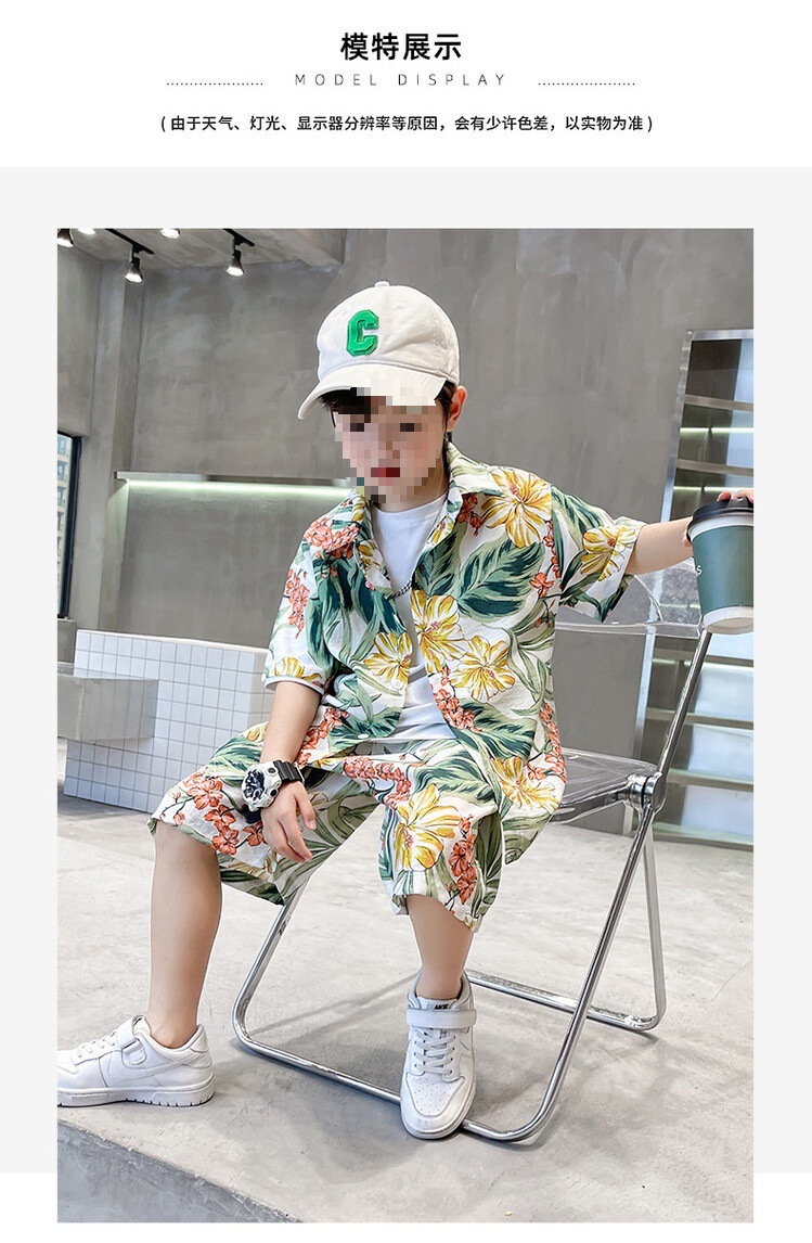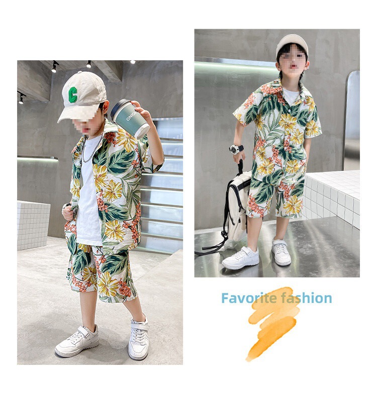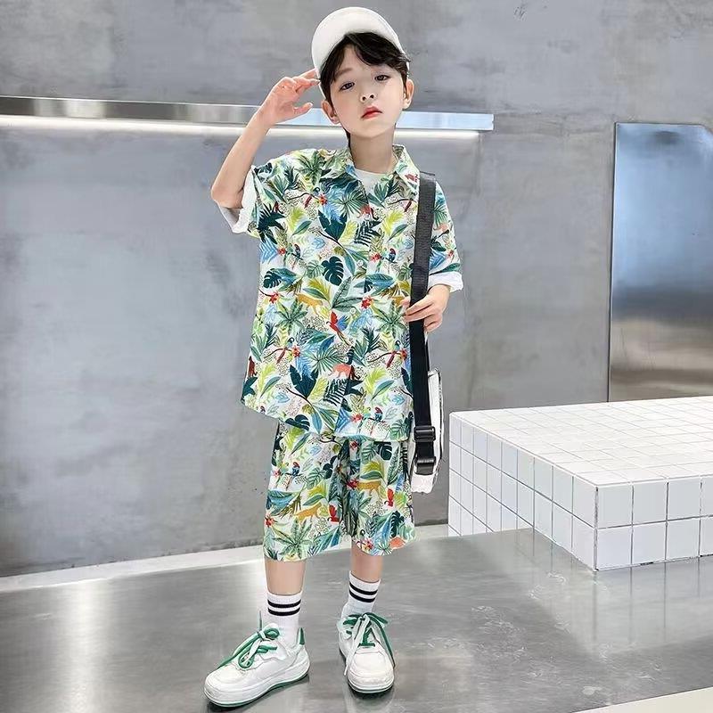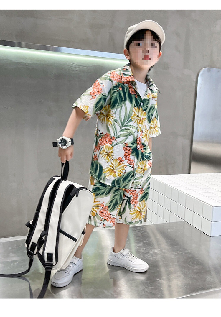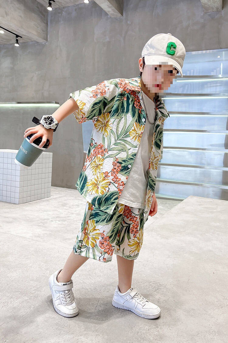소년 세트 하와이 꽃 셔츠 비치 휴가 외국식 아기 세트 플러튼 잘 생긴 셔츠 어린이 싼야 섬 옷스토어 가기