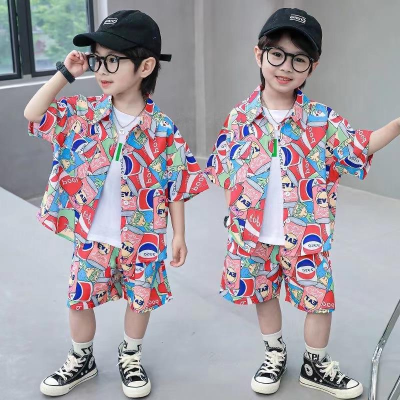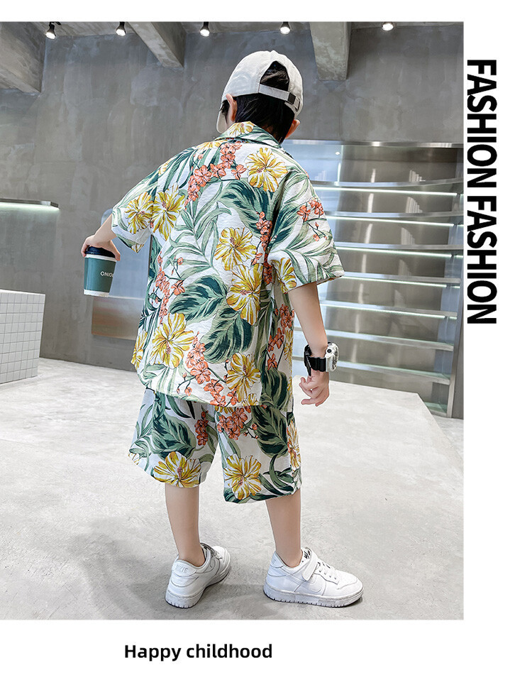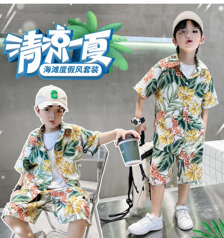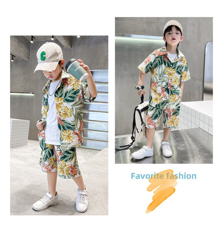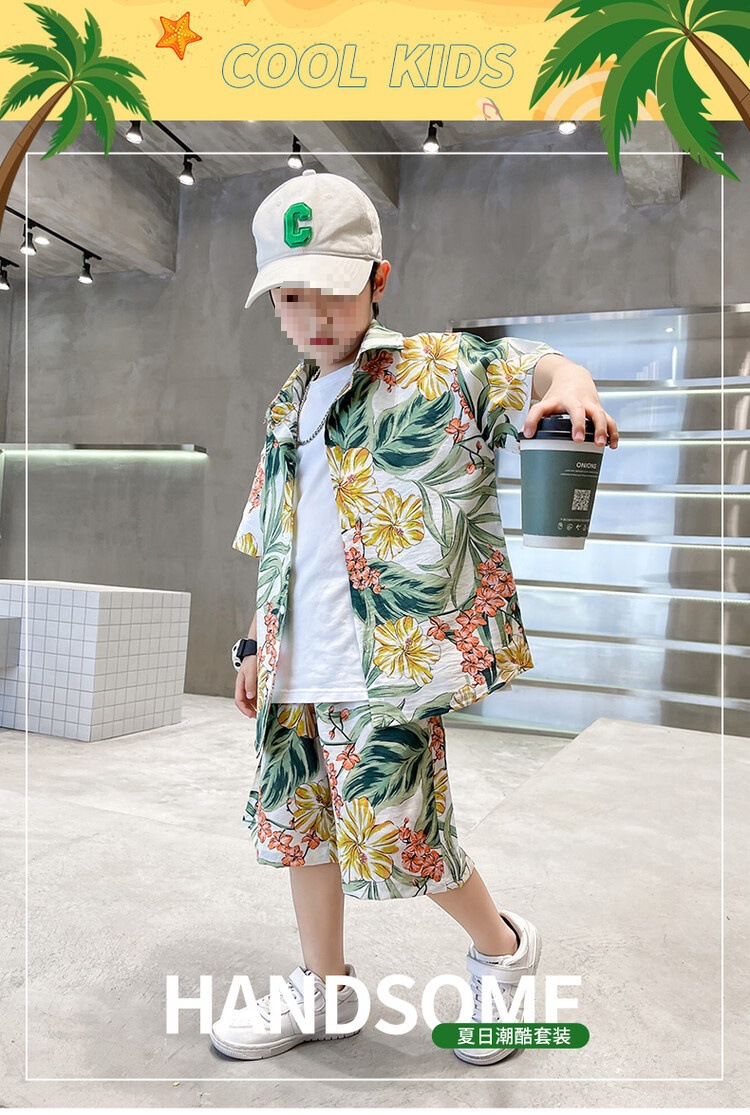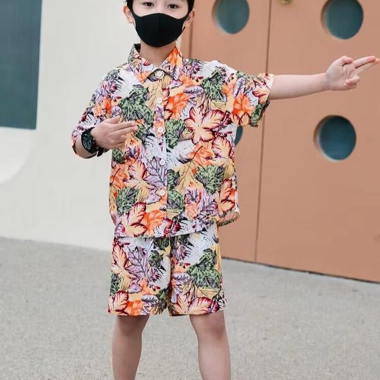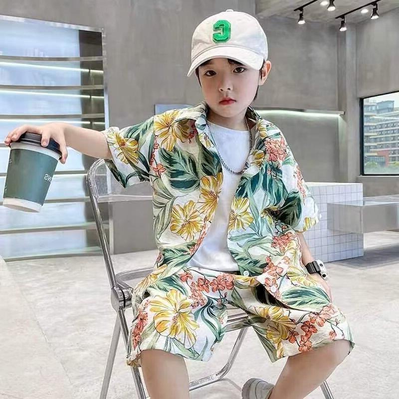 소년 세트 하와이 꽃 셔츠 비치 휴가 외국식 아기 세트 플러튼 잘 생긴 셔츠 어린이 싼야 섬 옷