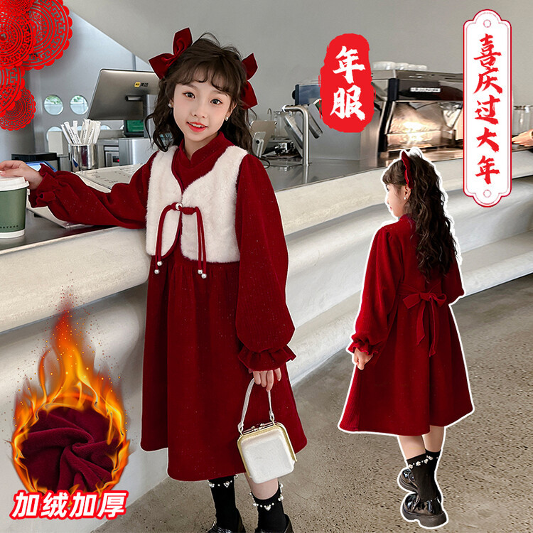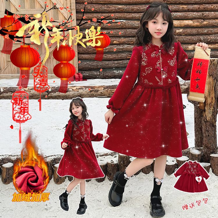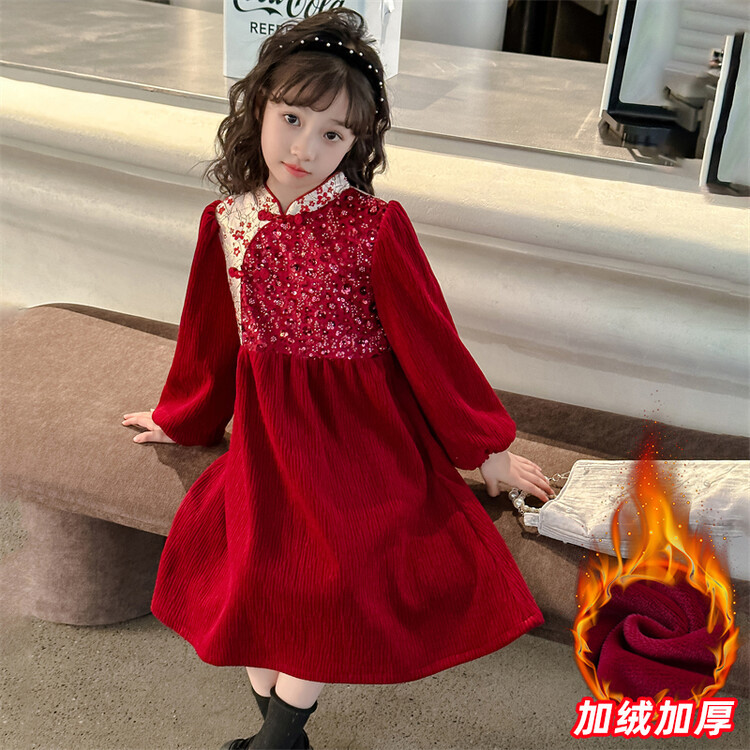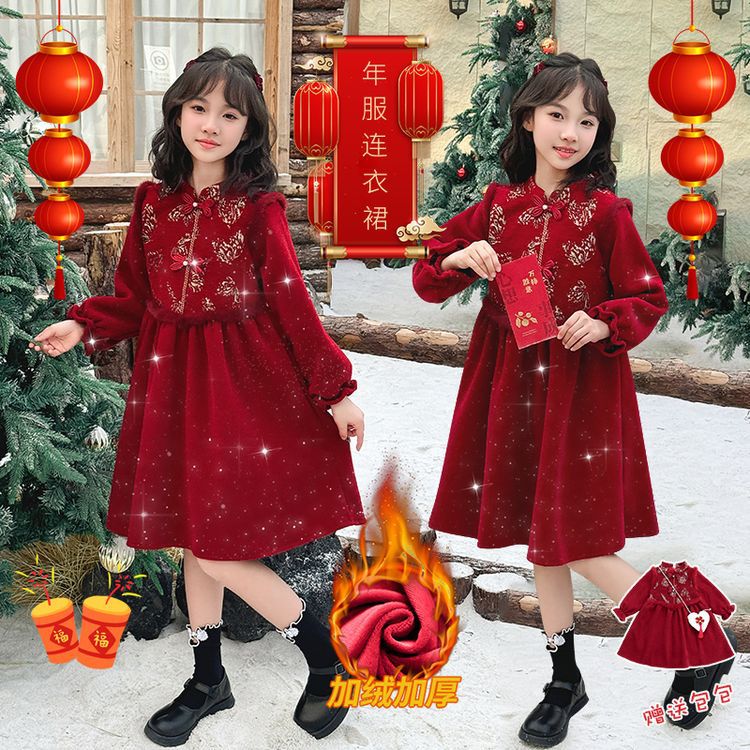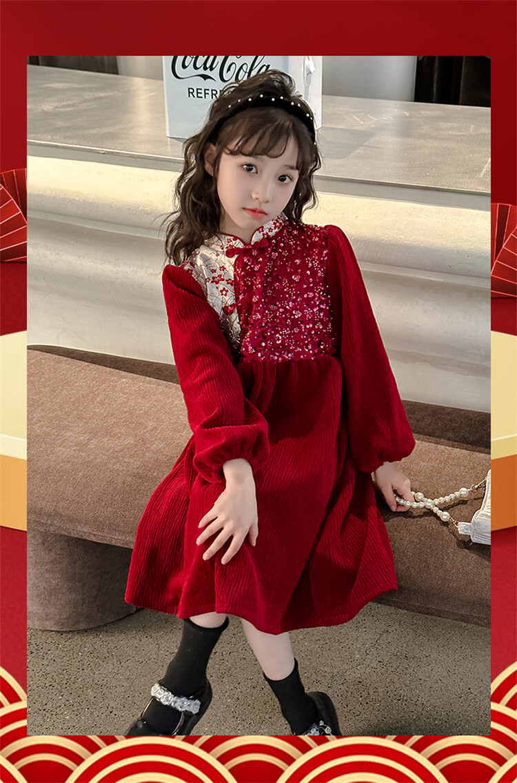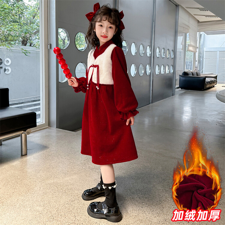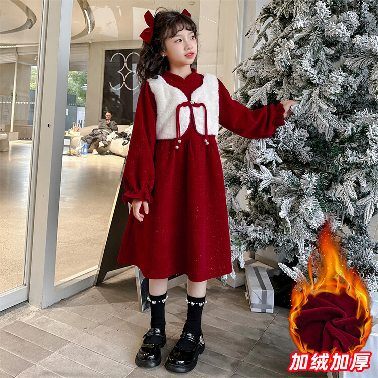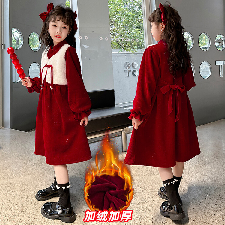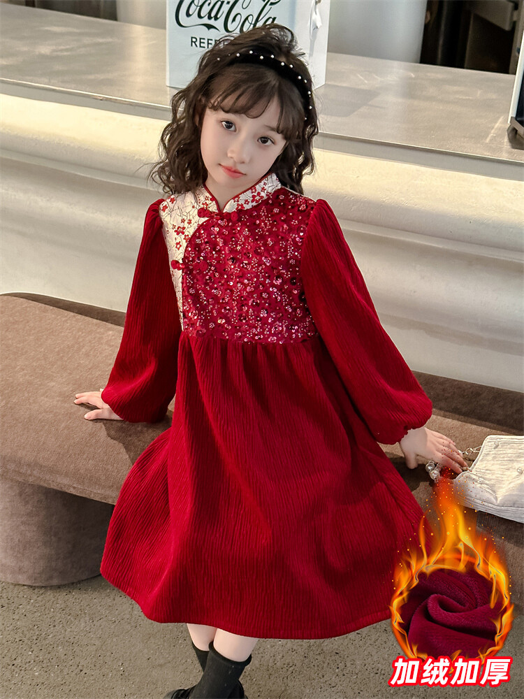 어린이 원피스 2024 년 겨울 새 여아 골동품 속편 기모 원피스 아기 캐주얼 원피스스토어 가기