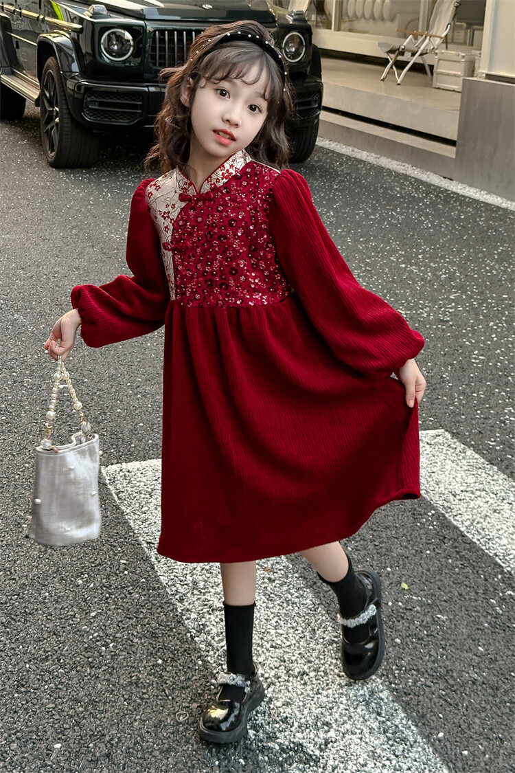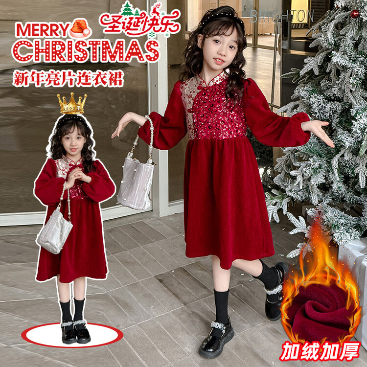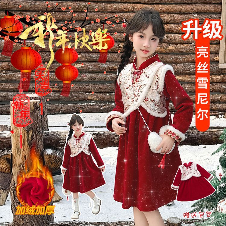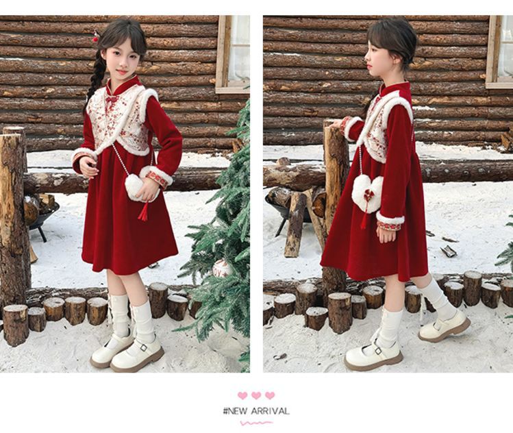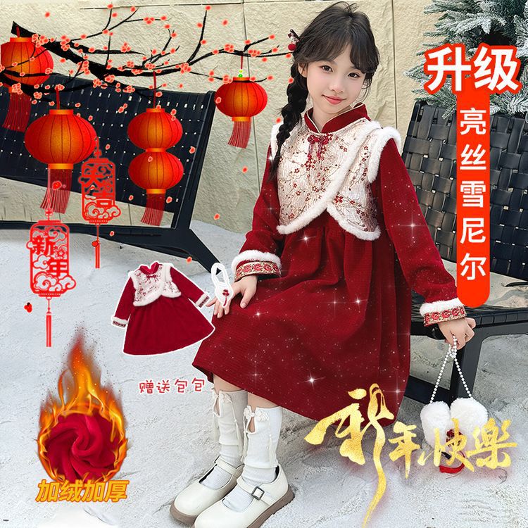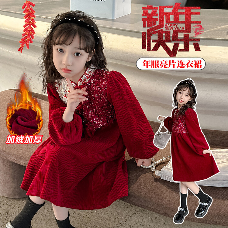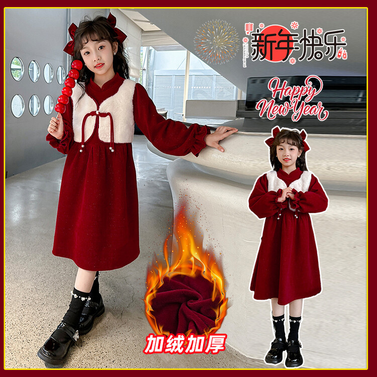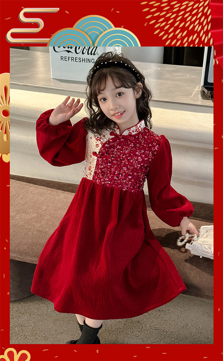 어린이 원피스 2024 년 겨울 새 여아 골동품 속편 기모 원피스 아기 캐주얼 원피스스토어 가기