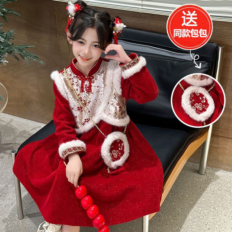 어린이 드레스 2025 겨울 신상 여아 고대풍 스팽글 플러스 벨벳 드레스 아기 캐주얼 연말 드레스