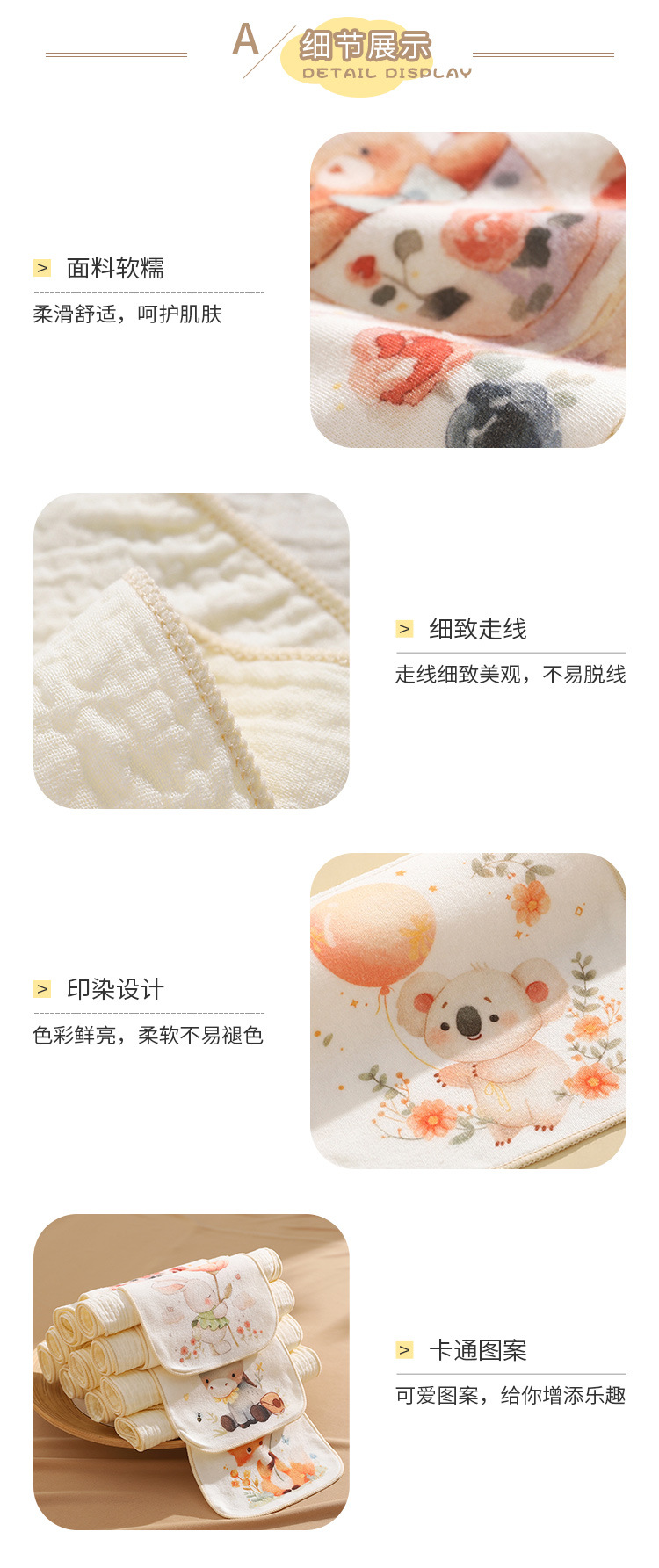 어린이 면화 땀 흡수성 타월 유치원 소년과 소녀 패드 타월 백 타월 반감성 코튼 거즈 베이비 땀 흡수성 수건