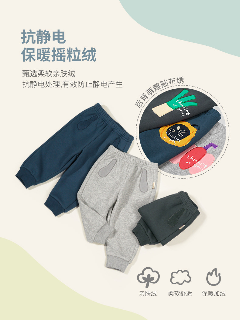 BBQB 어린이 바지 기모 정전기 방지 소년 소녀 양털 두꺼운 스포츠 바지 가을과 겨울 나가는 발목 바지스토어 가기